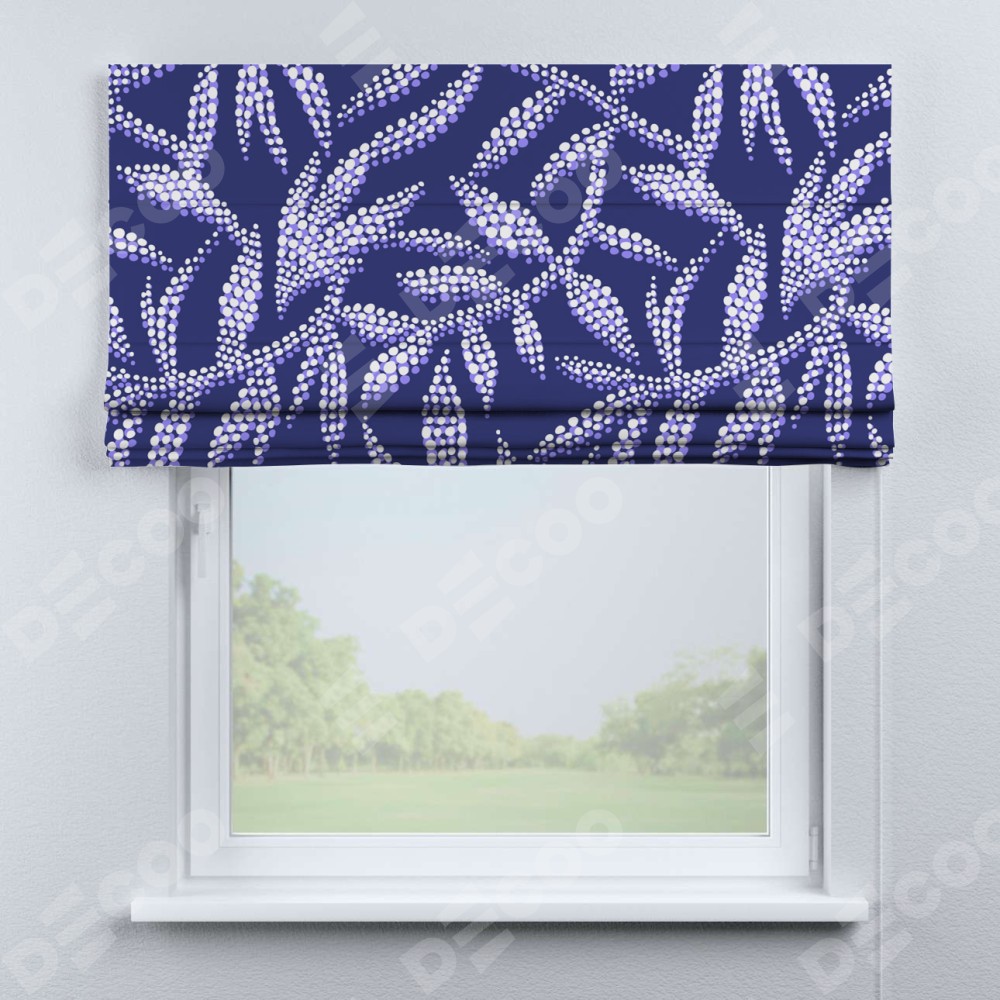 Римская штора производителя «Cortin», используется для проёма, пошита из ткани блэкаут с нанесением сублимационной печати «Ночные цветы». Имеет универсальный механизм и подходит для монтажа: на потолок, на стену и в нишу.
