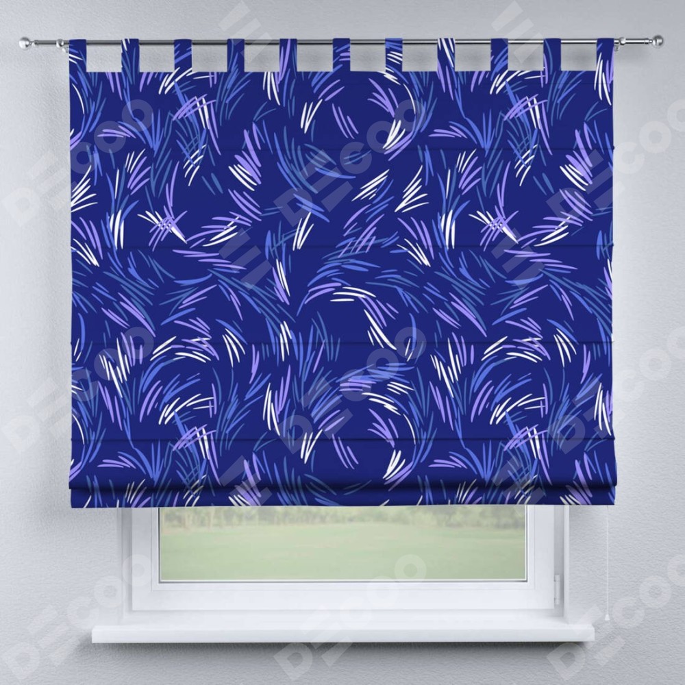 Римская штора производителя «Cortin», используется для проёма, пошита из ткани блэкаут с нанесением сублимационной печати «Синяя абстракция». Данная модель пошита на петлях, комплектуется на выбор круглым карнизом и подходит для монтажа на стену. Римская штора на петлях имеет простую систему регулировки высоты, отличительным преимуществом данной модели является простой способ монтажа. Достаточно повесить ее на трубу и штора готова!