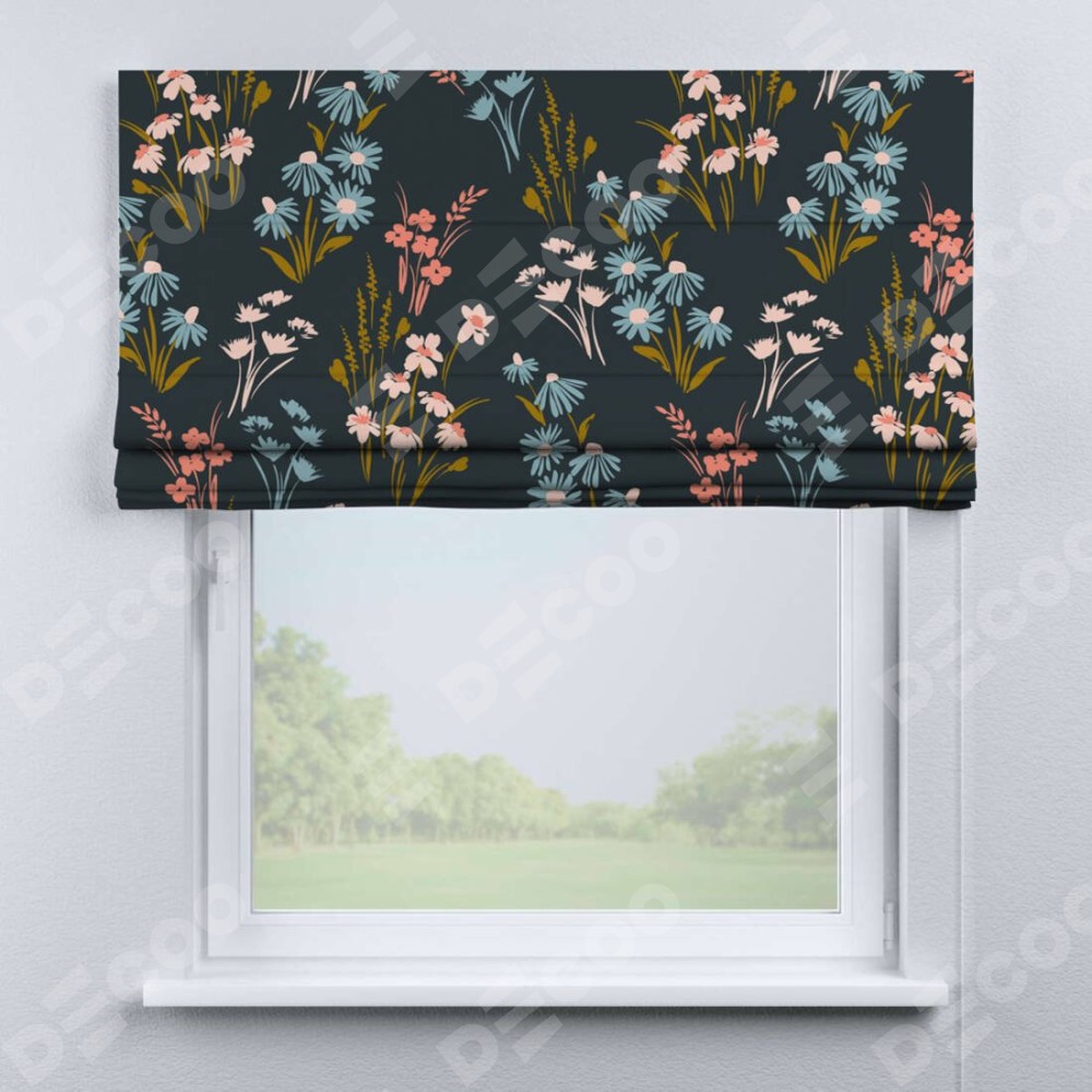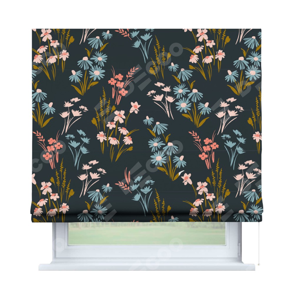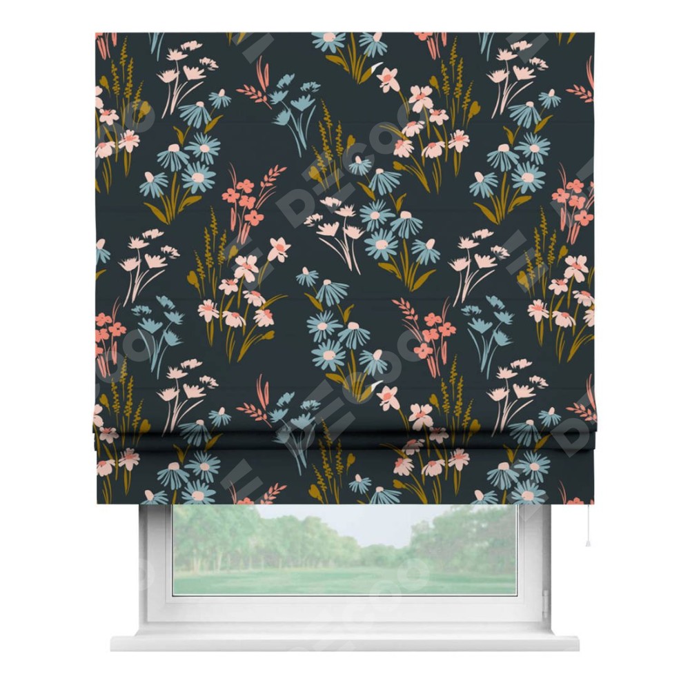 Римская штора производителя «Cortin», используется для проёма, пошита из ткани блэкаут с нанесением сублимационной печати «Чарующие цветы». Имеет универсальный механизм и подходит для монтажа: на потолок, на стену и в нишу.