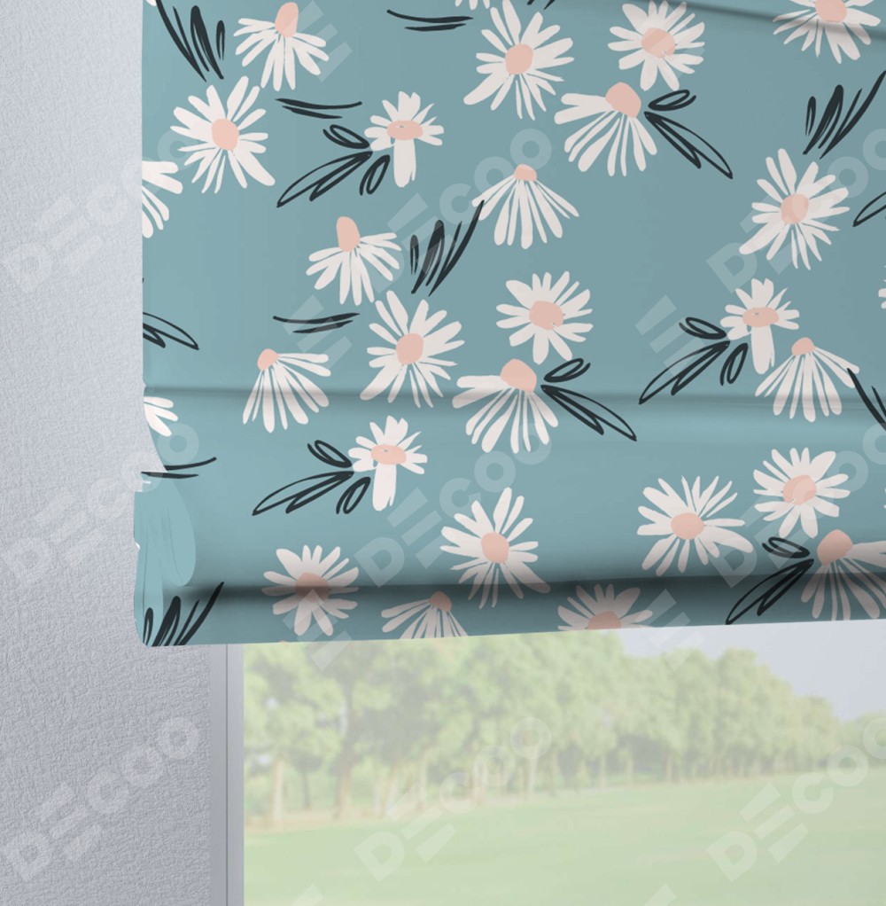 Римская штора производителя «Cortin», используется для проёма, пошита из ткани блэкаут с нанесением сублимационной печати «Чудесные ромашки». Данная модель пошита на петлях, комплектуется на выбор круглым карнизом и подходит для монтажа на стену. Римская штора на петлях имеет простую систему регулировки высоты, отличительным преимуществом данной модели является простой способ монтажа. Достаточно повесить ее на трубу и штора готова!