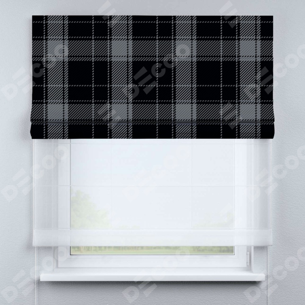 Римская штора день-ночь производителя «Cortin», используется для проёма, пошита из двух полотен, с лицевой блэкаут с нанесением сублимационной печати «Стильная клетка», вторая ткань тюль (по стандарту комплектуется тюль белого цвета артикул V-01). Имеет универсальный механизм и подходит для монтажа: на потолок, на стену и в нишу.