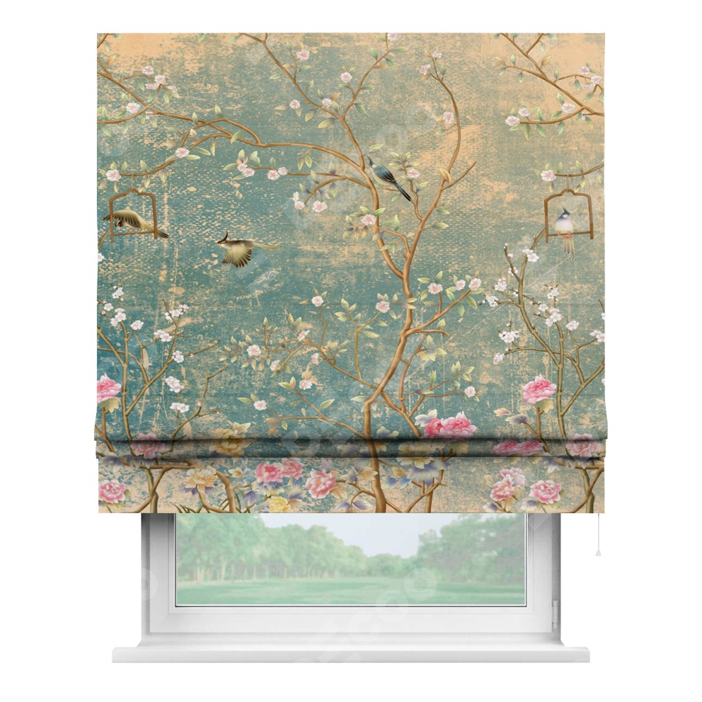 Римская штора производителя «Cortin», используется для проёма, пошита из ткани блэкаут с нанесением сублимационной печати «Цветущий сад». Имеет универсальный механизм и подходит для монтажа: на потолок, на стену и в нишу.