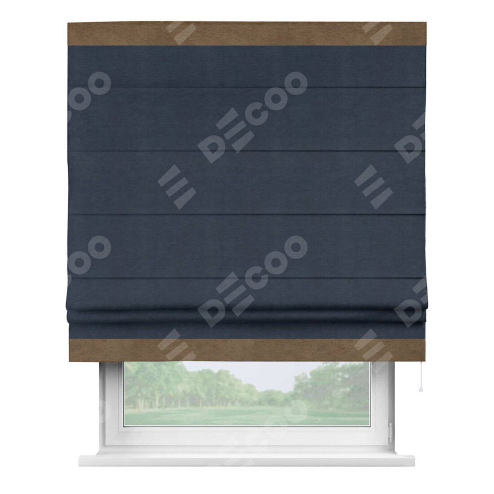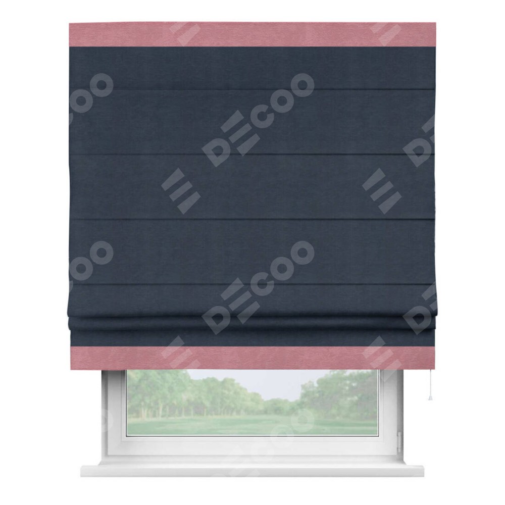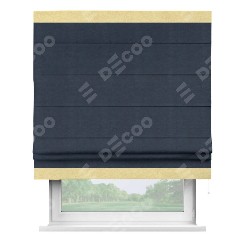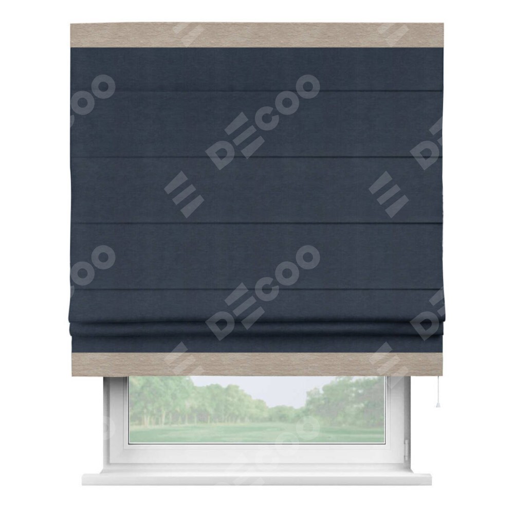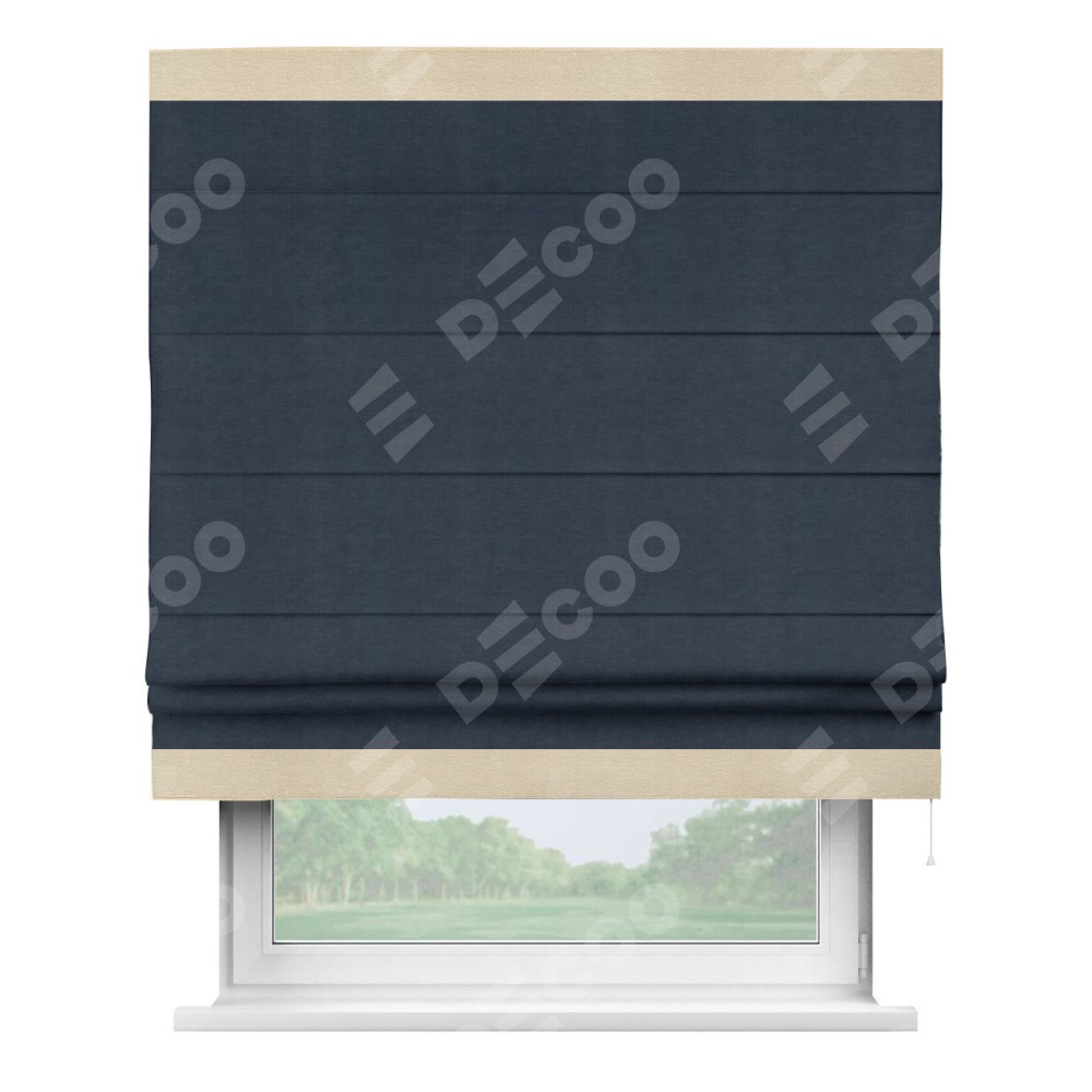 Римская штора «Кортин» с кантом Горизонт, для проема, ткань софт однотонный тёмно-синий
