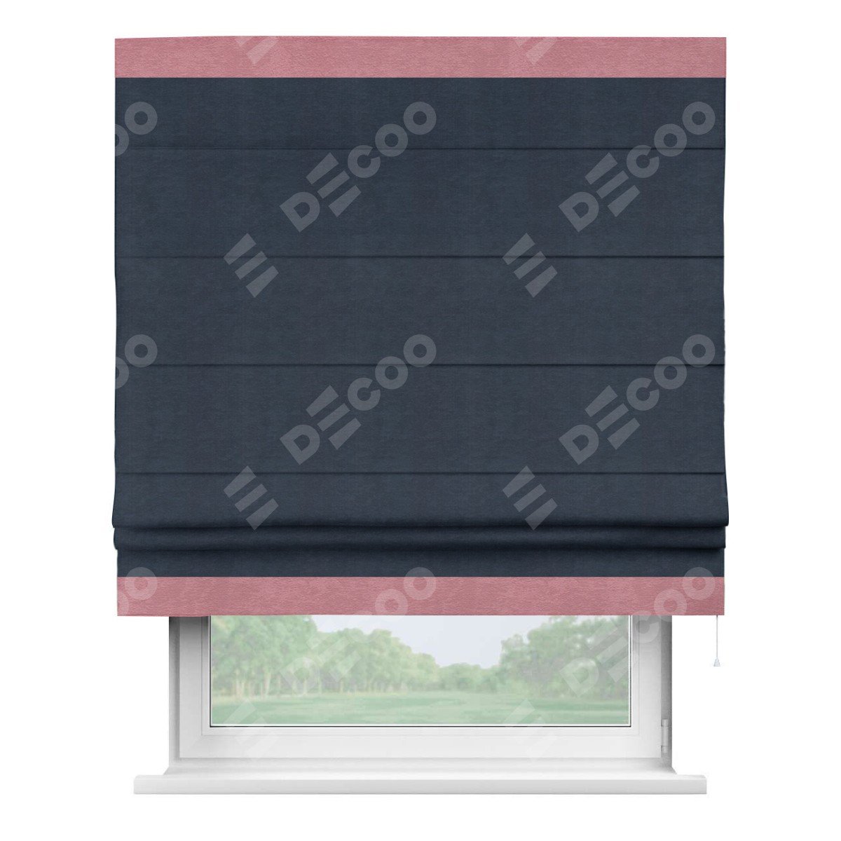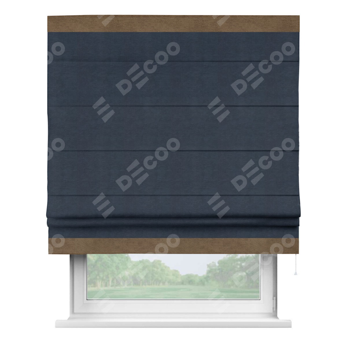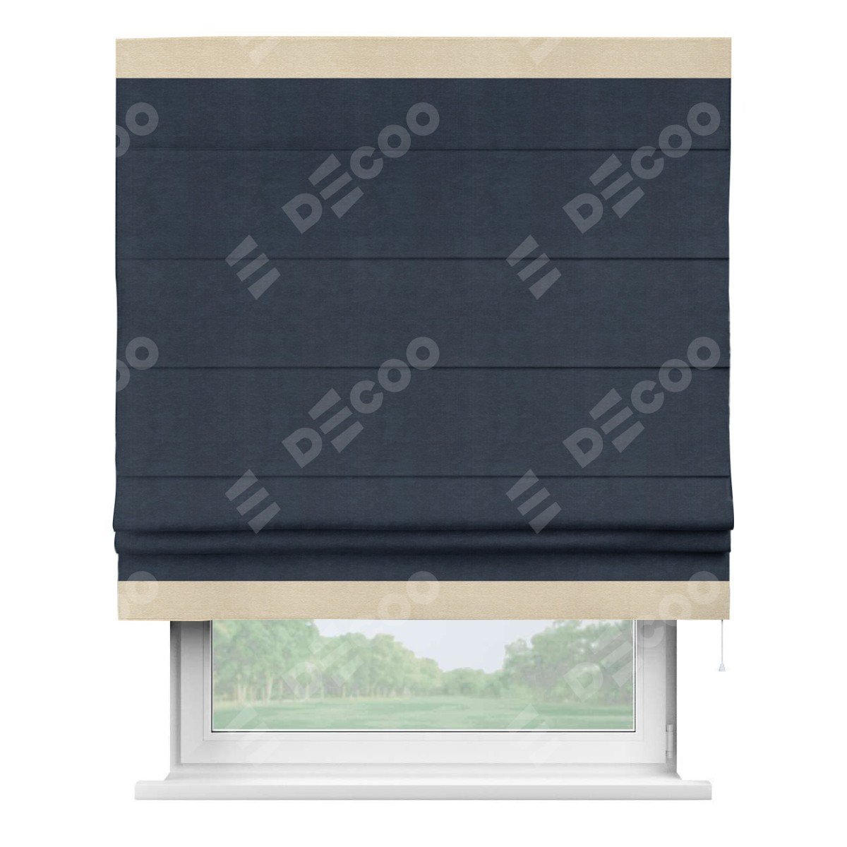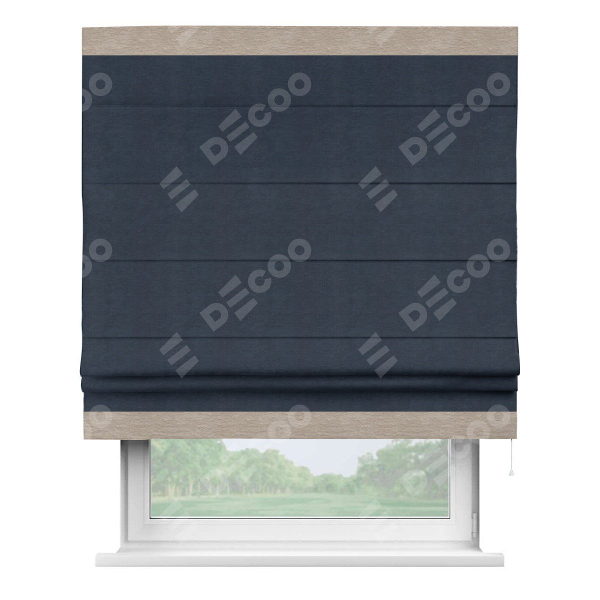 Римская штора «Кортин» с кантом Горизонт, для проема, ткань софт однотонный тёмно-синий