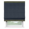 Римская штора производителя «Cortin», используется для проёма, пошита из ткани софт однотонный тёмно-синий, артикул 33111. Отделка шторы кантом «Горизонт», ткань для канта используется из софта разной расцветки на выбор. Имеет универсальный механизм и подходит для монтажа: на потолок, на стену и в нишу.