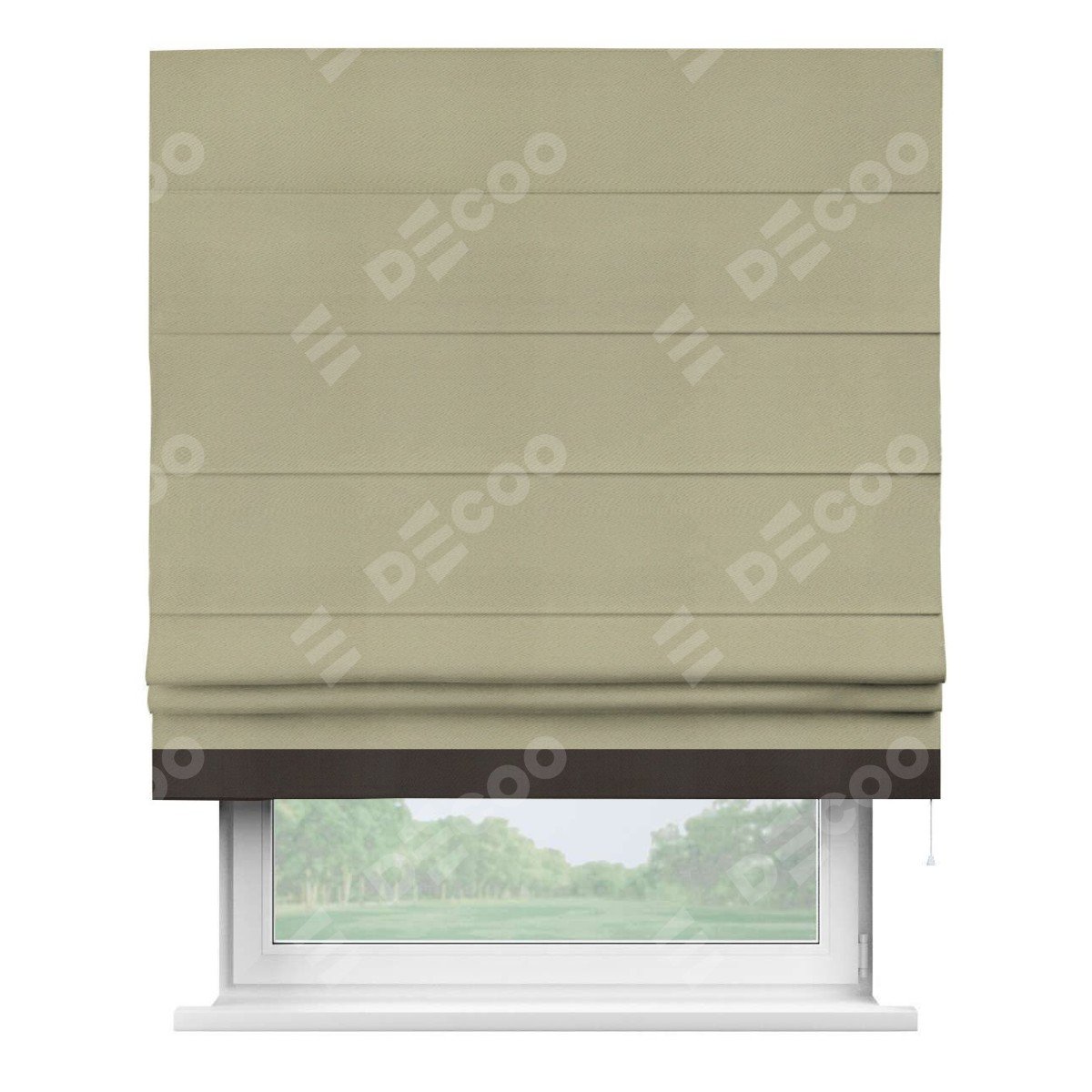 Римская штора производителя «Cortin», используется для проёма, пошита из ткани блэкаут однотонный милано капучино, артикул ткани 06. Отделка шторы кантом «Джестер», ткань для канта используется из блэкаута однотонного разной расцветки на выбор. Имеет универсальный механизм и подходит для монтажа: на потолок, на стену и в нишу.