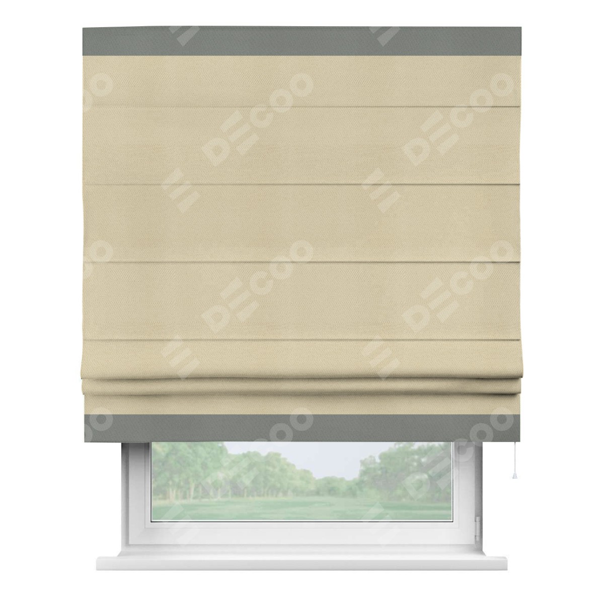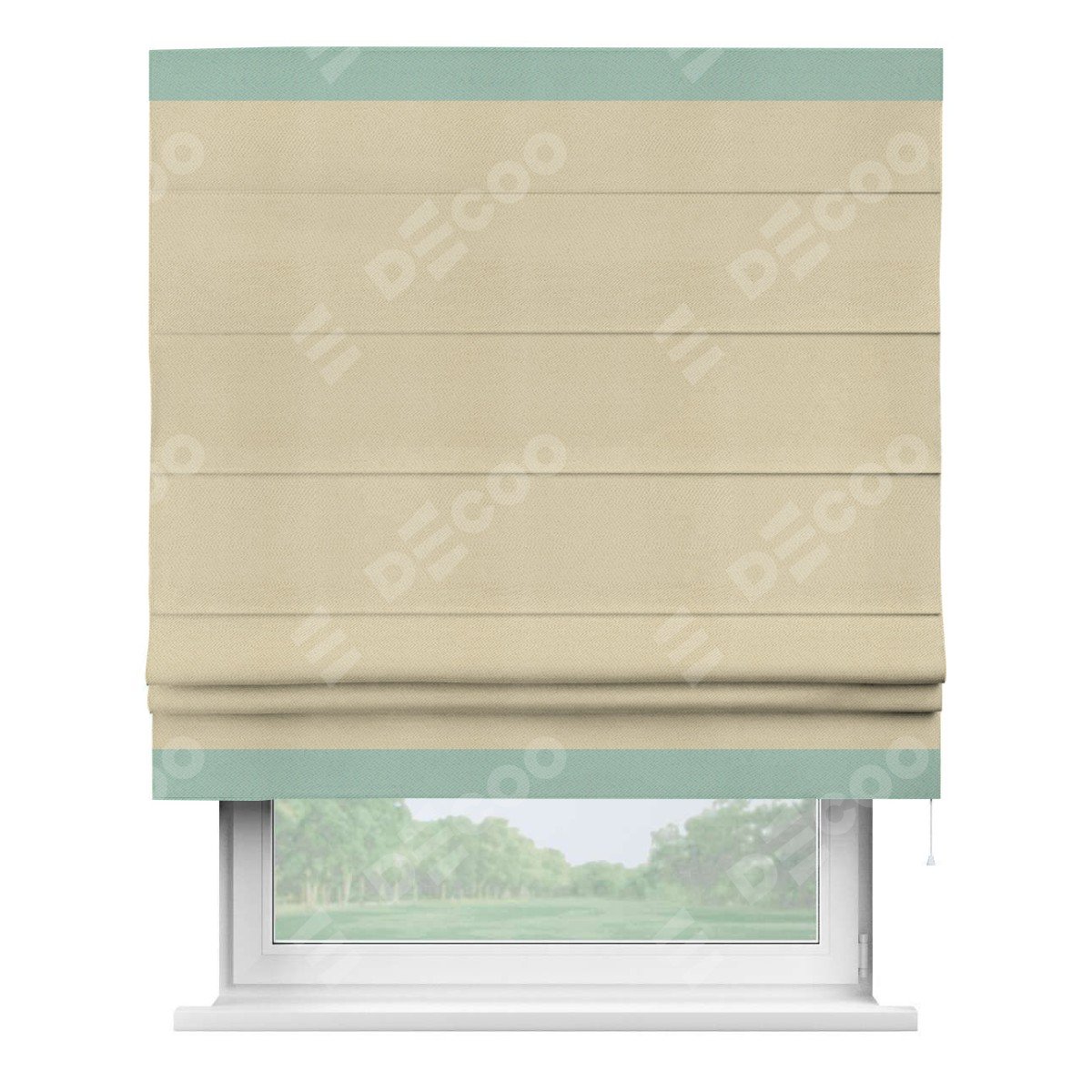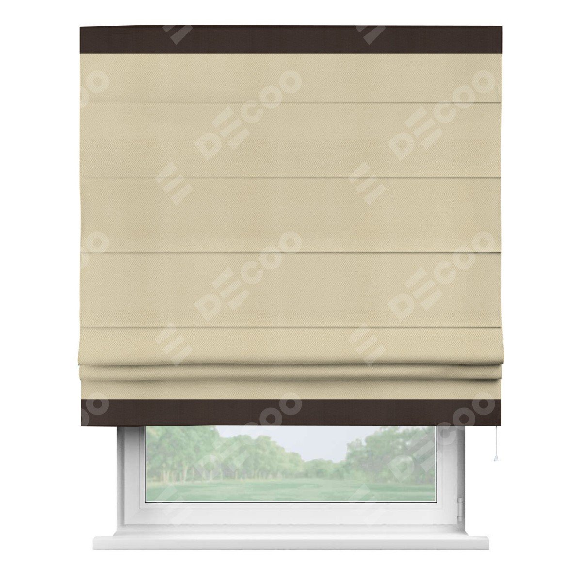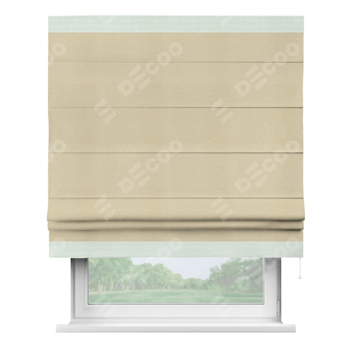 Римская штора производителя «Cortin», используется для проёма, пошита из ткани блэкаут однотонный милано латте, артикул ткани 05. Отделка шторы кантом «Горизонт», ткань для канта используется из блэкаута однотонного разной расцветки на выбор. Имеет универсальный механизм и подходит для монтажа: на потолок, на стену и в нишу.