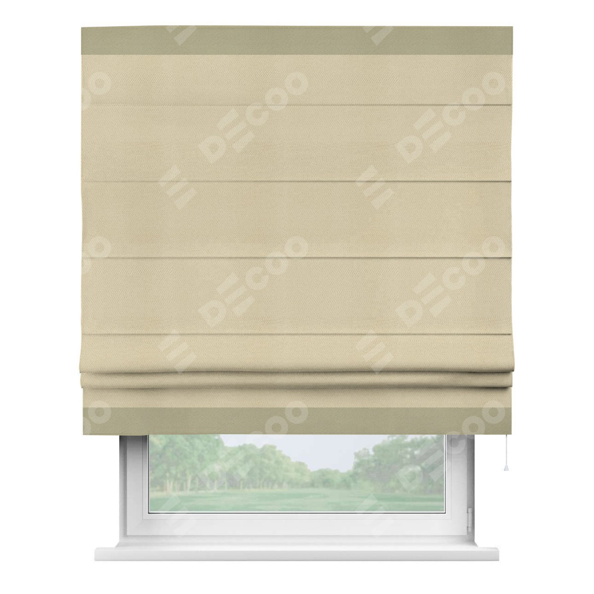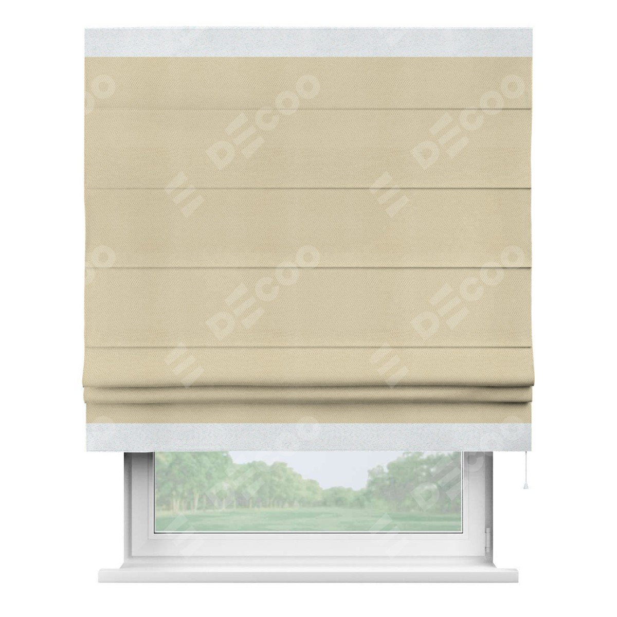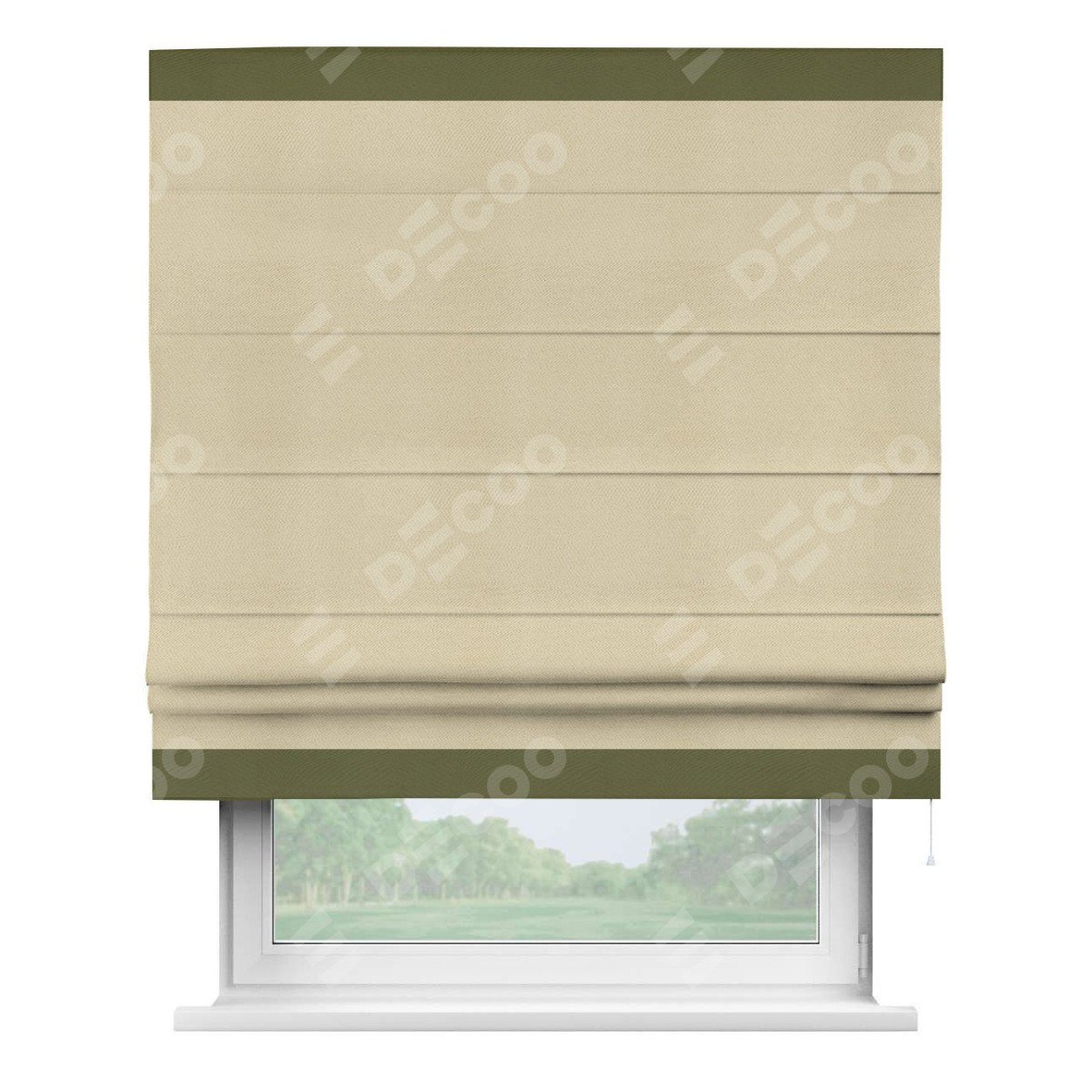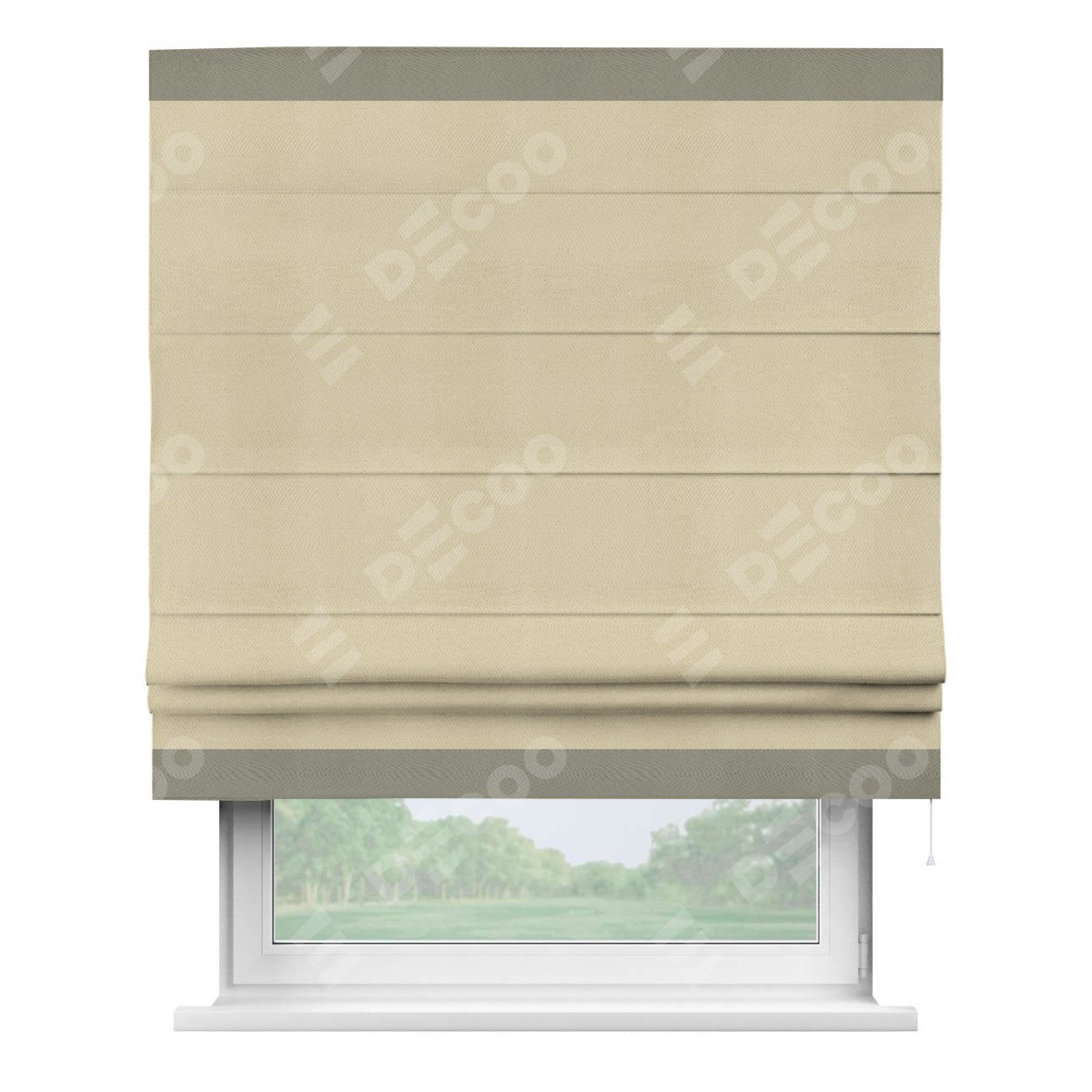 Римская штора производителя «Cortin», используется для проёма, пошита из ткани блэкаут однотонный милано латте, артикул ткани 05. Отделка шторы кантом «Горизонт», ткань для канта используется из блэкаута однотонного разной расцветки на выбор. Имеет универсальный механизм и подходит для монтажа: на потолок, на стену и в нишу.