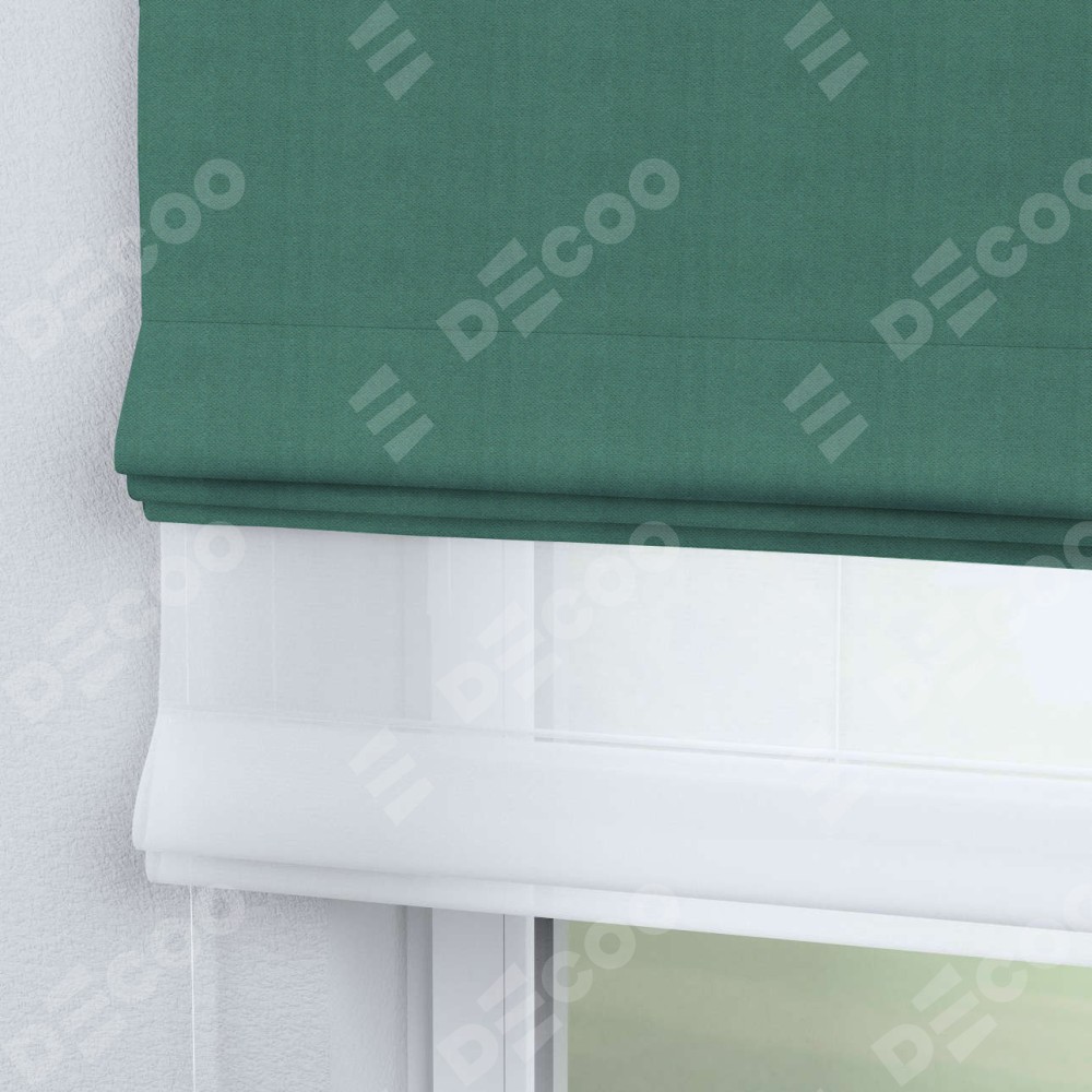 Римская штора день-ночь производителя «Cortin», используется для проёма, пошита из двух полотен, с лицевой стороны блэкаут тиснение с блеском изумрудный артикул 34628, вторая ткань тюль (по стандарту комплектуется тюль белого цвета артикул V-01). Изнаночная сторона основного материала черного цвета, что обеспечивает необходимую светонепроницаемость. Имеет универсальный механизм и подходит для монтажа: на потолок, на стену и в нишу.