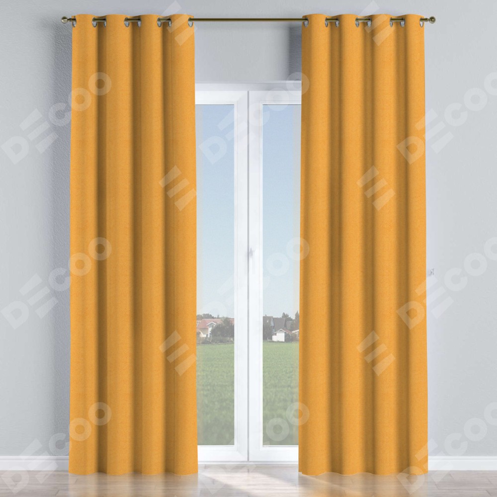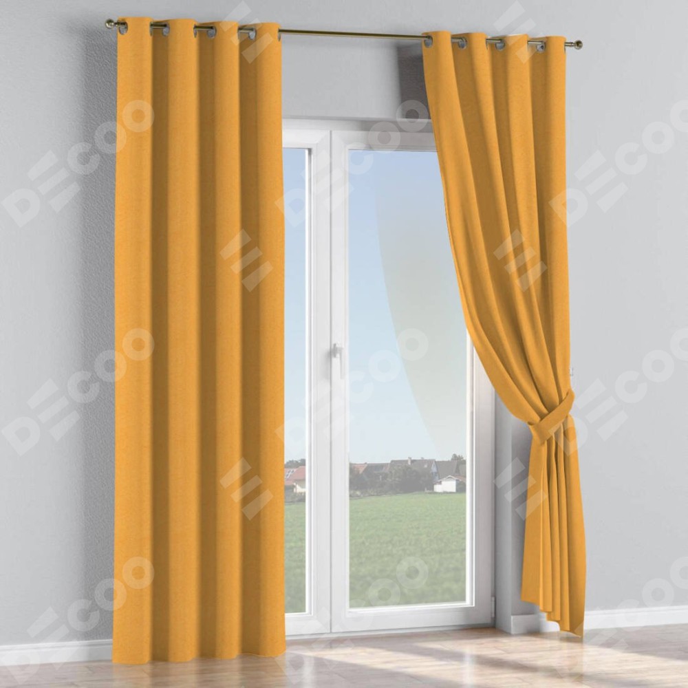 Комплект прямых штор, от производителя «Cortin», пошиты из ткани блэкаут с блеском золотой, артикул ткани 34626. Обратная сторона основного материала черного цвета, что обеспечивает необходимую светонепроницаемость. Данная модель пошита на люверсах, комплектуется на выбор круглым карнизом и подходит для монтажа на стену или потолок. Прямые шторы на люверсах шьются по стандарту с коэффициентом 1/2 (на 100 см. ширины проёма 200 см. ширины ткани), отличительным преимуществом данной модели является простой способ монтажа. Достаточно повесить ее на трубу и штора готова!