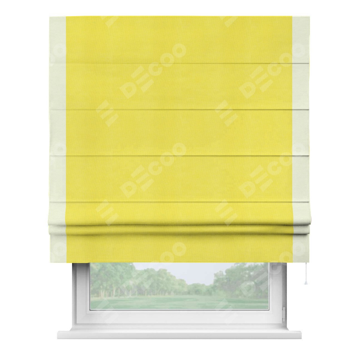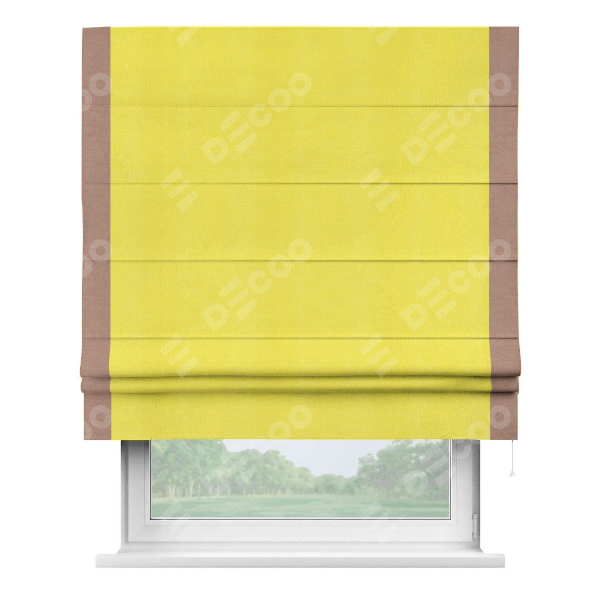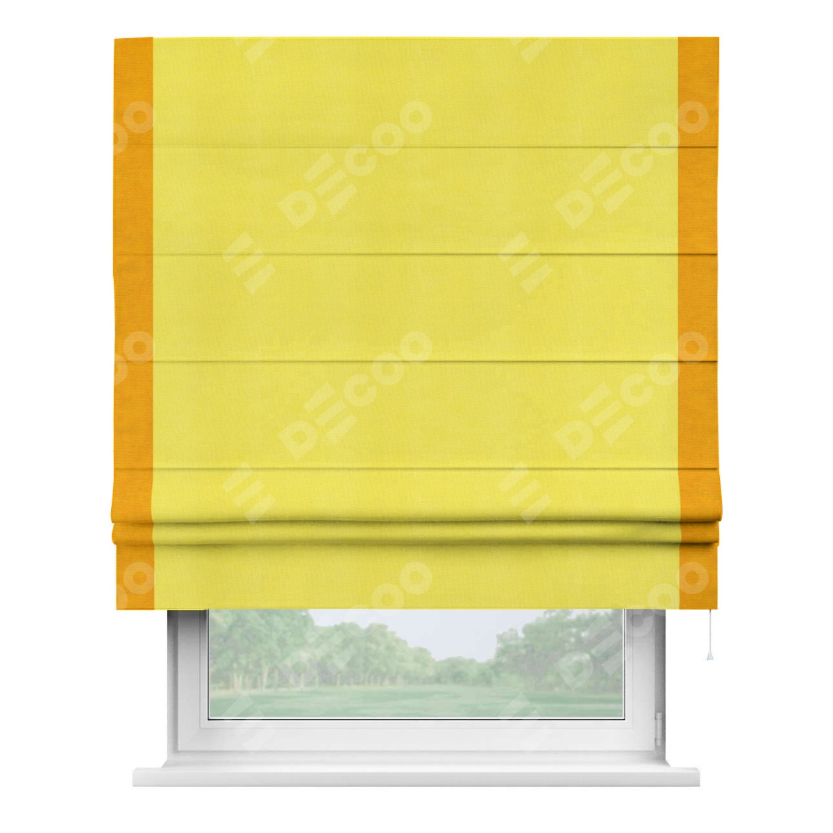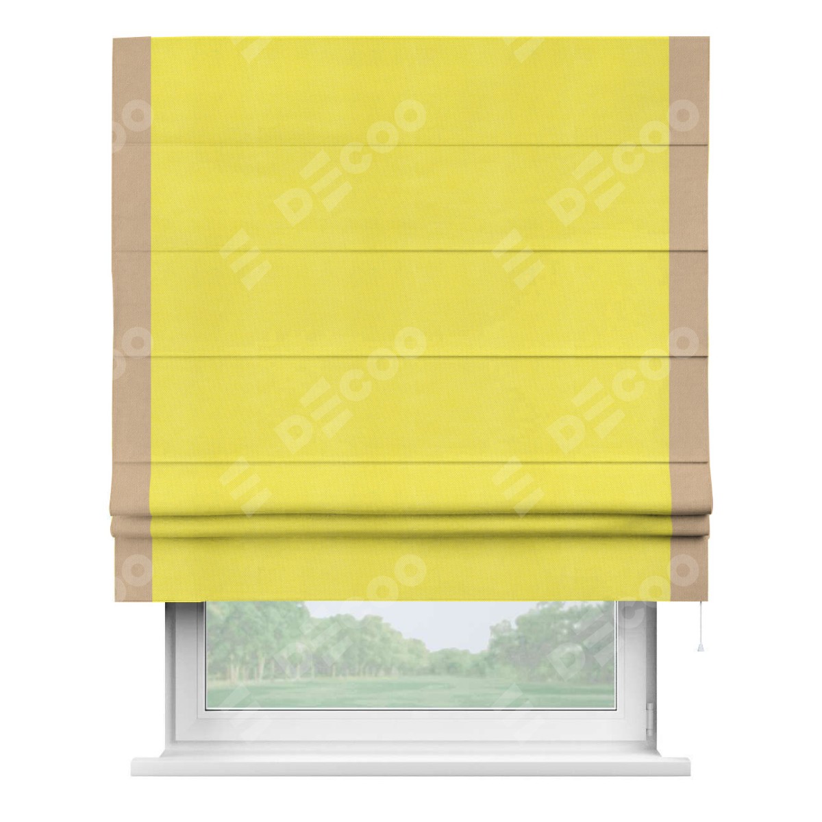 Римская штора «Кортин» с кантом Стрим Дуо, для проема, ткань вельвет cветло-желтый