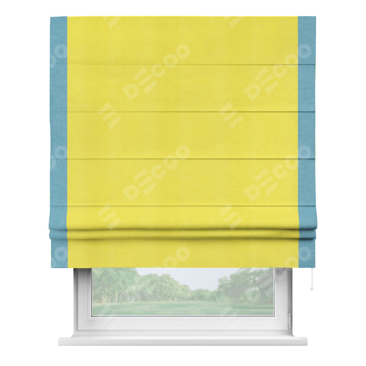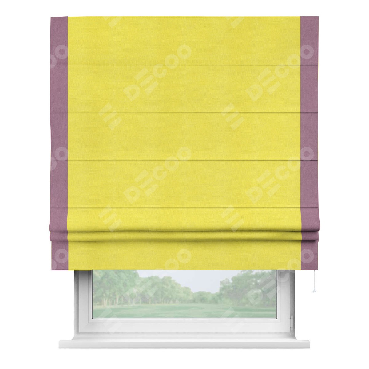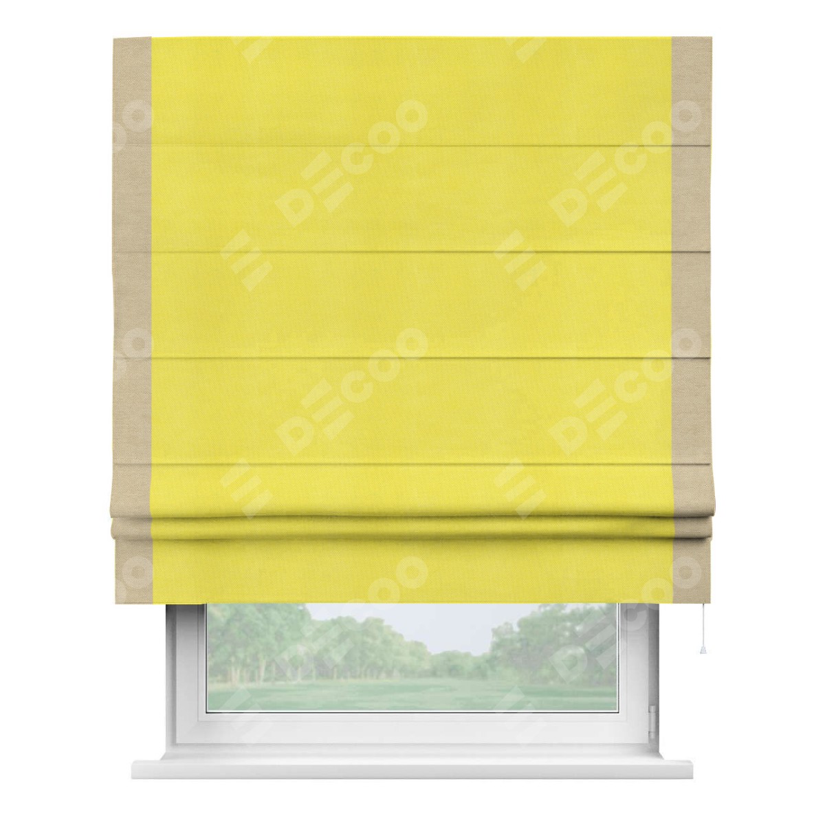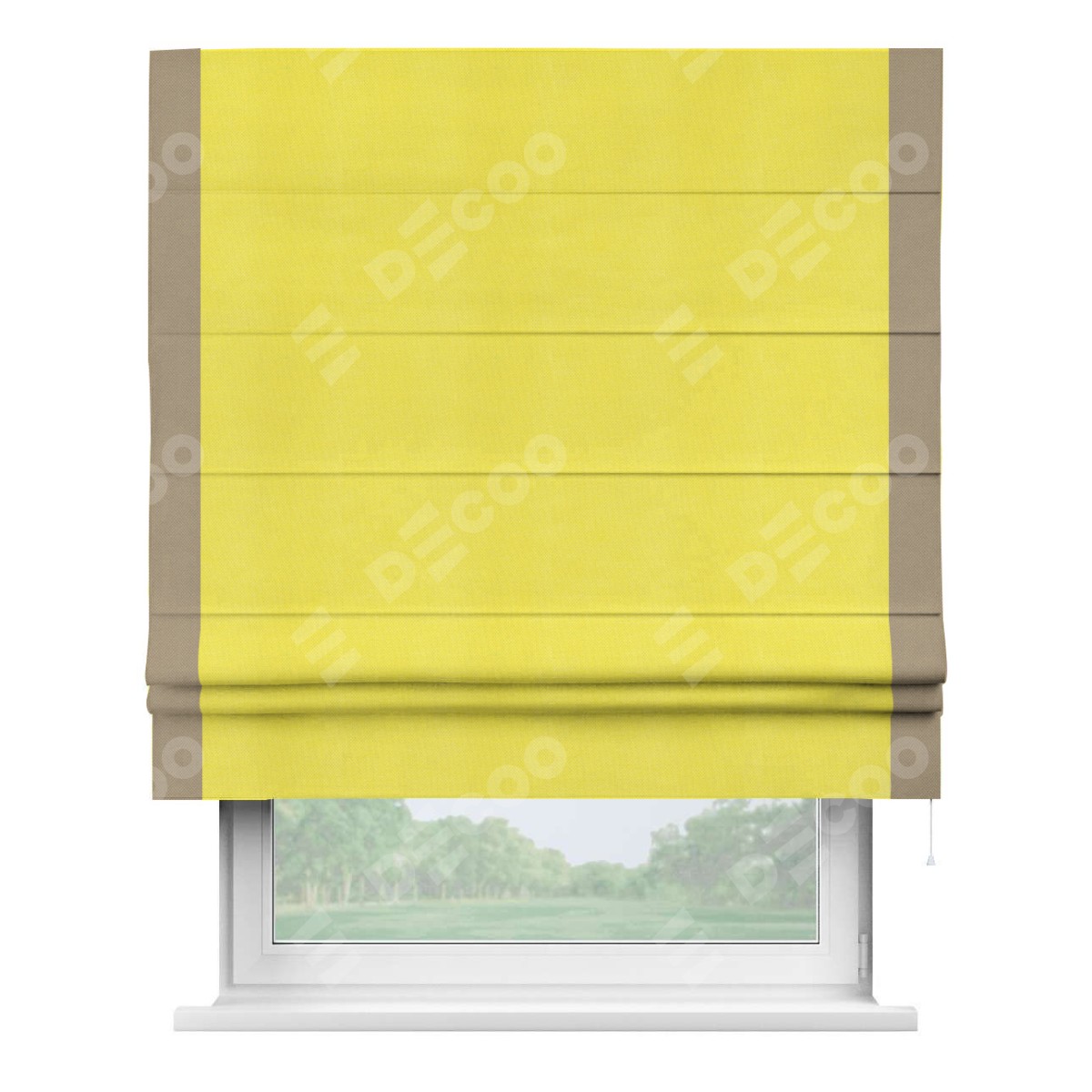 Римская штора «Кортин» с кантом Стрим Дуо, для проема, ткань вельвет cветло-желтый