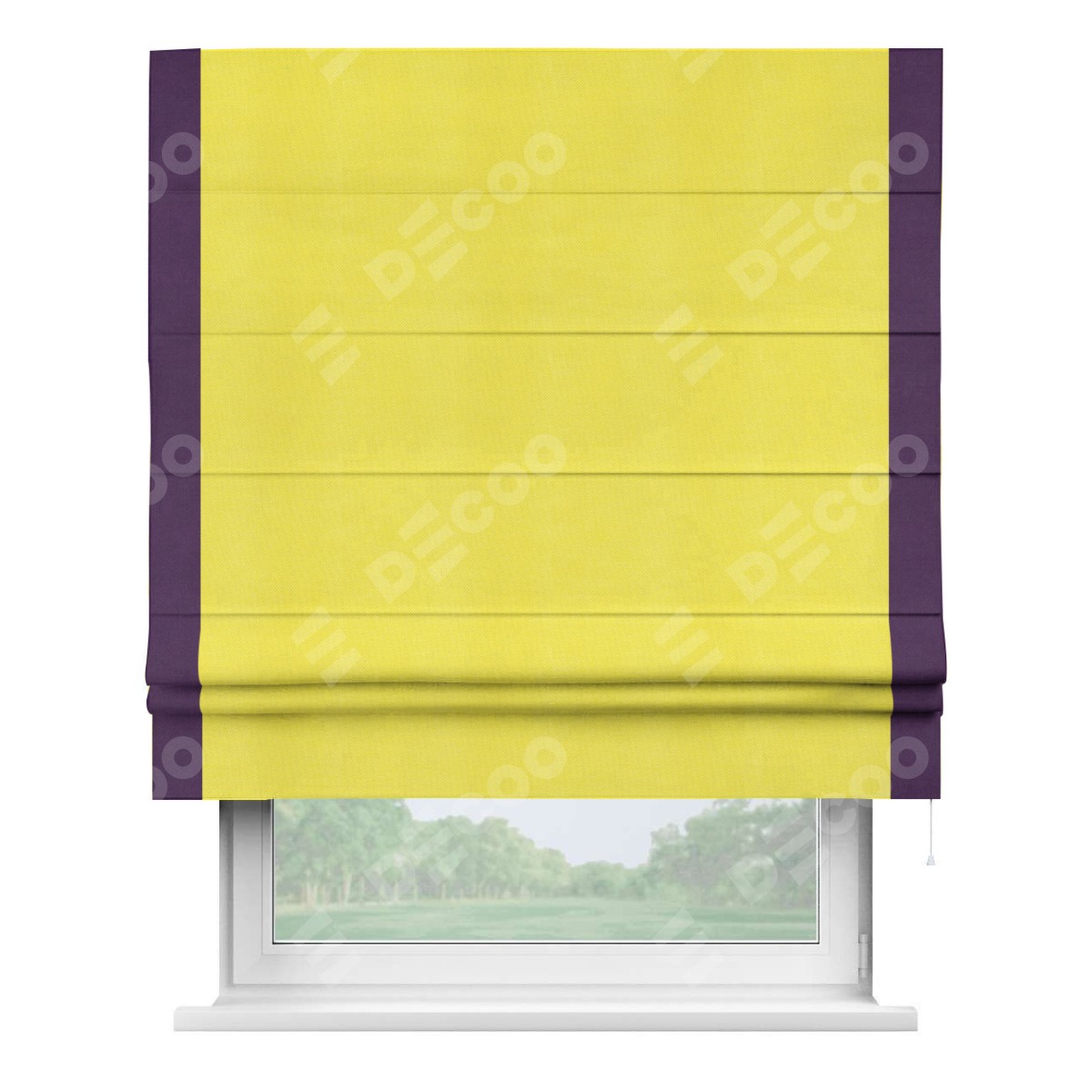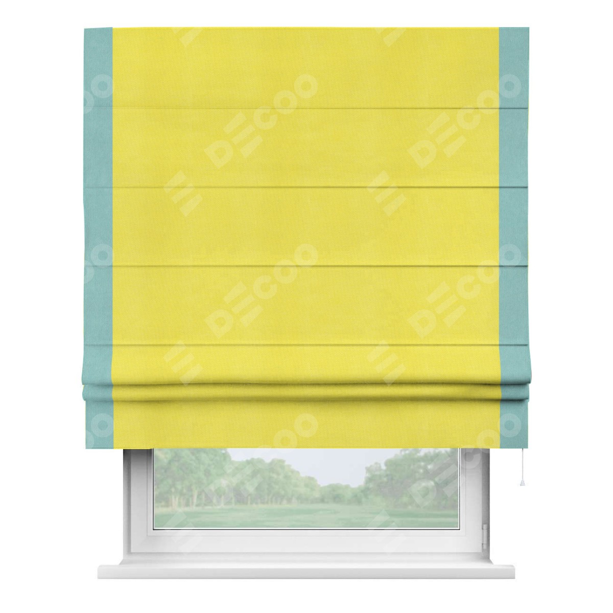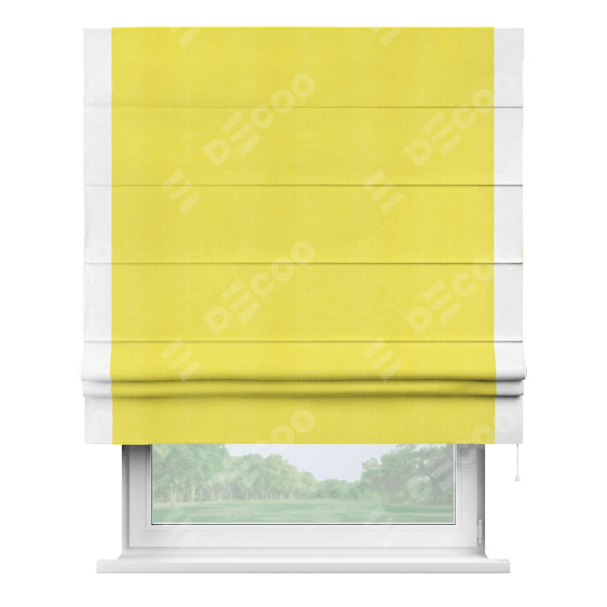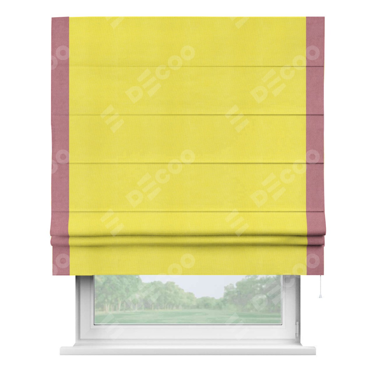 Римская штора «Кортин» с кантом Стрим Дуо, для проема, ткань вельвет cветло-желтый