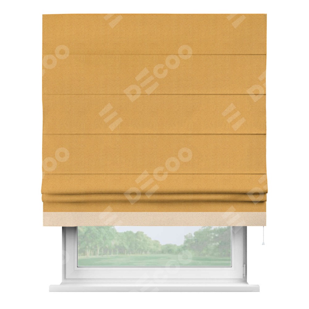 Римская штора «Кортин» с кантом Джестер, для проема, ткань блэкаут с блеском золотой