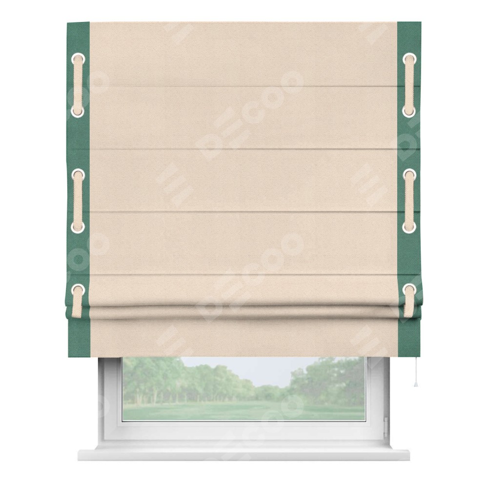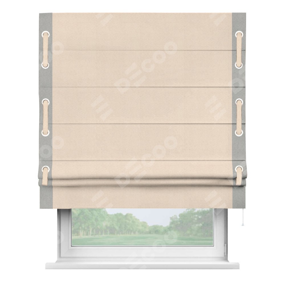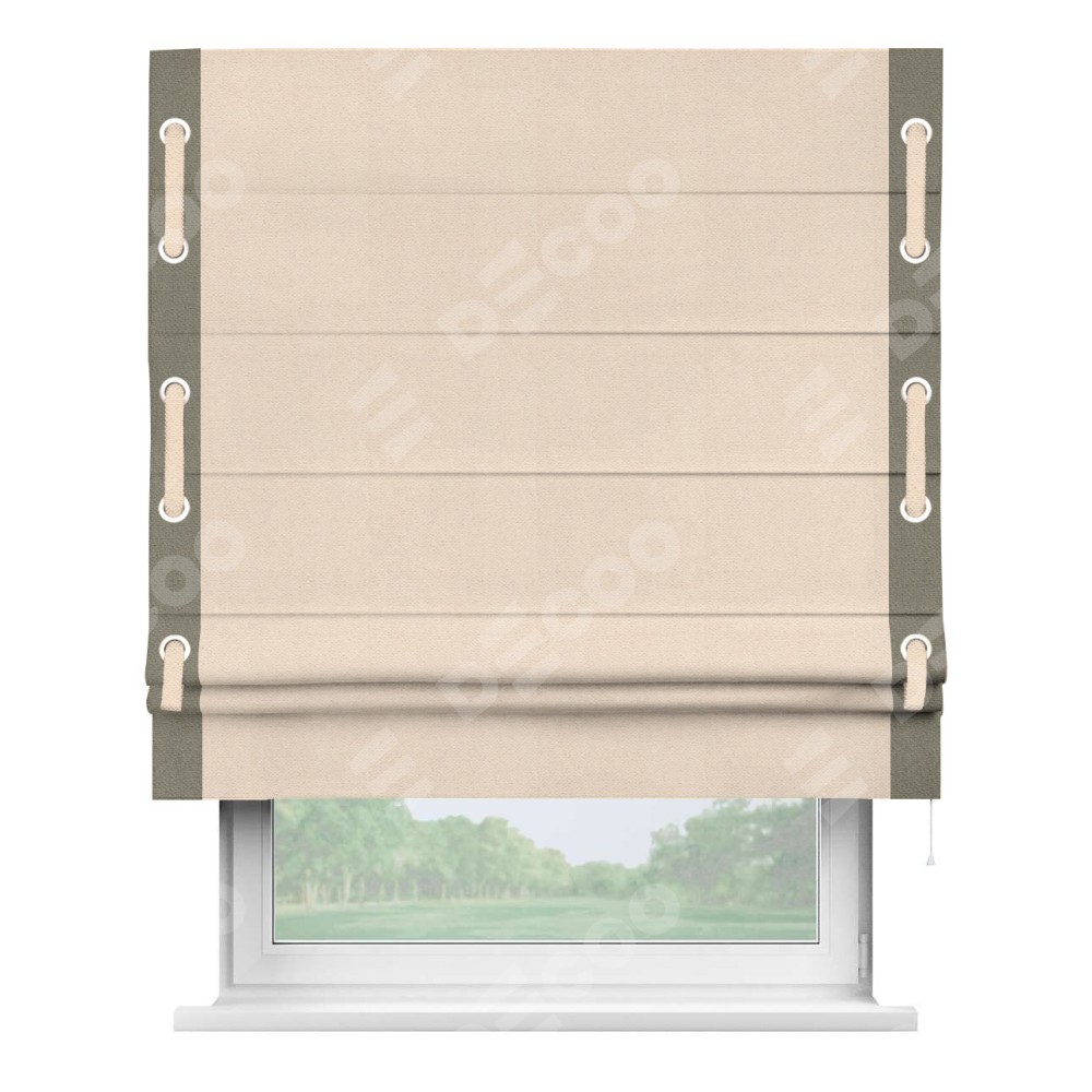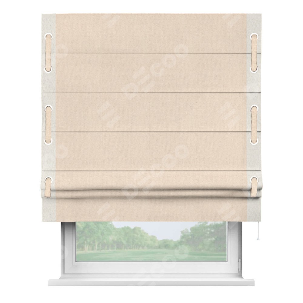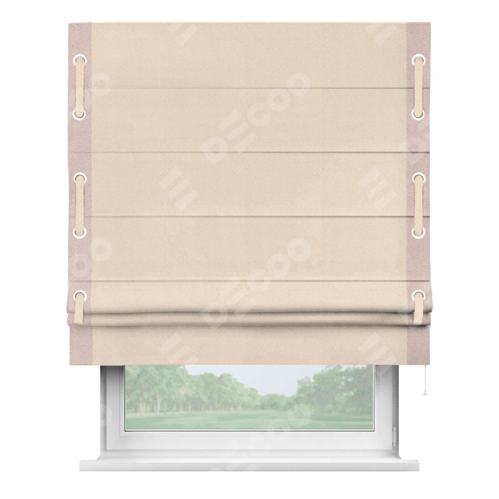 Римская штора «Кортин» с кантом Стрим Дуо (люверсы с пояском), для проема, ткань блэкаут с блеском розовая пудра