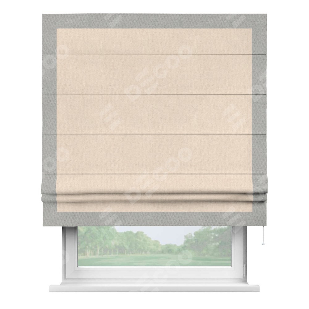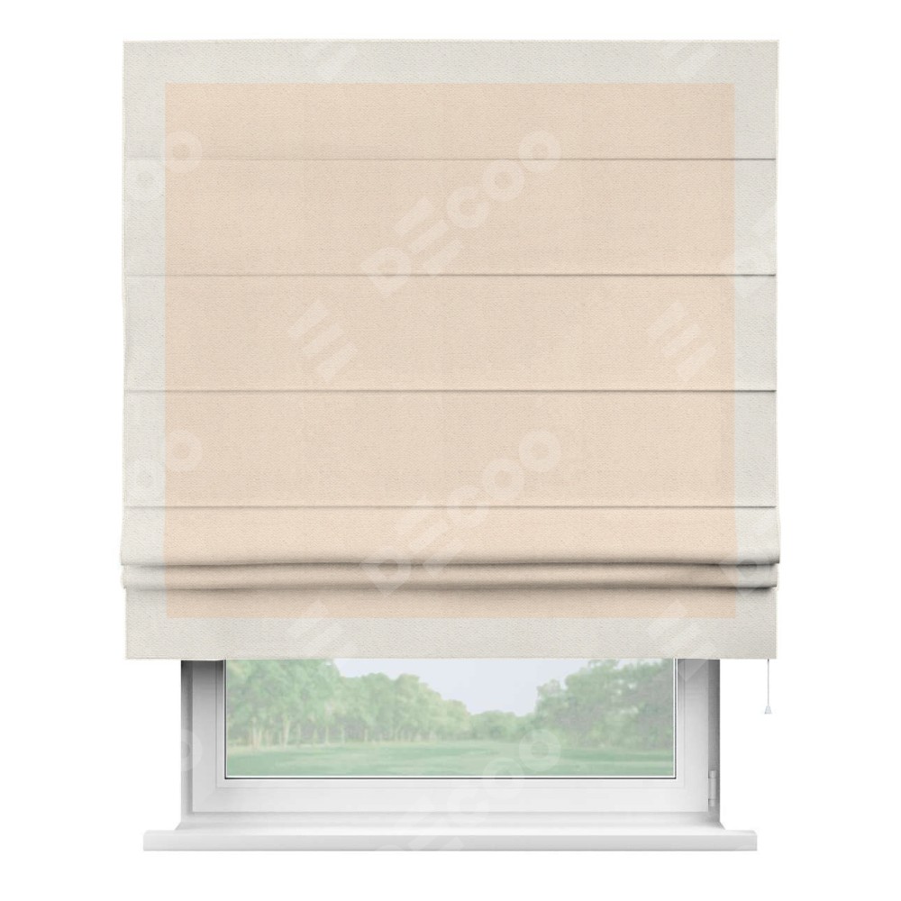Римская штора производителя «Cortin», используется для проёма, пошита из ткани блэкаут с блеском розовая пудра, артикул 34632. Отделка шторы кантом «Чесс», ткань для канта используется из блэкаута с блеском разной расцветки на выбор. Изнаночная сторона материала черного цвета, что обеспечивает необходимую светонепроницаемость. Имеет универсальный механизм и подходит для монтажа: на потолок, на стену и в нишу.