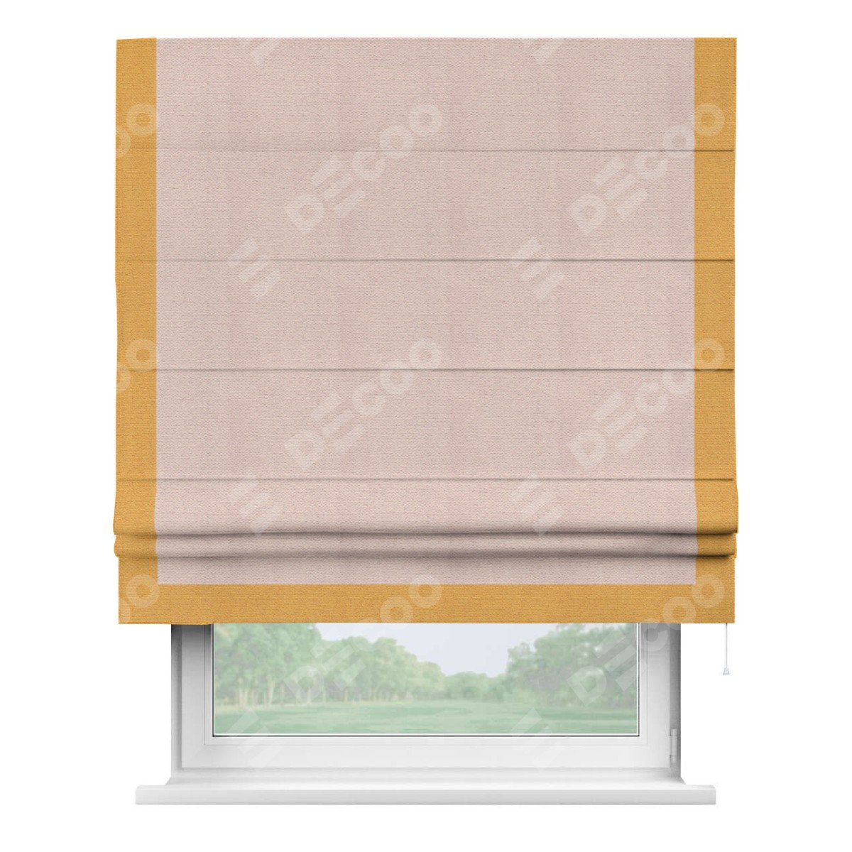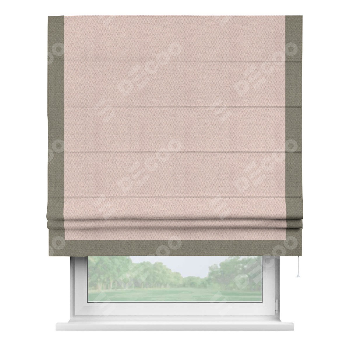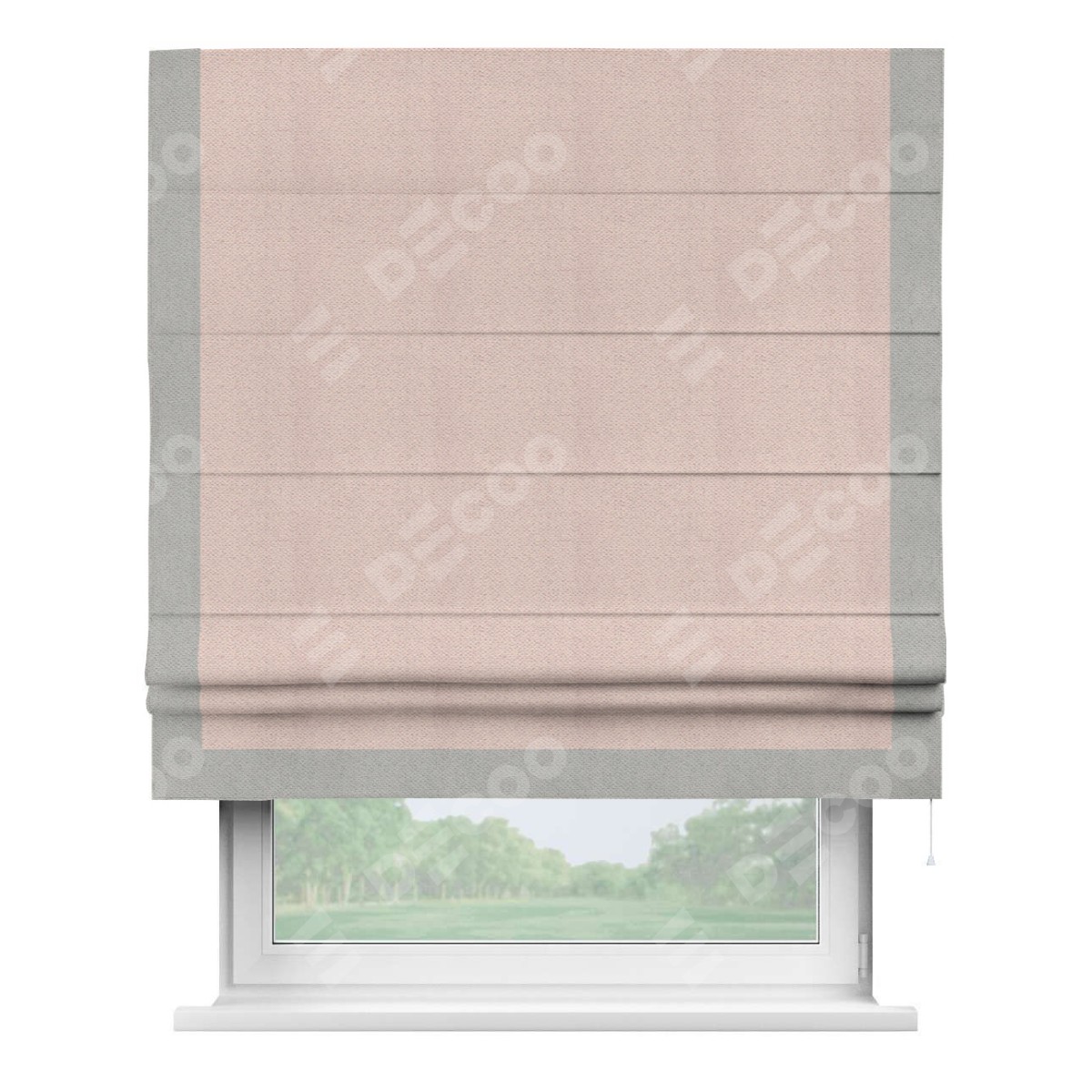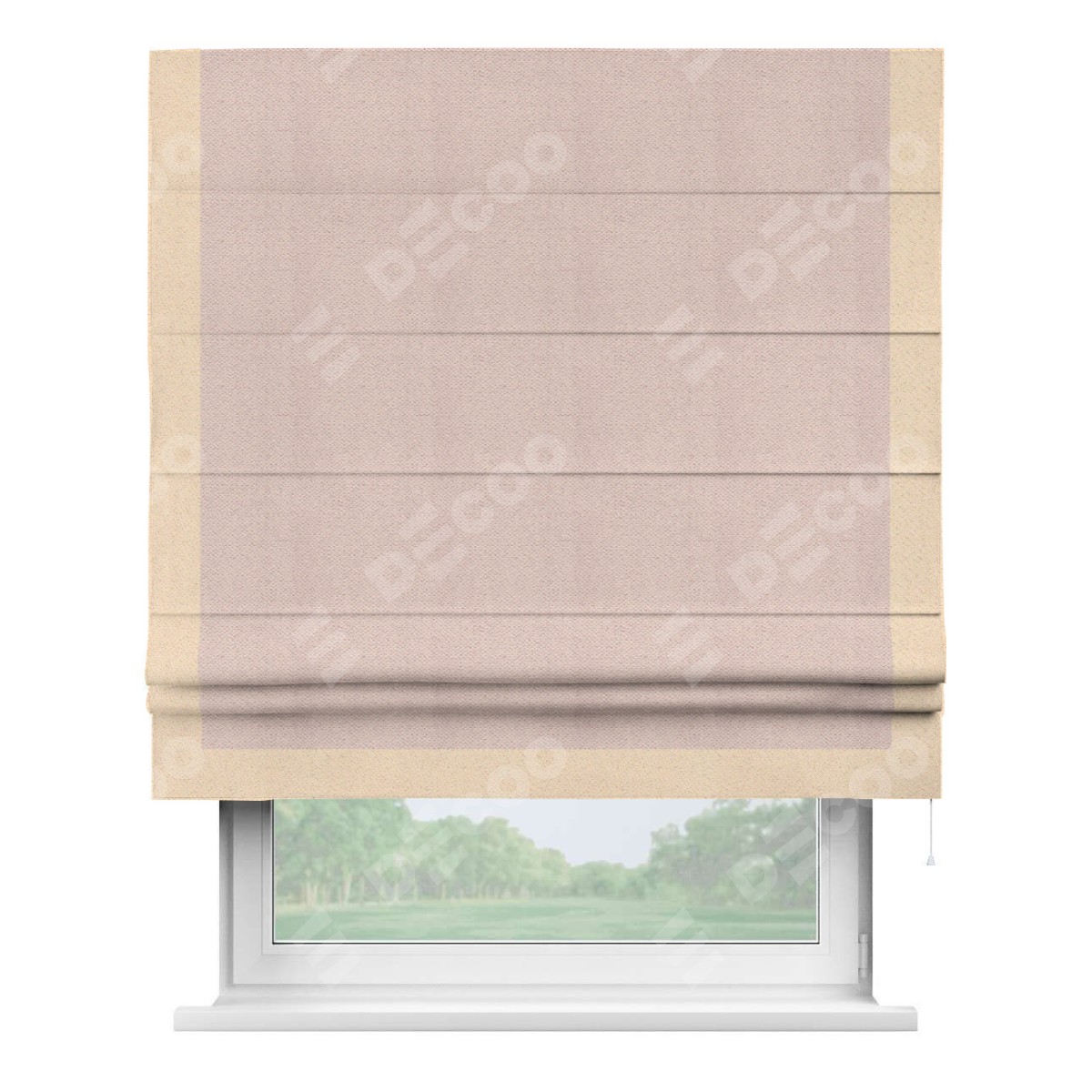 Римская штора производителя «Cortin», используется для проёма, пошита из ткани блэкаут с блеском сиреневый, артикул 34649. Отделка шторы кантом «Виктория», ткань для канта используется из блэкаута с блеском разной расцветки на выбор. Изнаночная сторона материала черного цвета, что обеспечивает необходимую светонепроницаемость. Имеет универсальный механизм и подходит для монтажа: на потолок, на стену и в нишу.