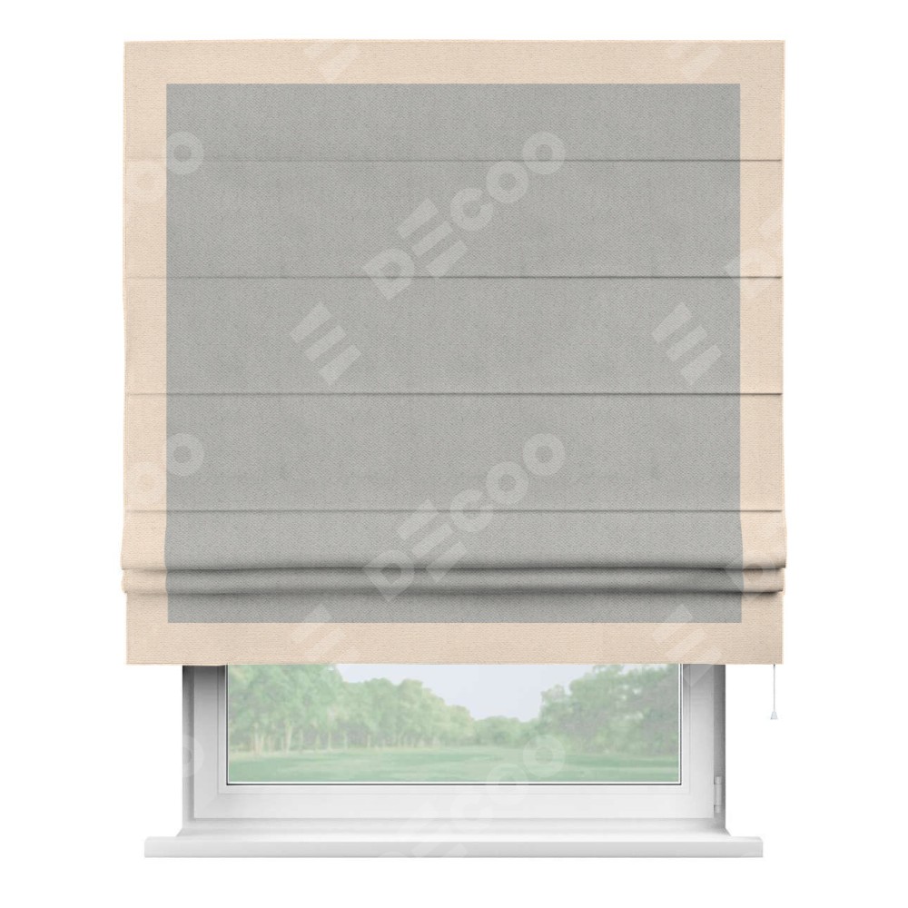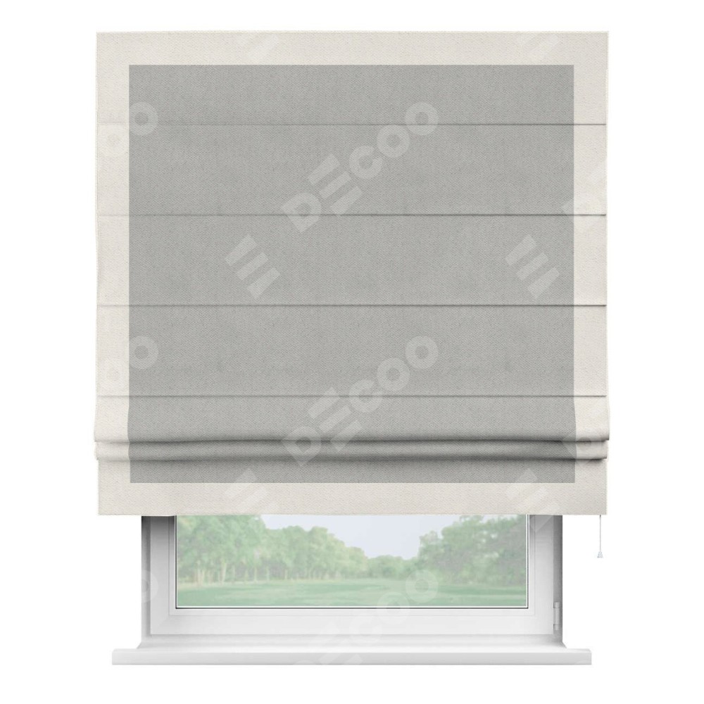 Римская штора производителя «Cortin», используется для проёма, пошита из ткани блэкаут с блеском сиреневый, артикул 34649. Отделка шторы кантом «Чесс», ткань для канта используется из блэкаута с блеском разной расцветки на выбор. Изнаночная сторона материала черного цвета, что обеспечивает необходимую светонепроницаемость. Имеет универсальный механизм и подходит для монтажа: на потолок, на стену и в нишу.