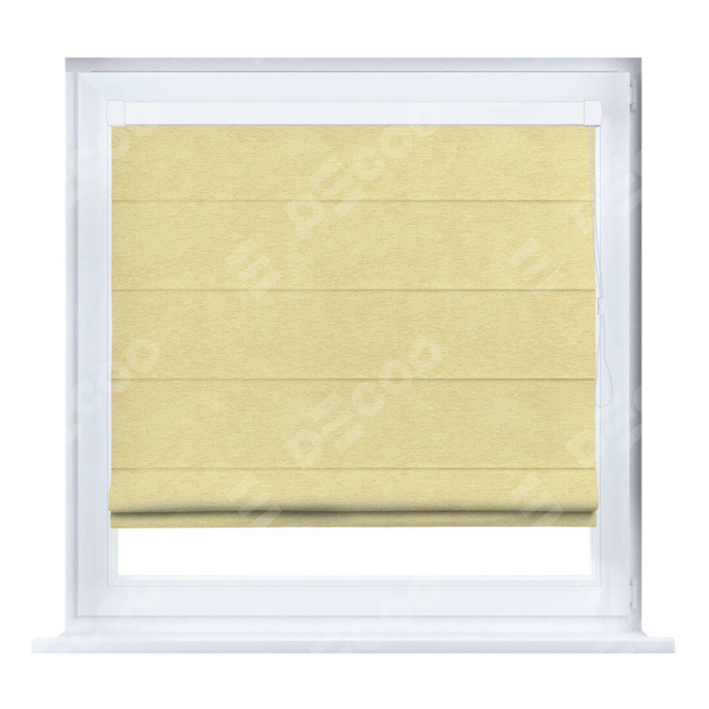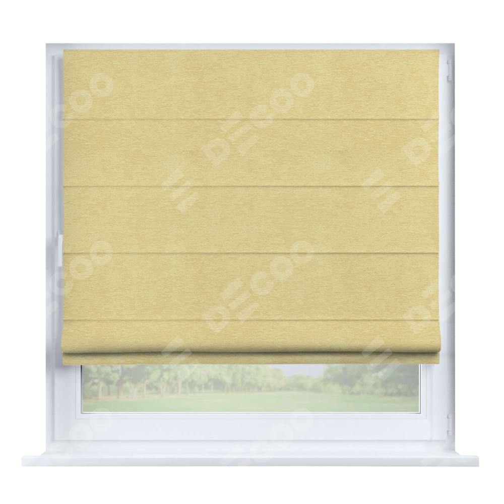 Римская штора производителя «Cortin», устанавливается на створку окна, пошита из ткани софт однотонный золотой, артикул 42934. Штора шьётся по индивидуальным размерам, для данного типа римской шторы возможная ширина от 35 до 150 см., высота до 250 см.