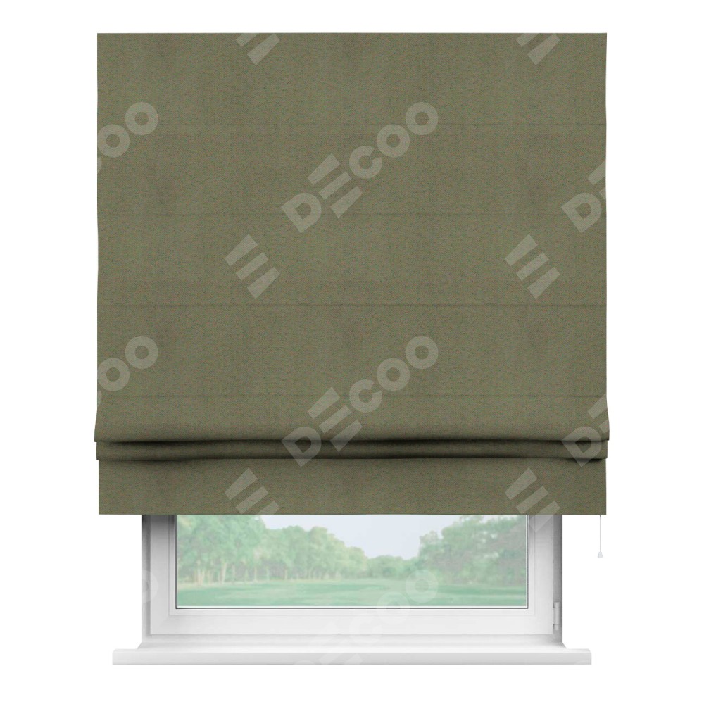 Римская штора производителя «Cortin», используется для проёма, пошита из ткани блэкаут однотонный серо-коричневый, артикул ткани 29568. Имеет универсальный механизм и подходит для монтажа: на потолок, на стену и в нишу.
