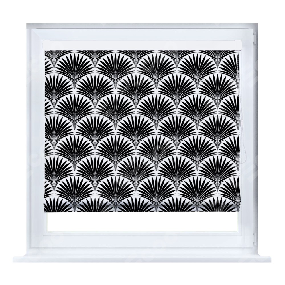Римская штора «Кортин» на створку «Арт-деко листья черный»