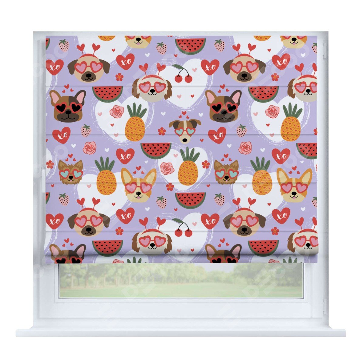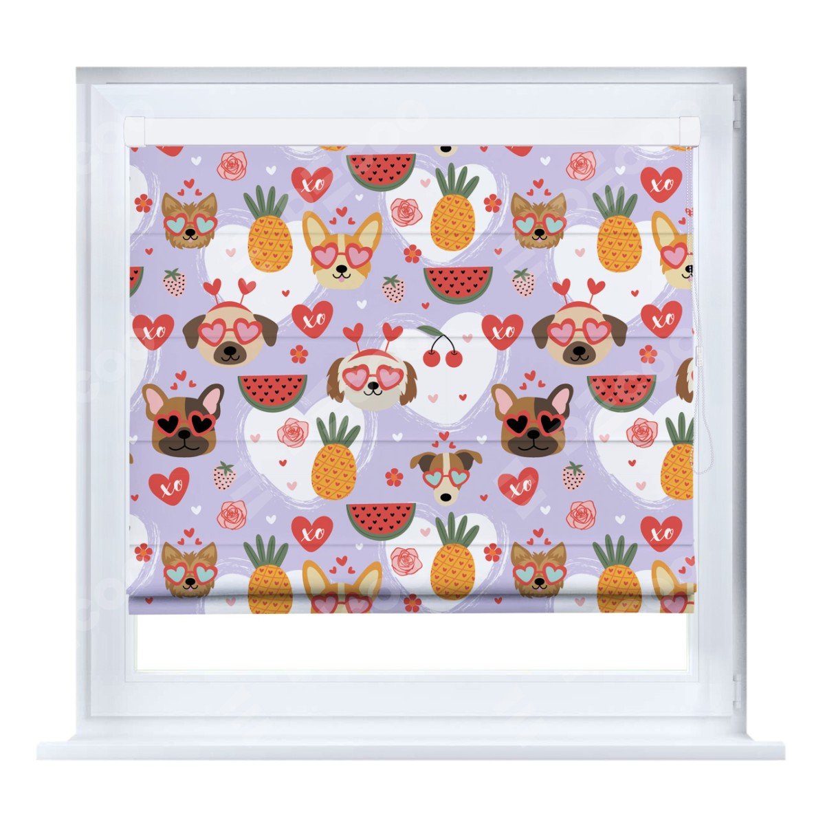 Римская штора производителя «Cortin», устанавливается на створку окна, пошита из ткани блэкаут с нанесением сублимационной печати «Забавные собачки». Штора шьётся по индивидуальным размерам, для данного типа римской шторы возможная ширина от 35 до 150 см., высота до 250 см.