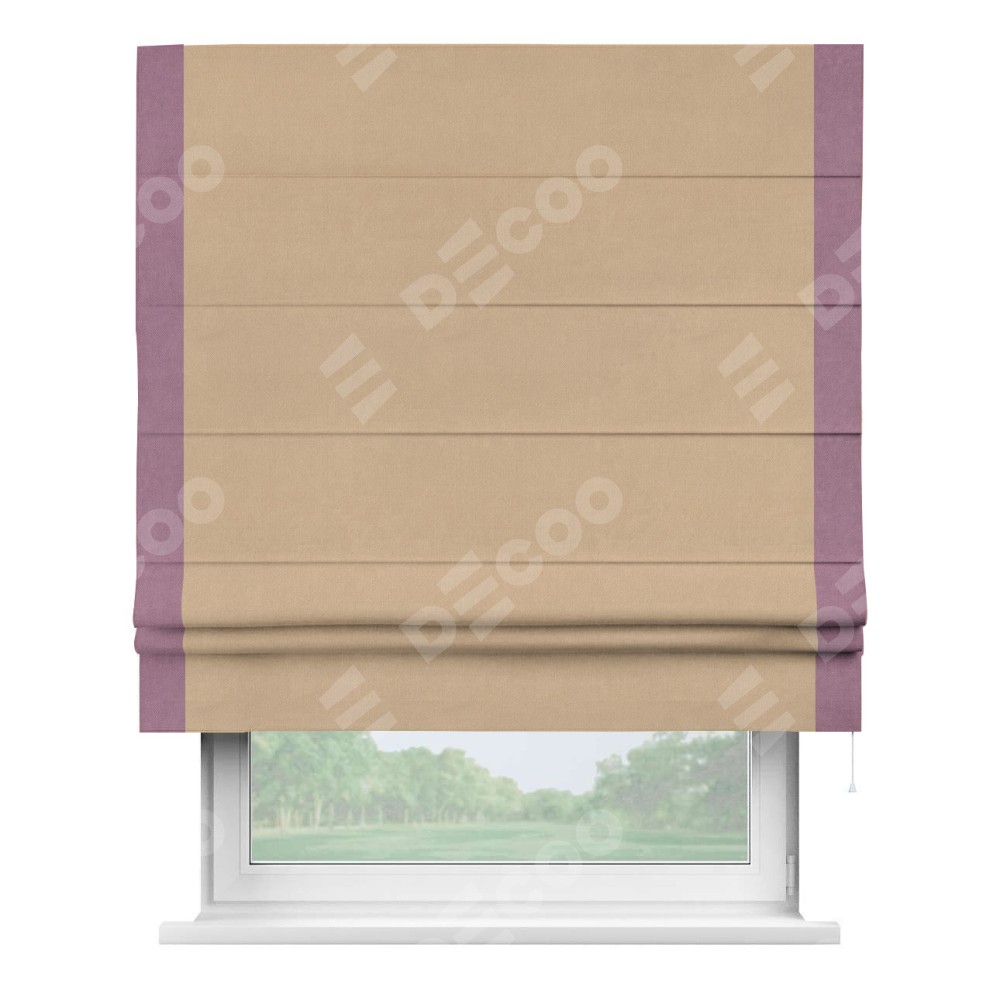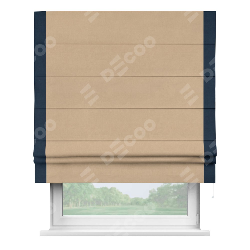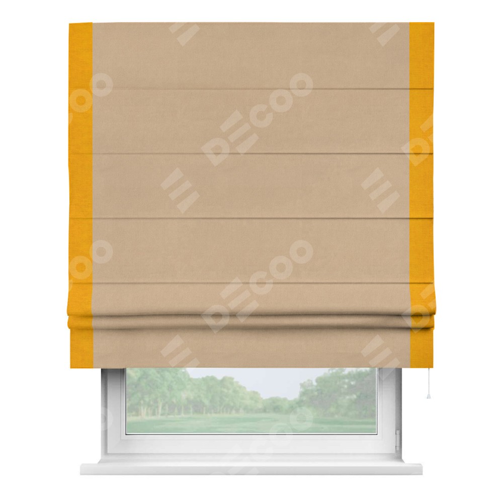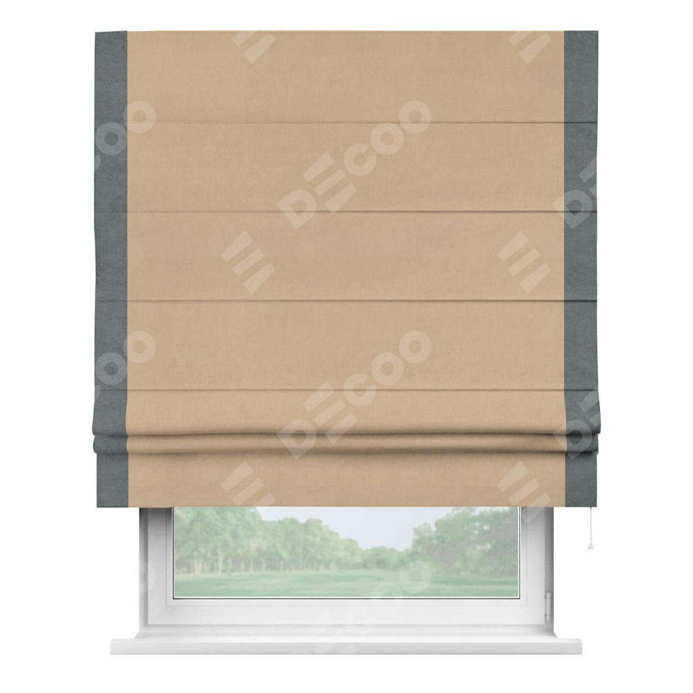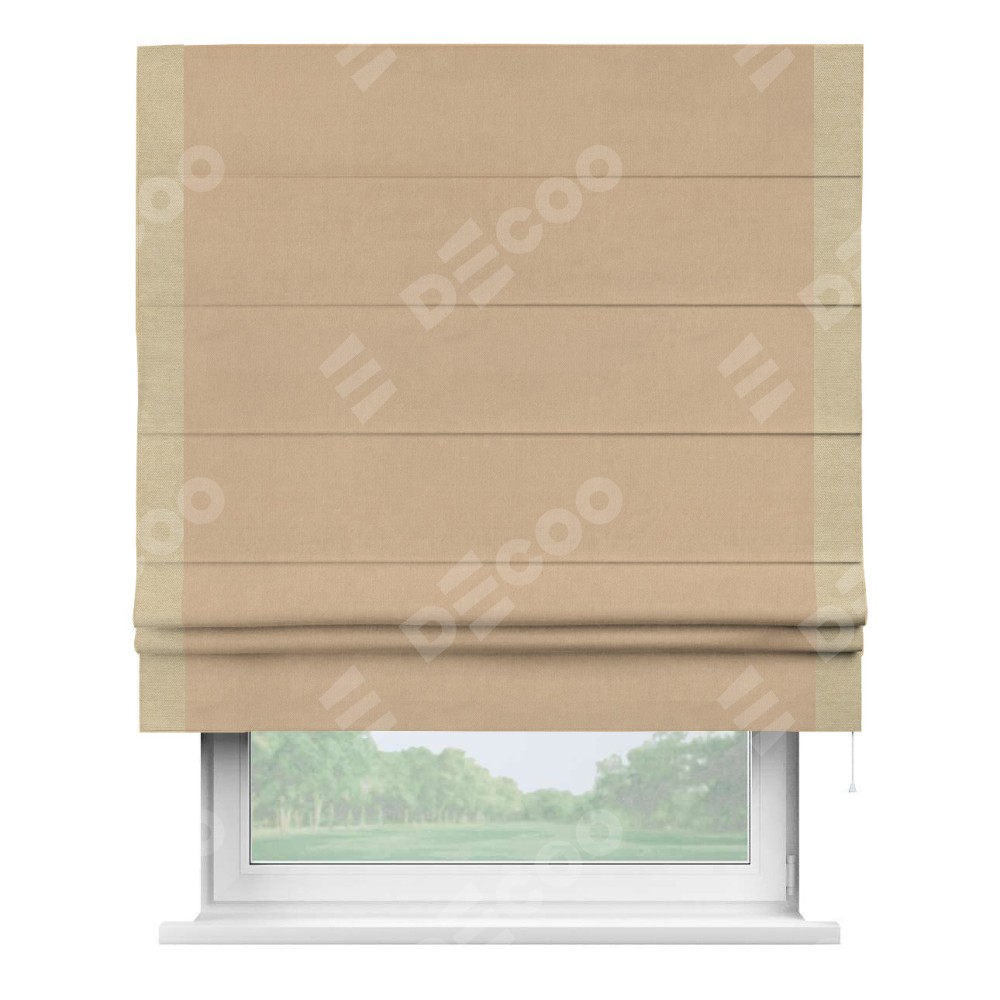 Римская штора «Кортин» с кантом Стрим Дуо, для проема, ткань вельвет песочный