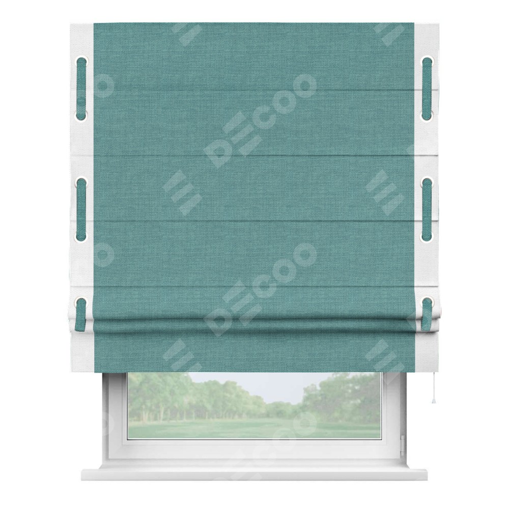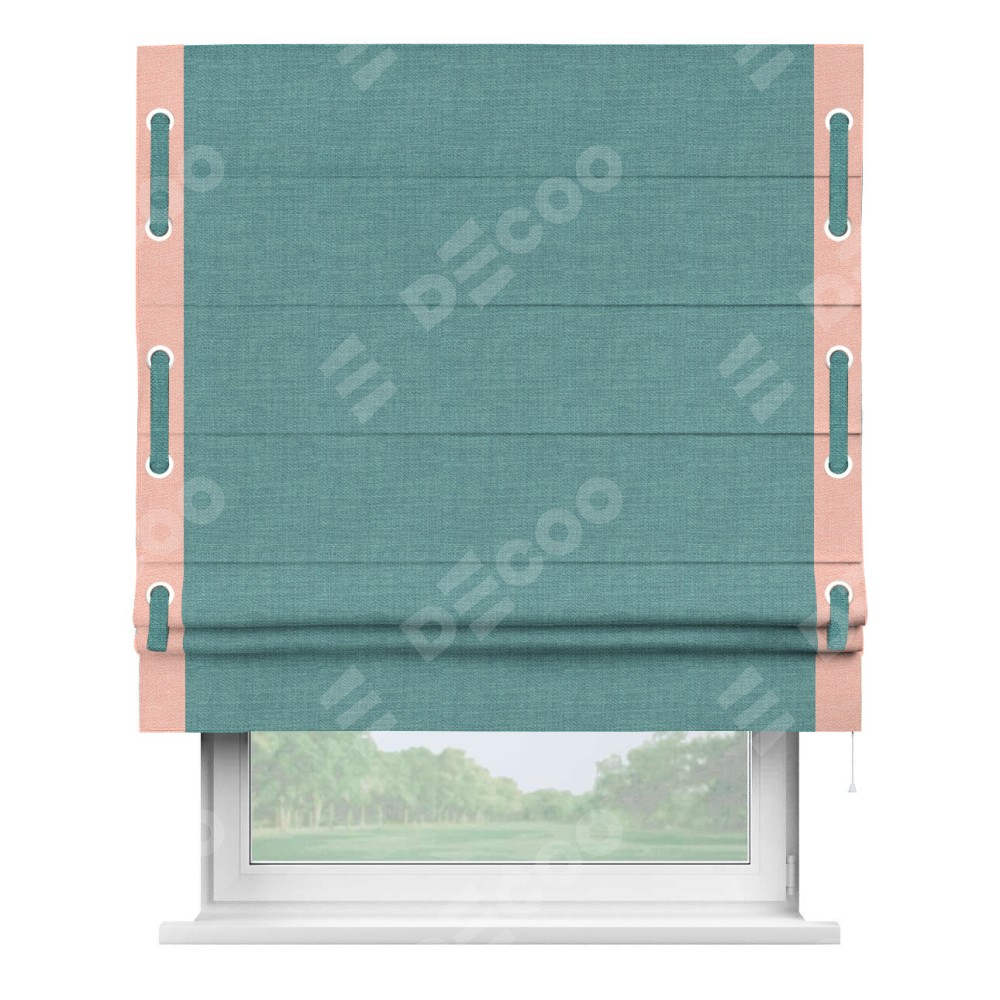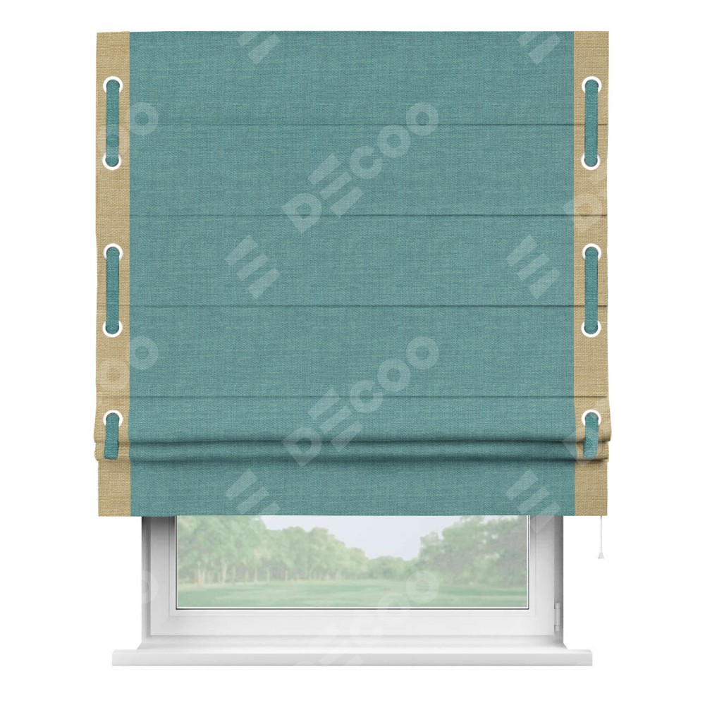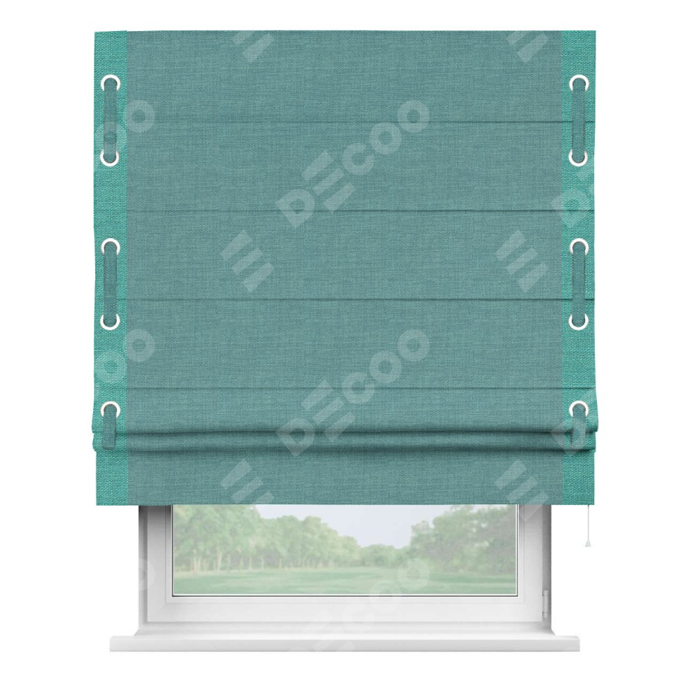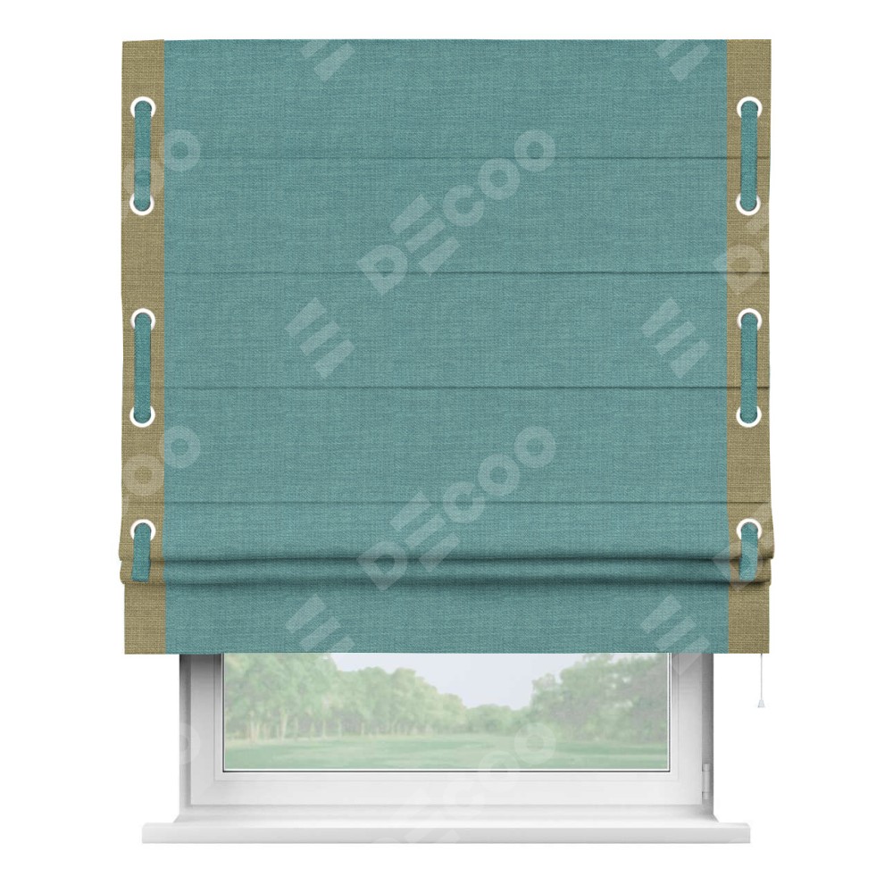 Римская штора «Кортин» с кантом Стрим Дуо (люверсы с пояском), для проема, ткань лён бирюза