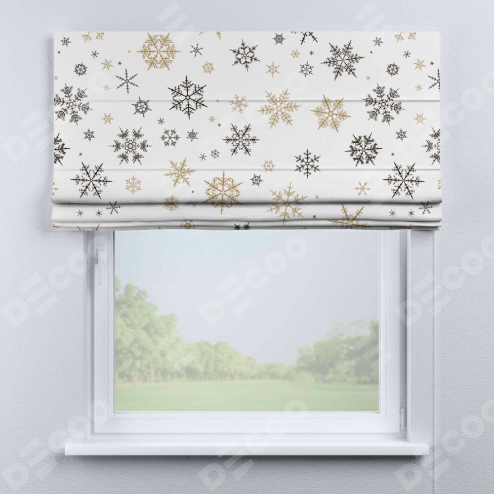 Римская штора производителя «Cortin», используется для проёма, пошита из ткани блэкаут с нанесением сублимационной печати «Зимняя метель». Имеет универсальный механизм и подходит для монтажа: на потолок, на стену и в нишу.