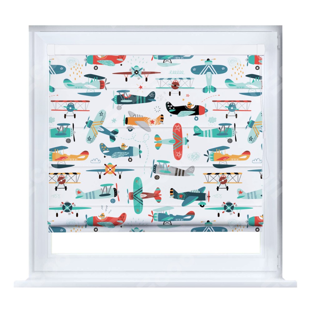 Римская штора «Кортин» на створку «Самолёты и пилоты»