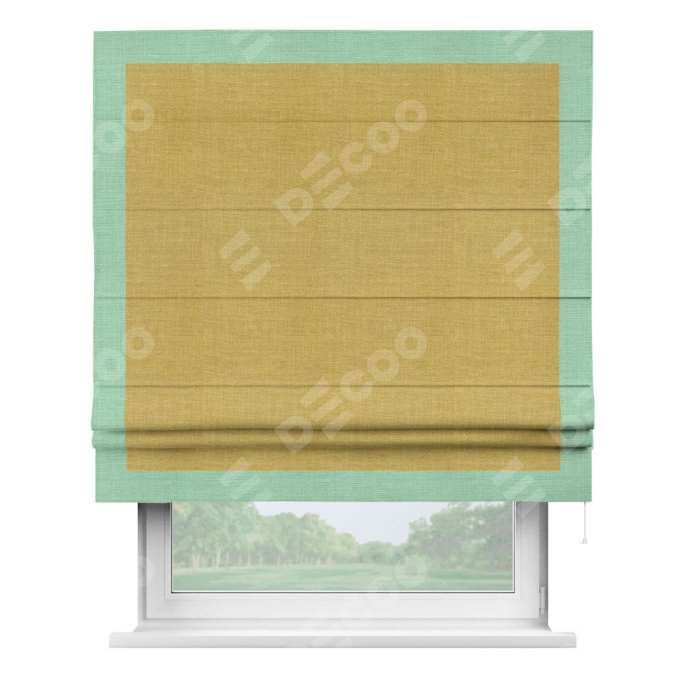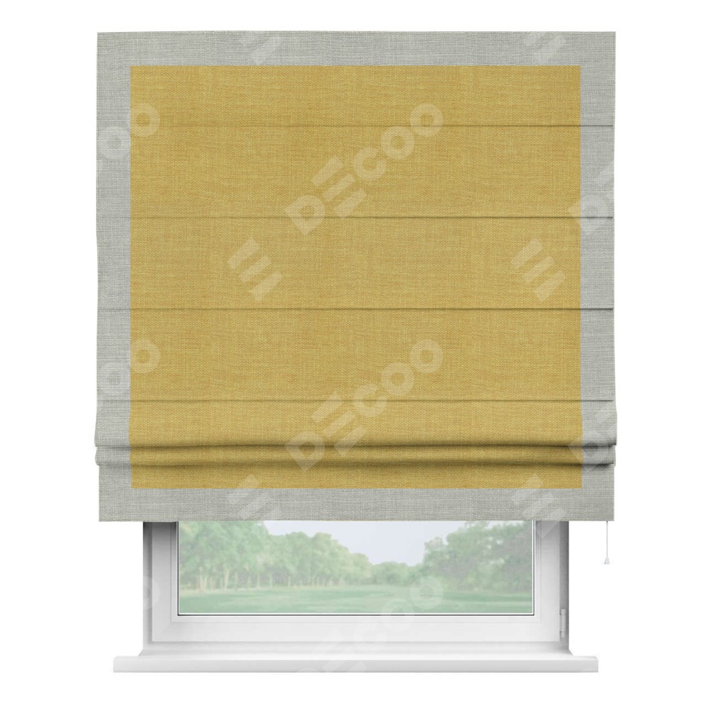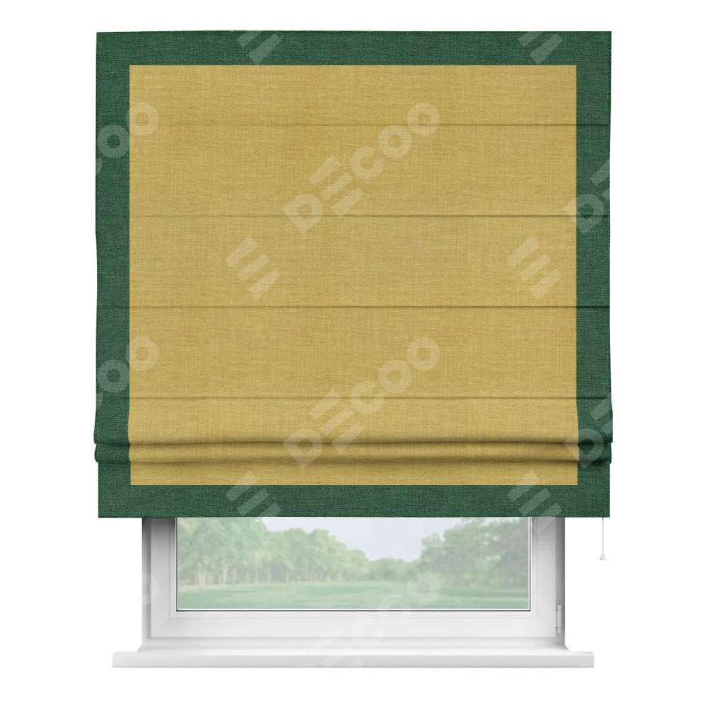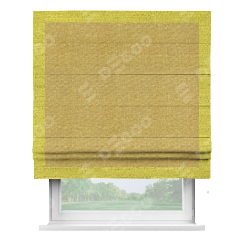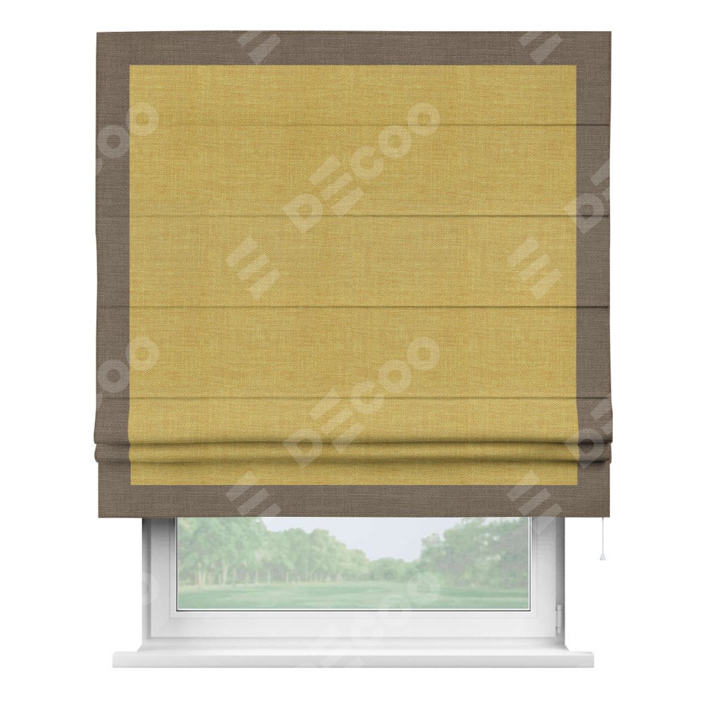 Римская штора «Кортин» с кантом Чесс, для проема, ткань лён горчичный