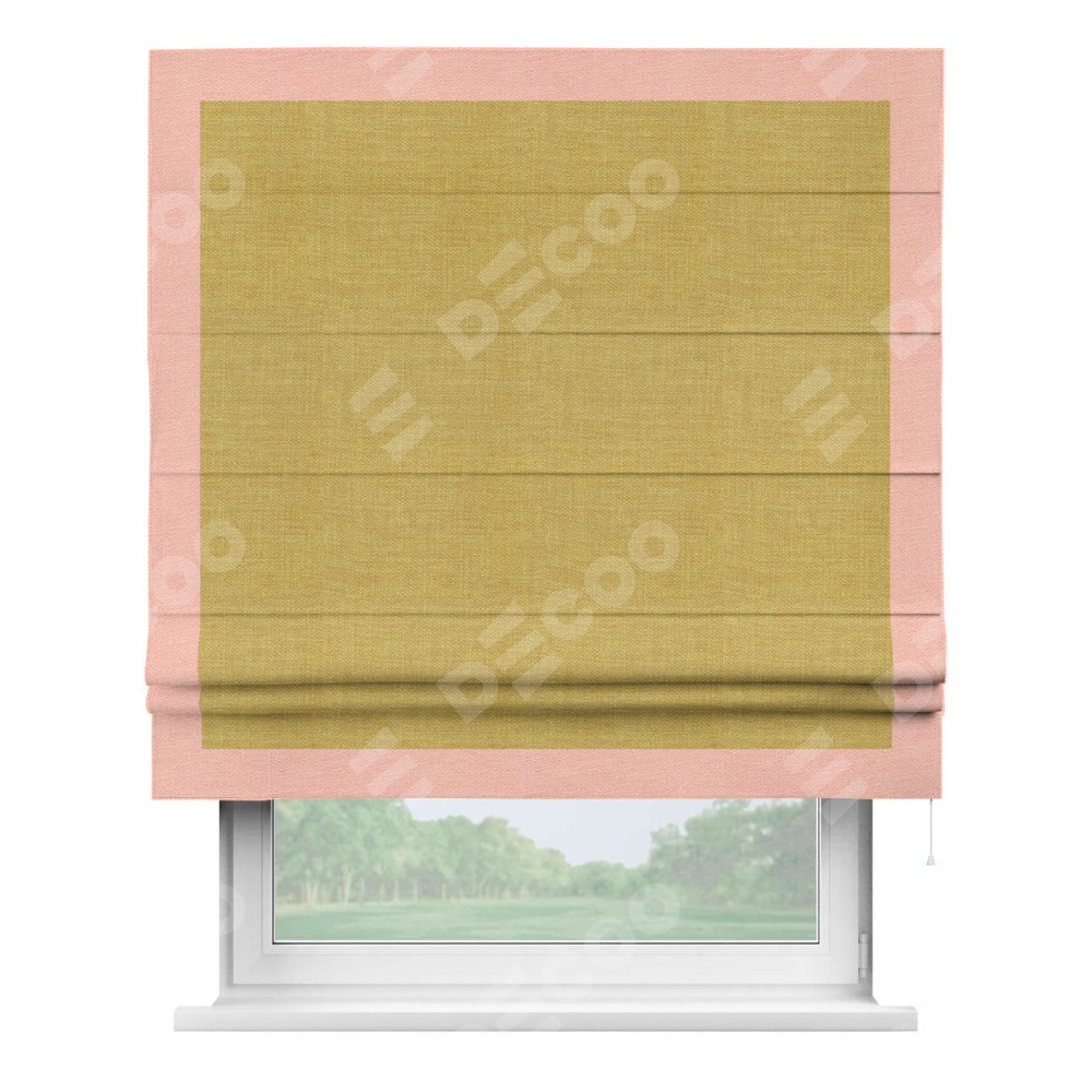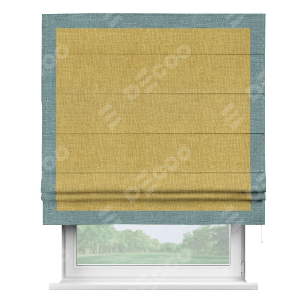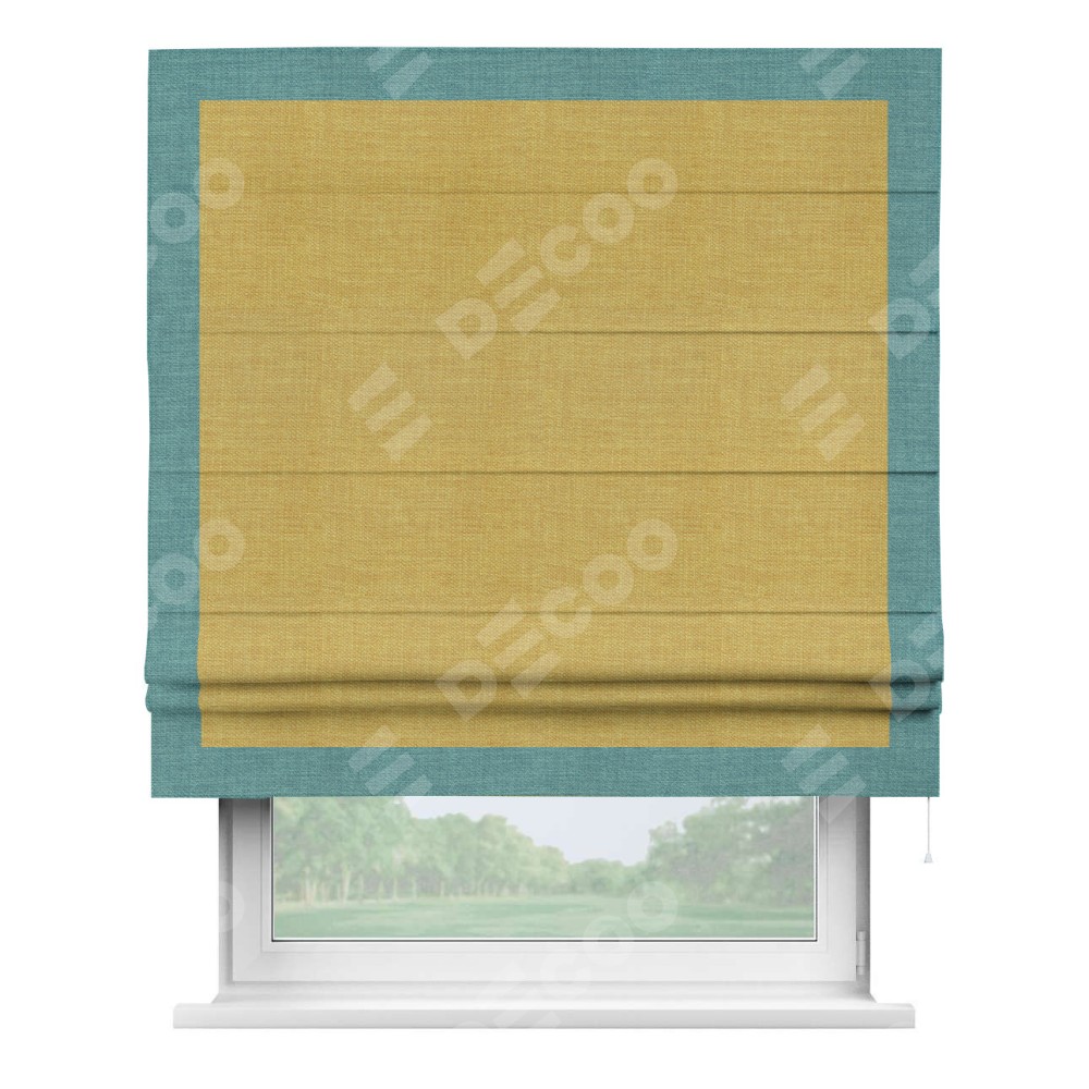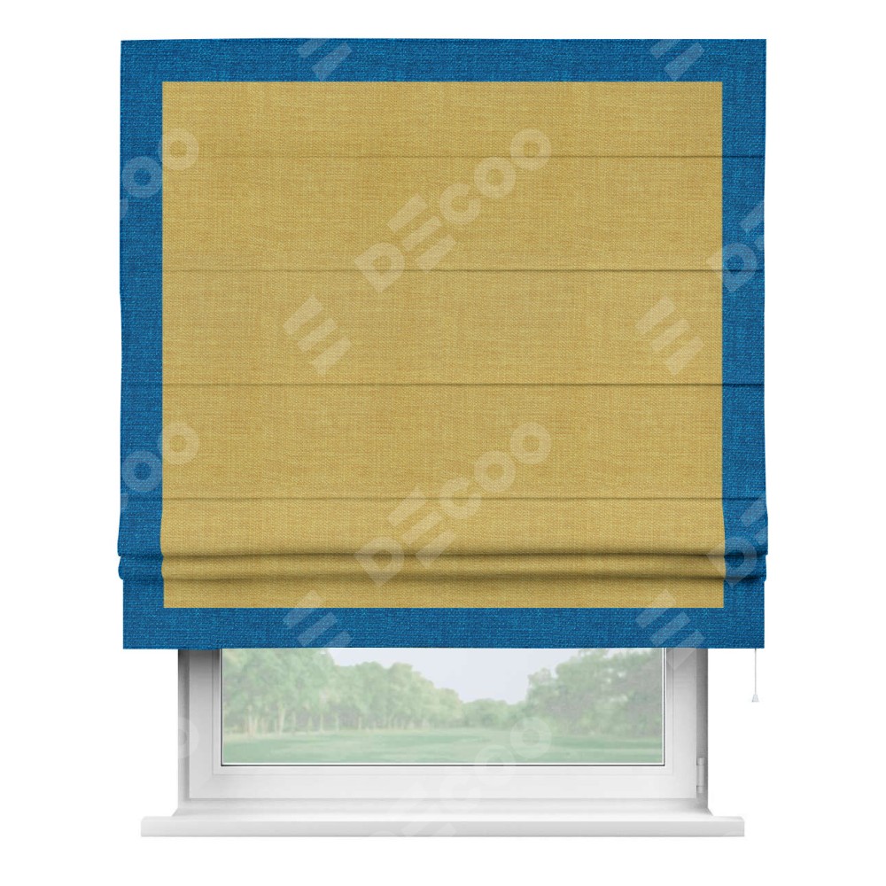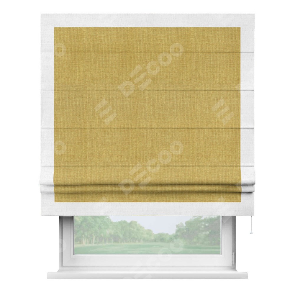 Римская штора «Кортин» с кантом Чесс, для проема, ткань лён горчичный