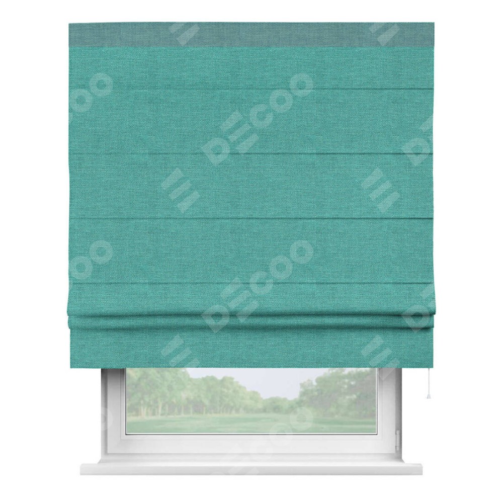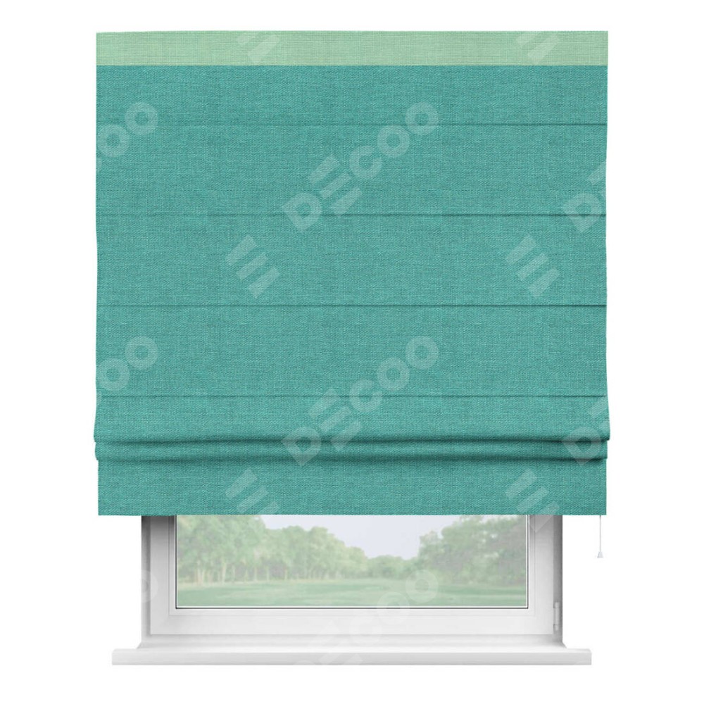 Римская штора «Кортин» с кантом Кинг, для проема, ткань лён изумрудный