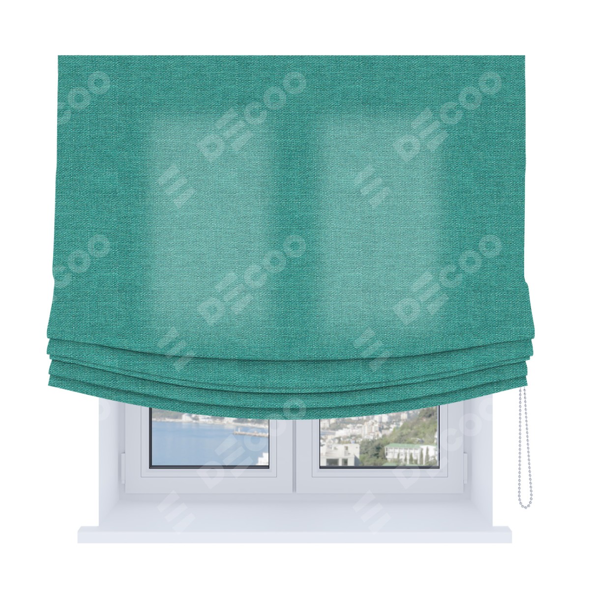 Римская штора Soft производителя «Cortin», используется для проёма, пошита из ткани лён изумрудный, артикул ткани 85908. Имеет универсальный механизм и подходит для монтажа: на потолок, на стену и в нишу. В отличие от стандартных римских штор, римская штора Soft не имеет горизонтальных вставок и нижнего отвеса. Это позволяет ткани произвольно драпироваться в свободные мягкие складки.