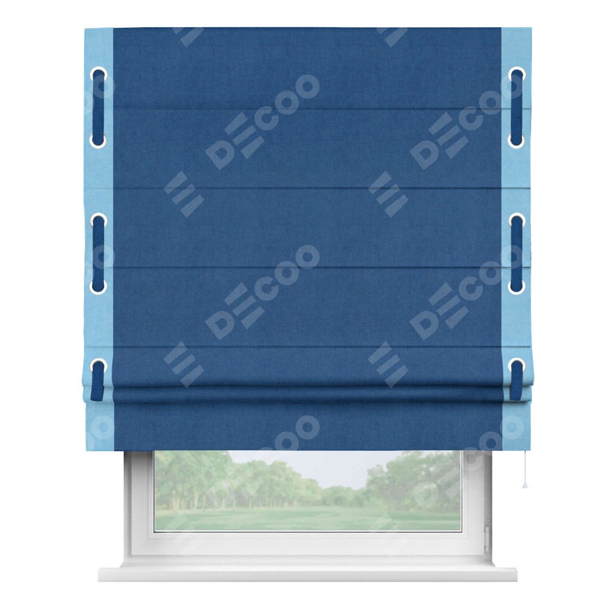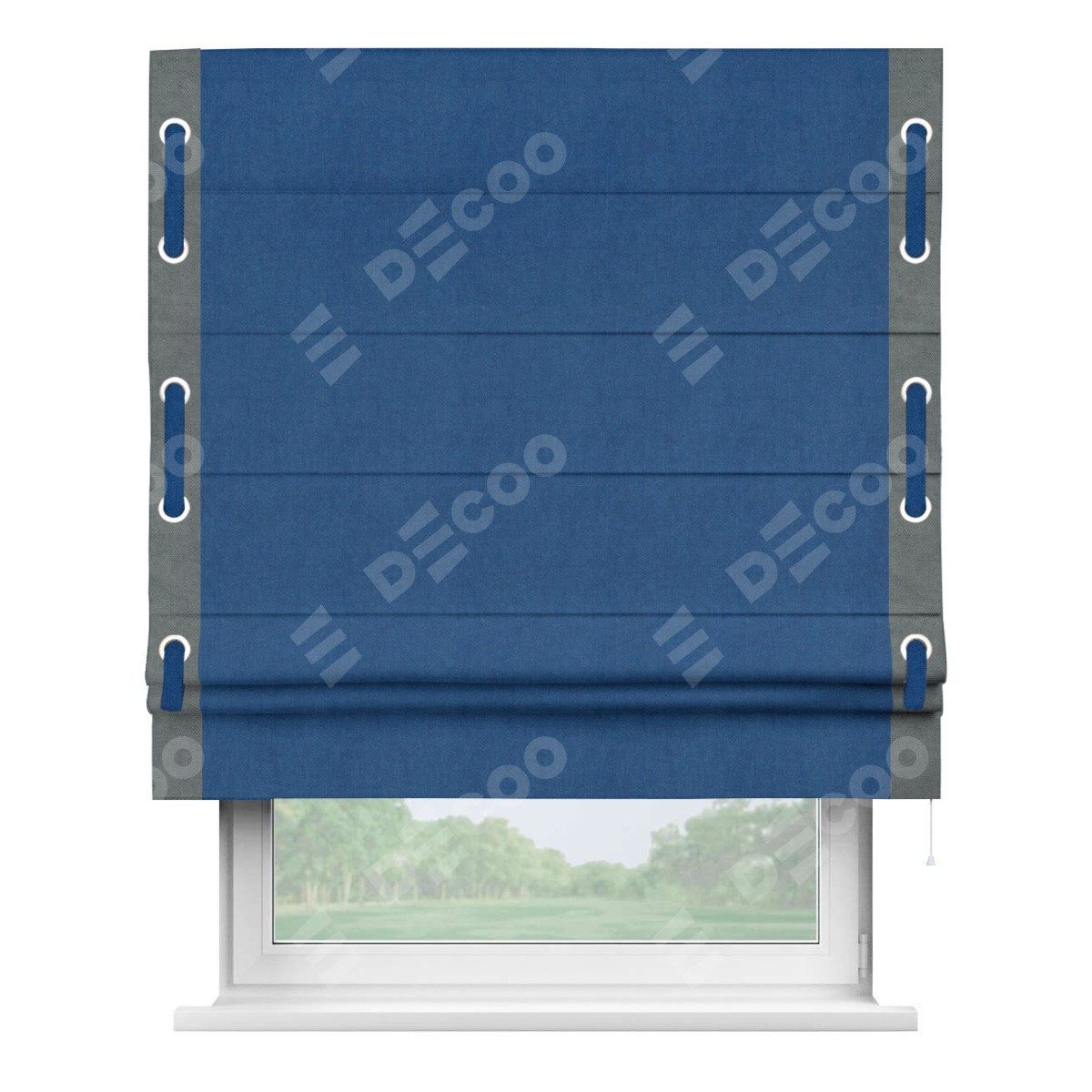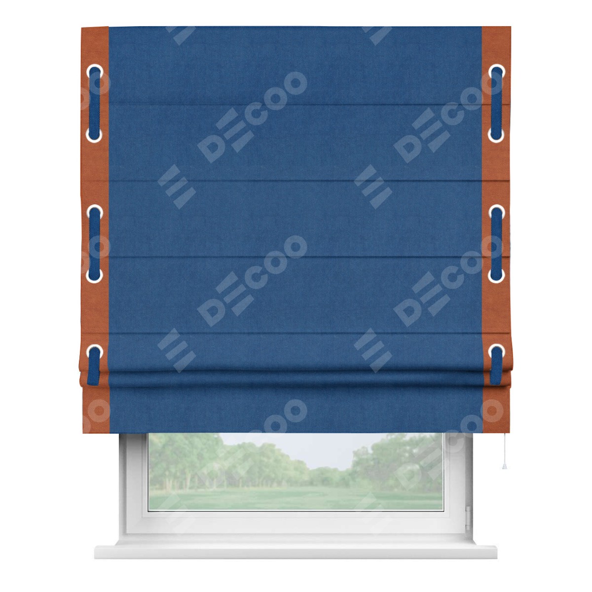 Римская штора «Кортин» с кантом Стрим Дуо (люверсы с пояском), для проема, ткань вельвет синий