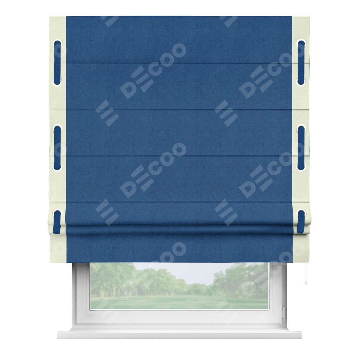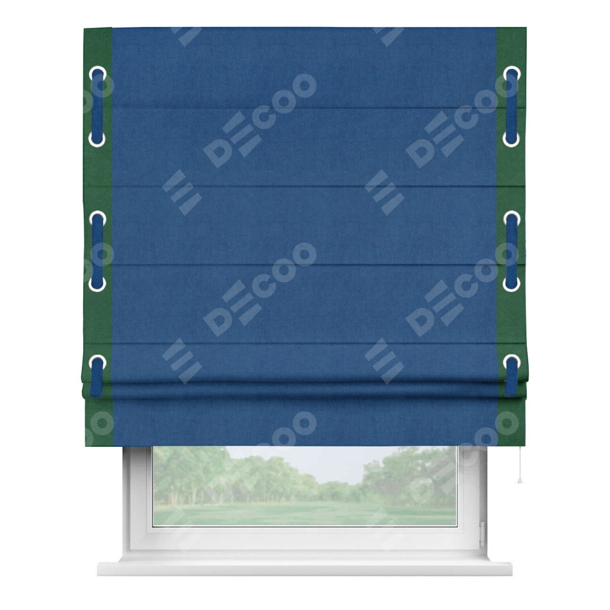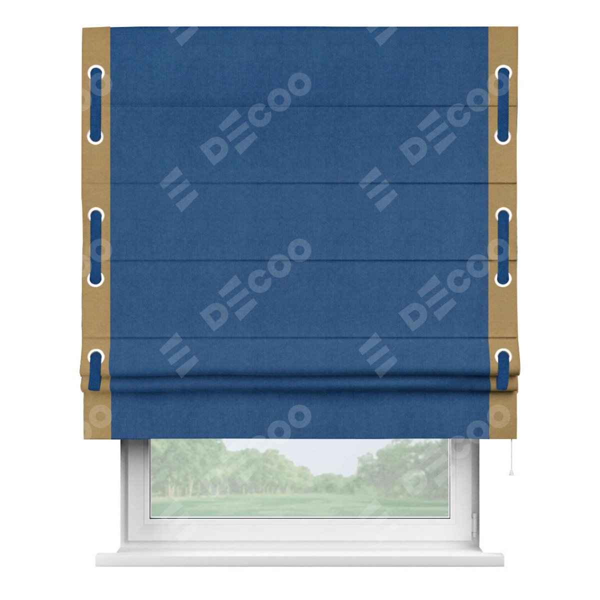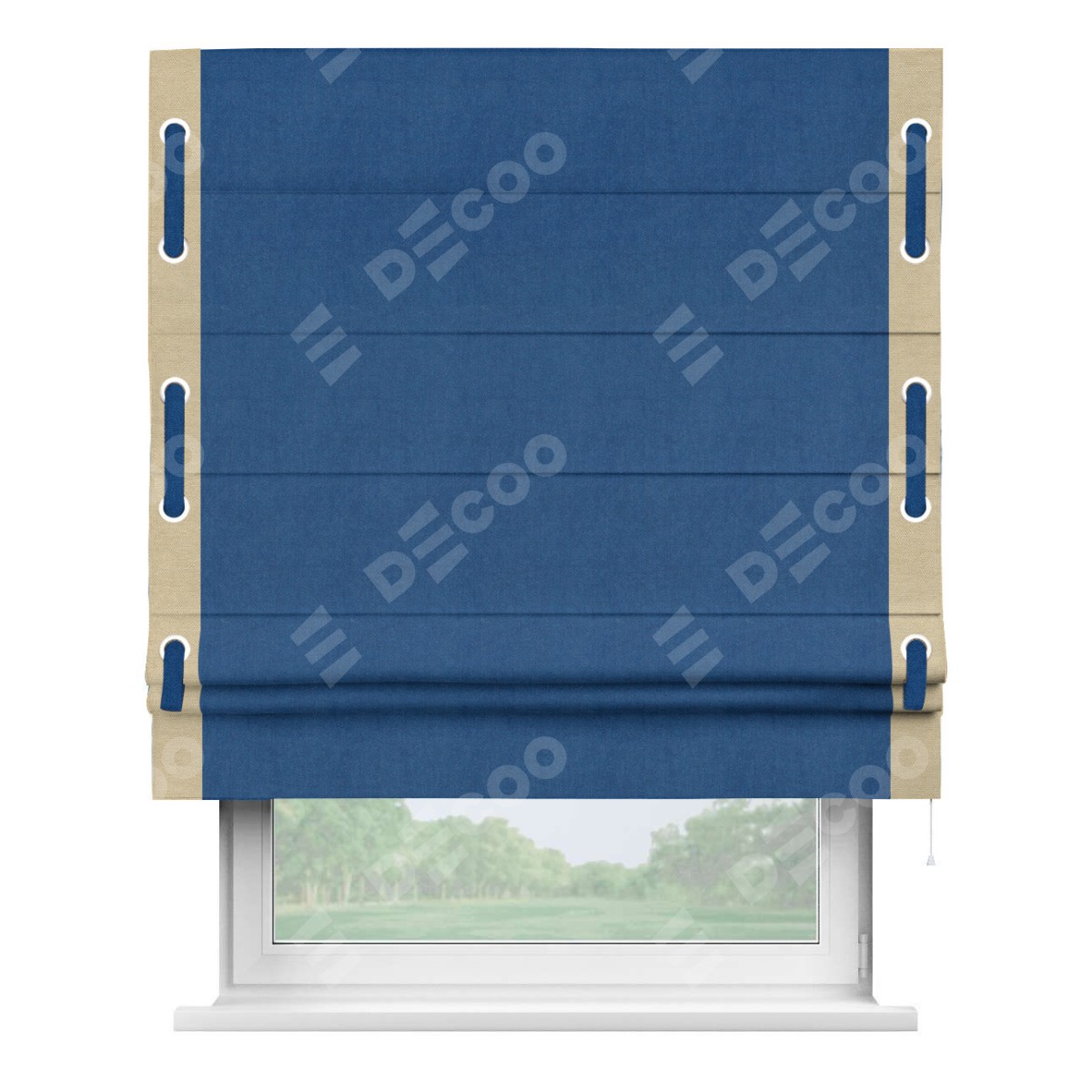 Римская штора «Кортин» с кантом Стрим Дуо (люверсы с пояском), для проема, ткань вельвет синий