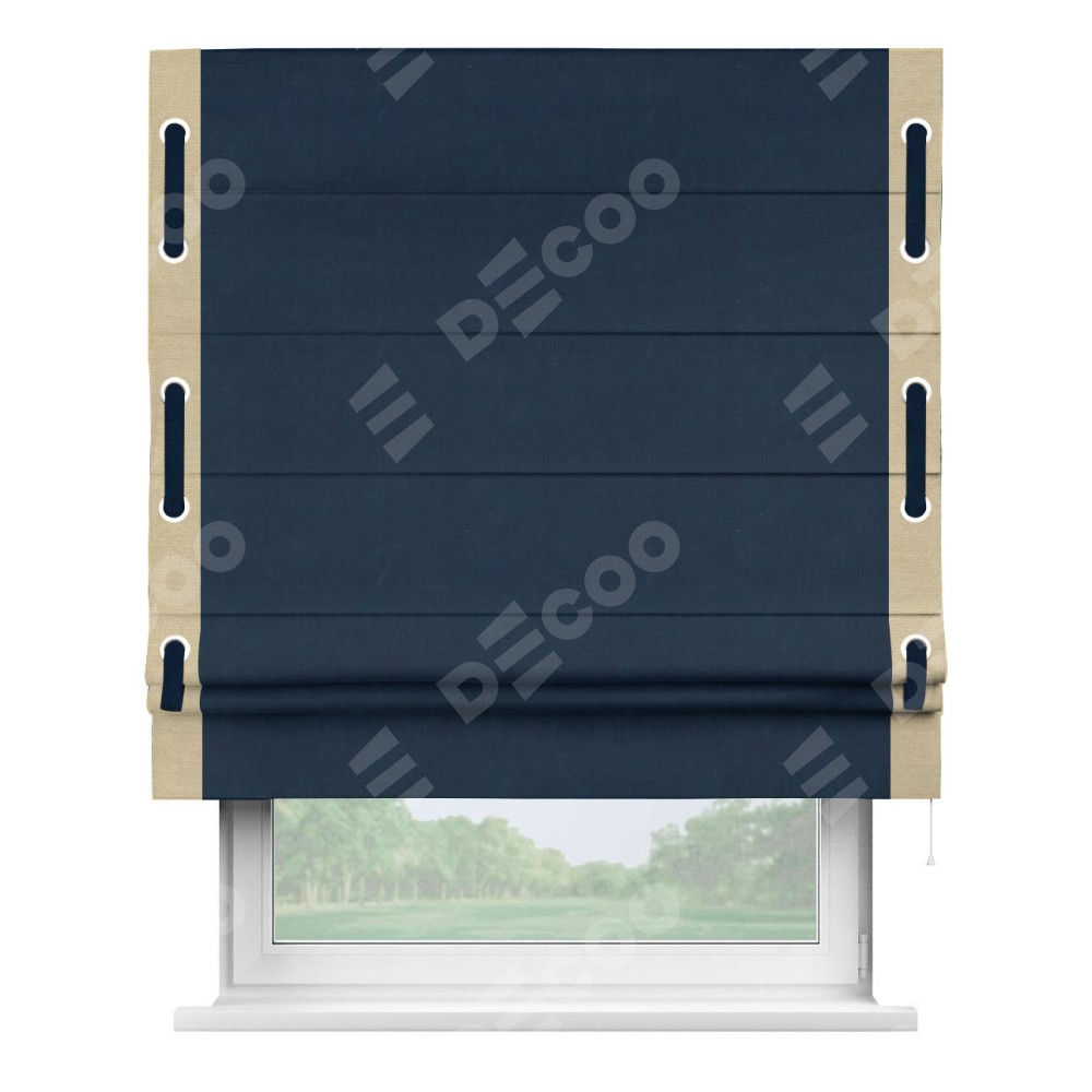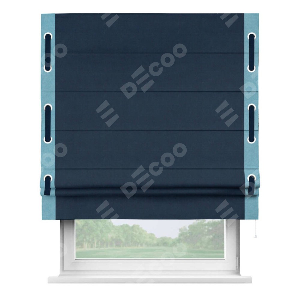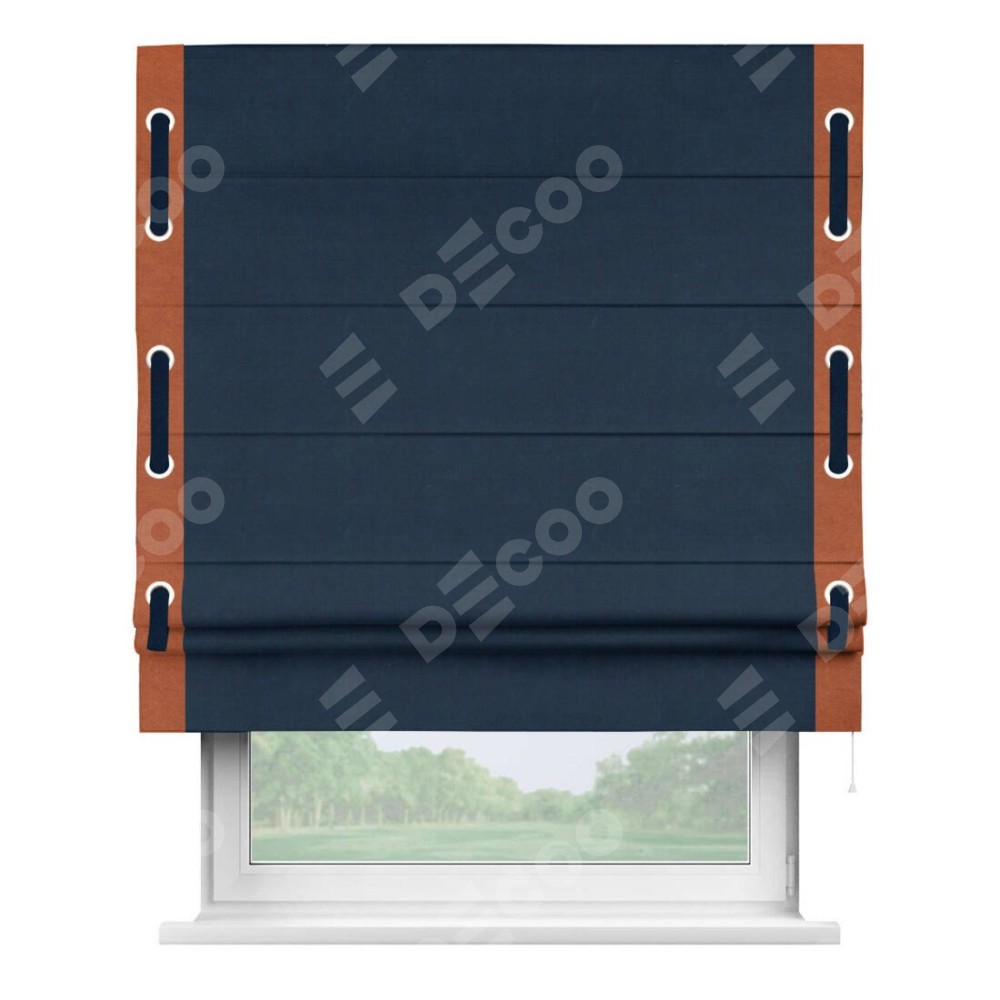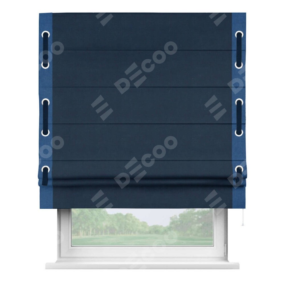 Римская штора «Кортин» с кантом Стрим Дуо (люверсы с пояском), для проема, ткань вельвет темно-синий