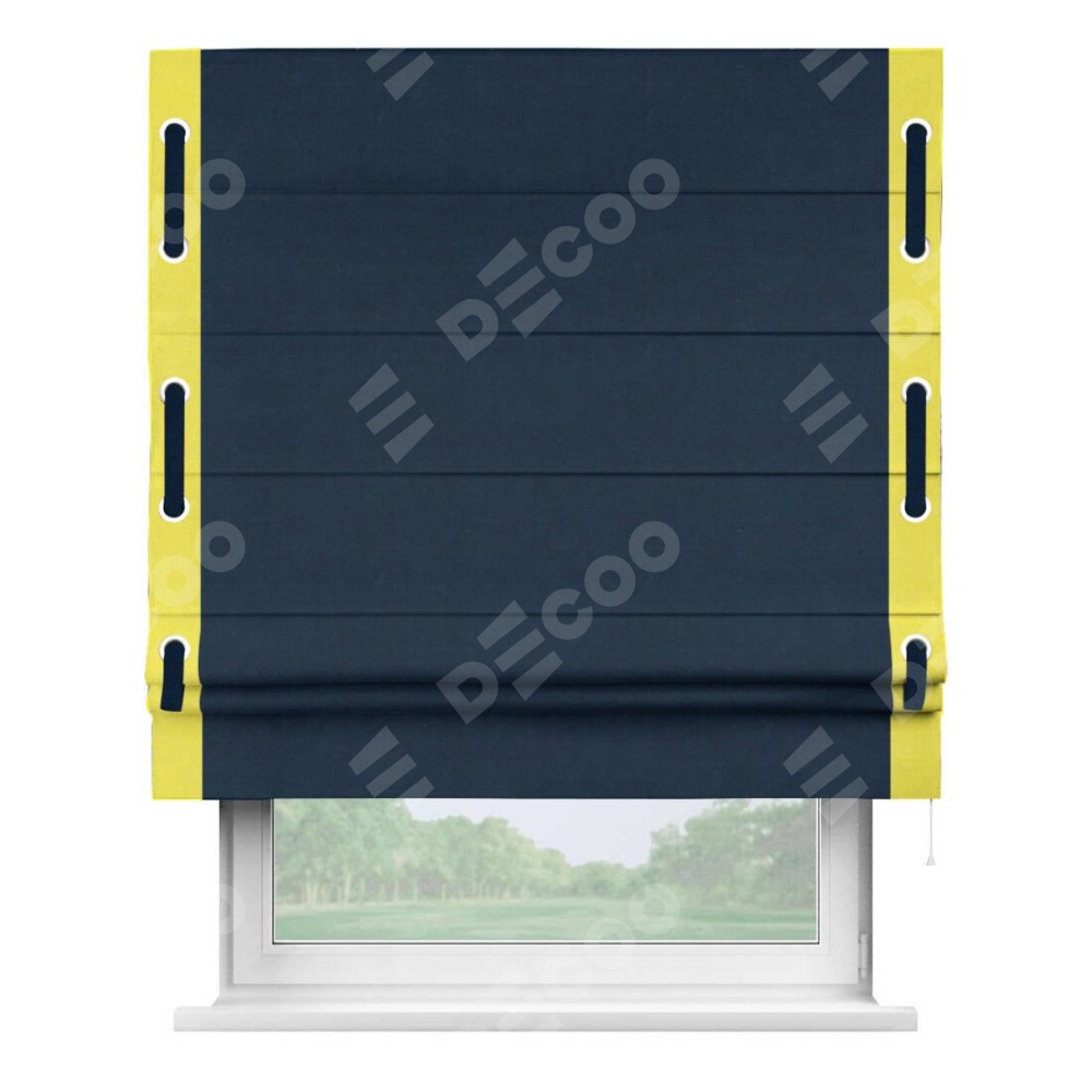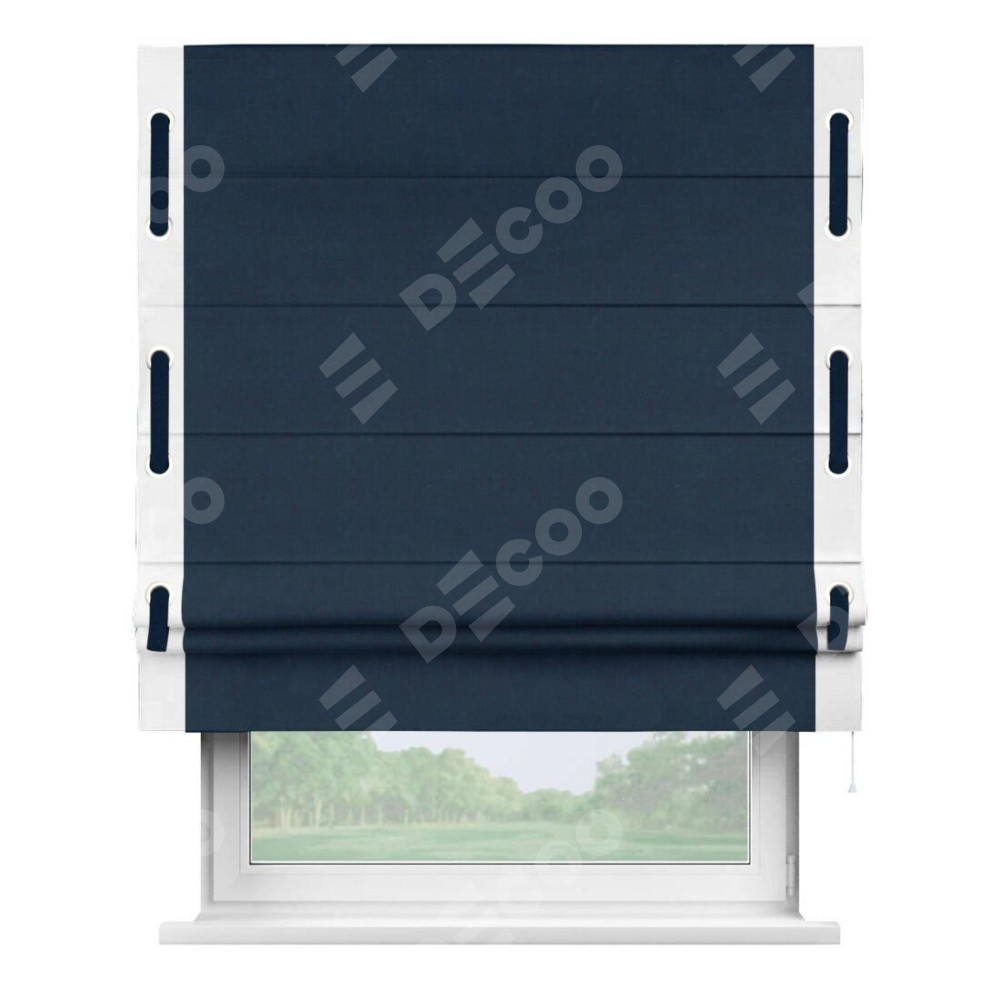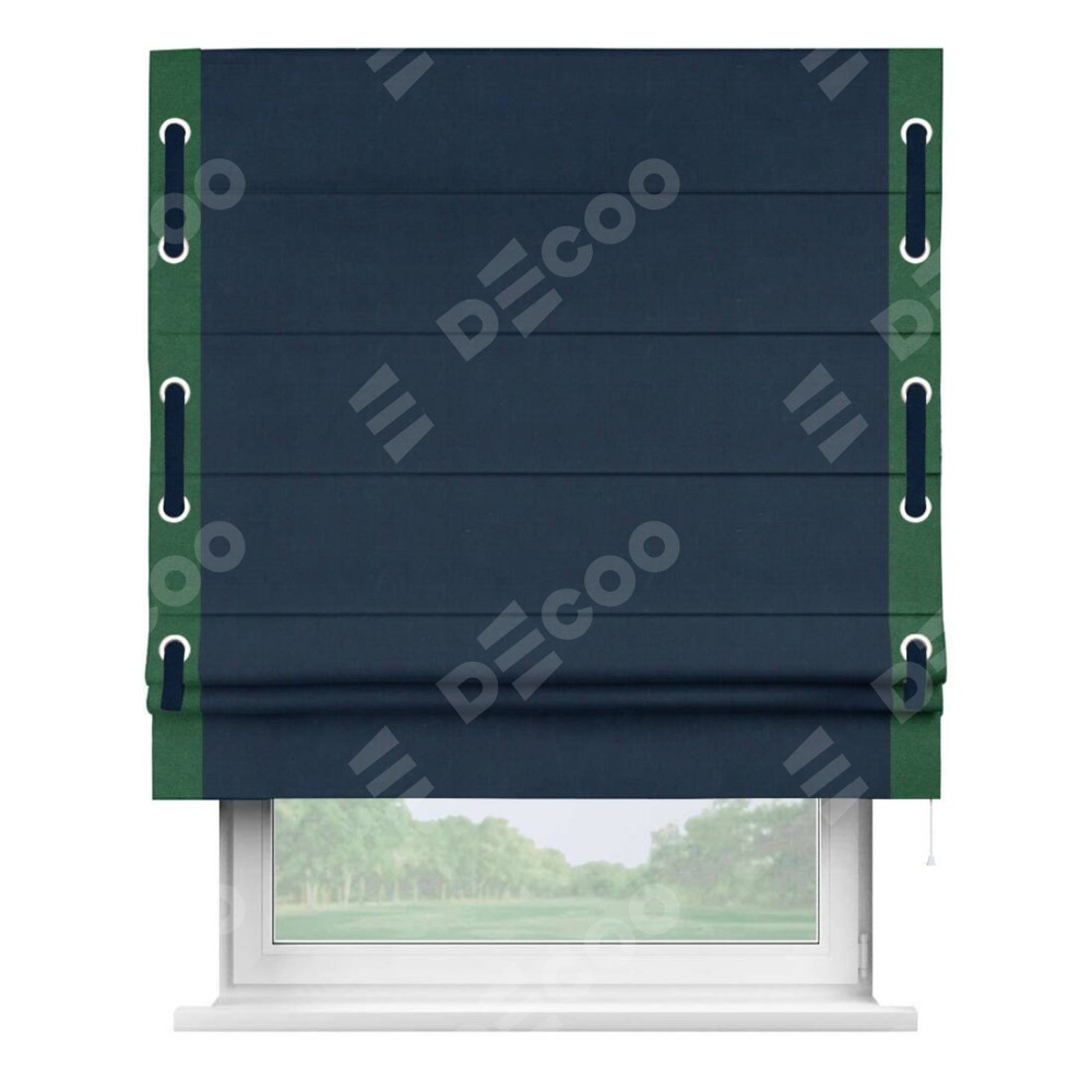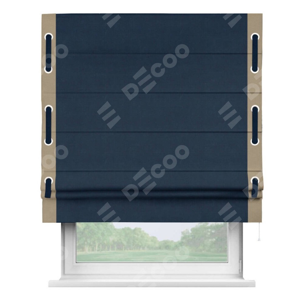 Римская штора «Кортин» с кантом Стрим Дуо (люверсы с пояском), для проема, ткань вельвет темно-синий