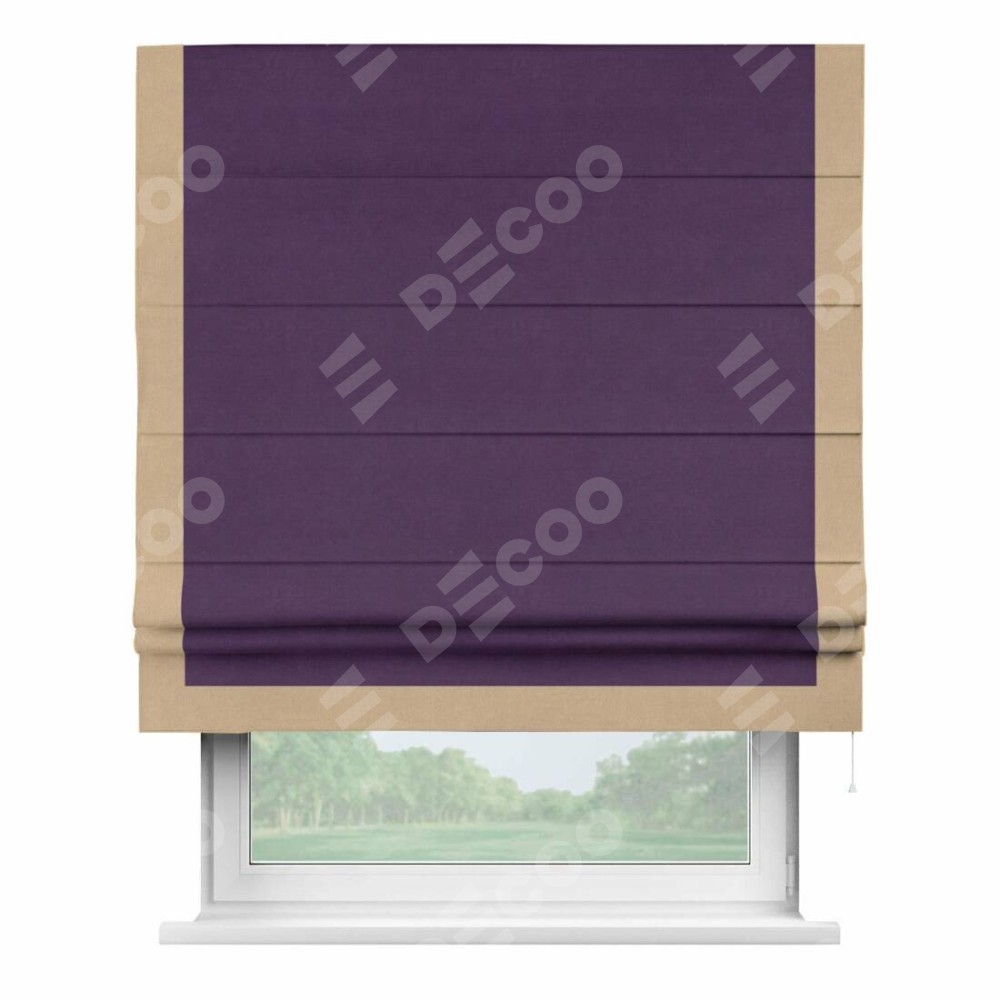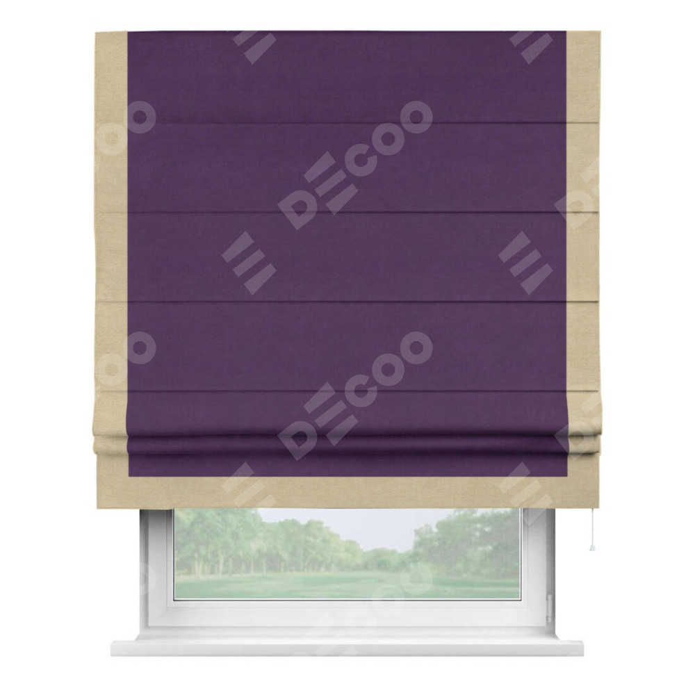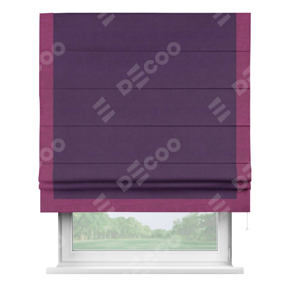 Римская штора «Кортин» с кантом Виктория, для проема, ткань вельвет темно-фиолетовый