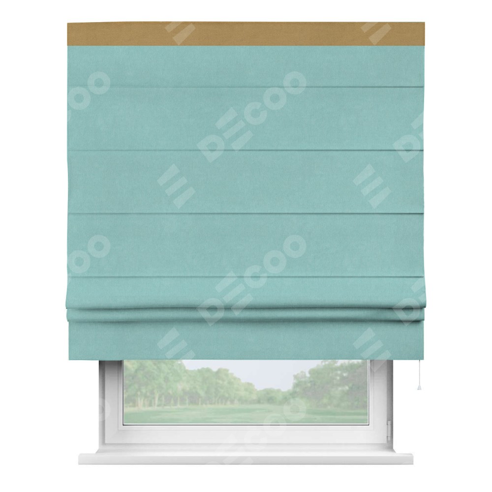 Римская штора производителя «Cortin», используется для проёма, пошита из ткани вельвет тиффани, артикул ткани 17765. Отделка шторы кантом «Кинг», ткань для канта используется из вельвета разной расцветки на выбор. Имеет универсальный механизм и подходит для монтажа: на потолок, на стену и в нишу.
