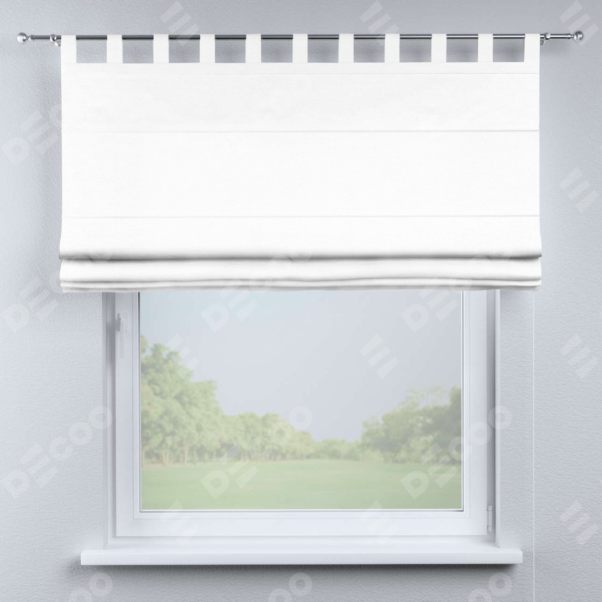 Римская штора производителя «Cortin», используется для проёма, пошита из ткани вельвет дымчато-белый, артикул ткани 85535. Данная модель пошита на петлях, комплектуется на выбор круглым карнизом и подходит для монтажа на стену. Римская штора на петлях имеет простую систему регулировки высоты, отличительным преимуществом данной модели является простой способ монтажа. Достаточно повесить ее на трубу и штора готова!