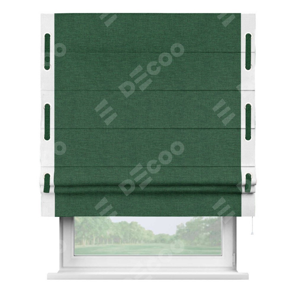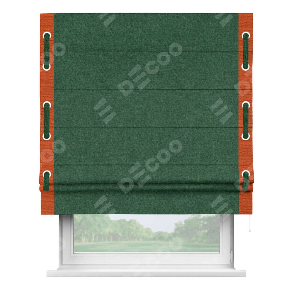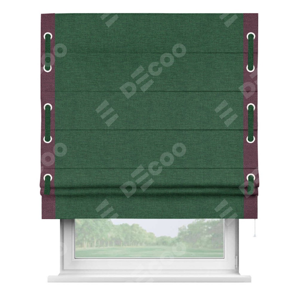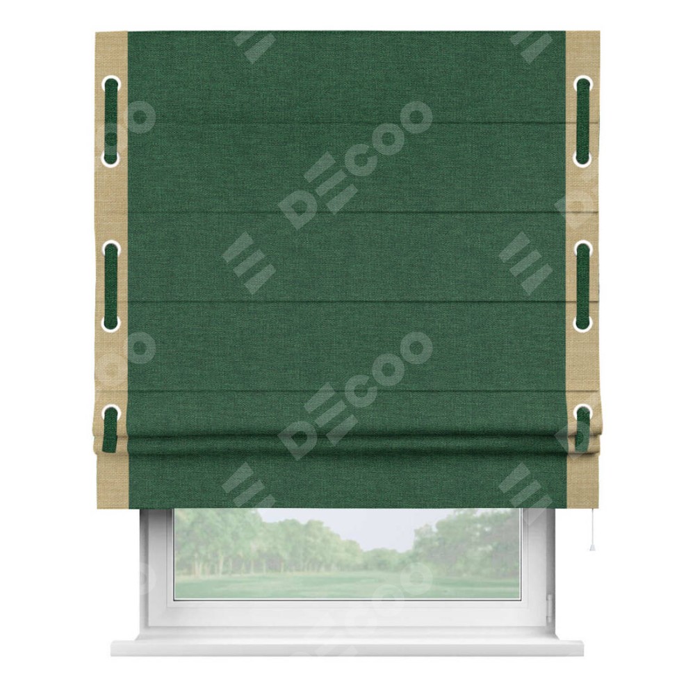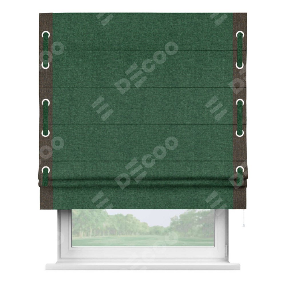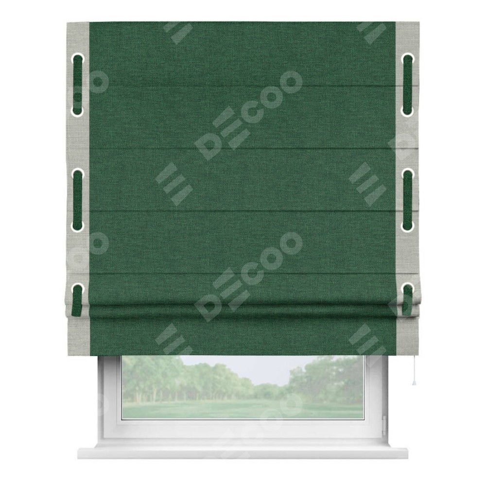 Римская штора «Кортин» с кантом Стрим Дуо (люверсы с пояском), для проема, ткань лён серо-зеленый