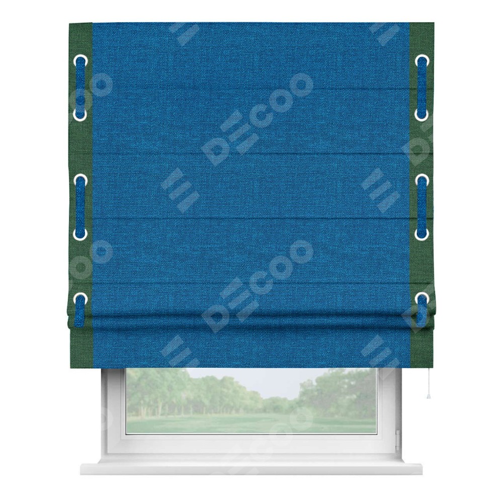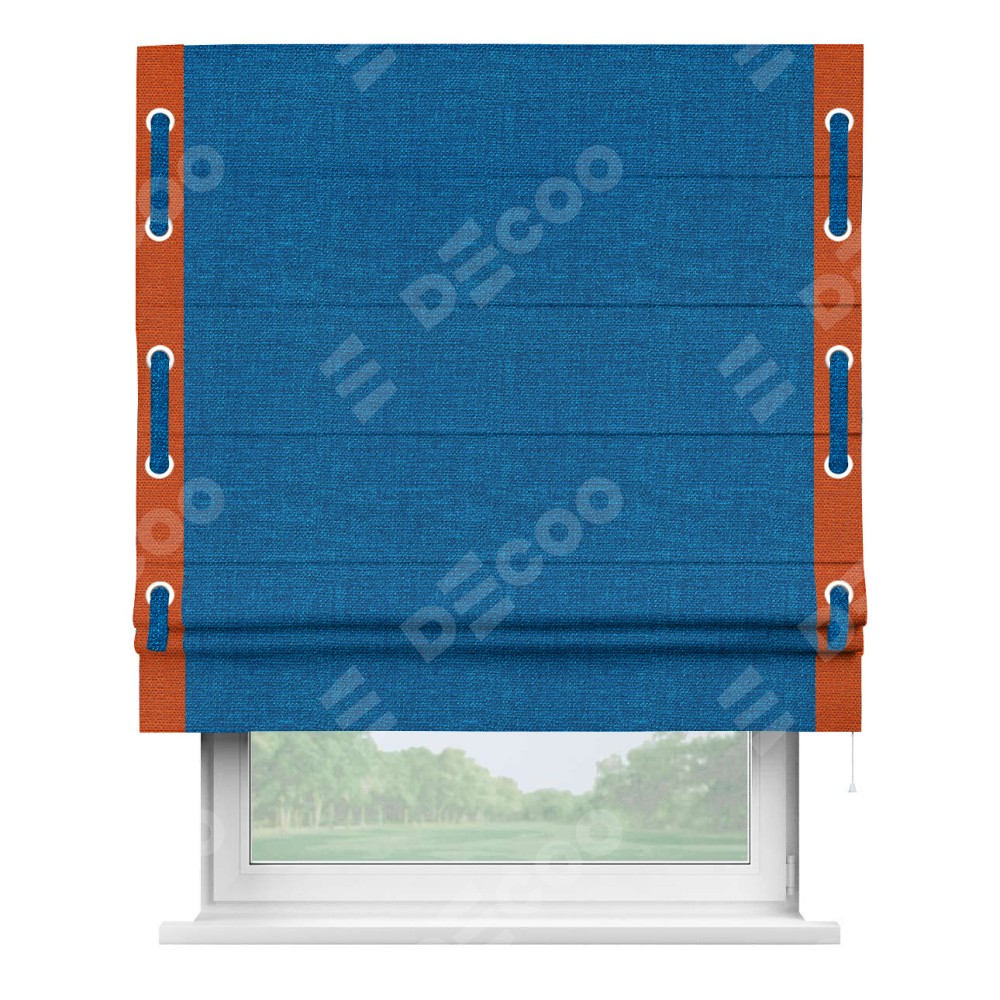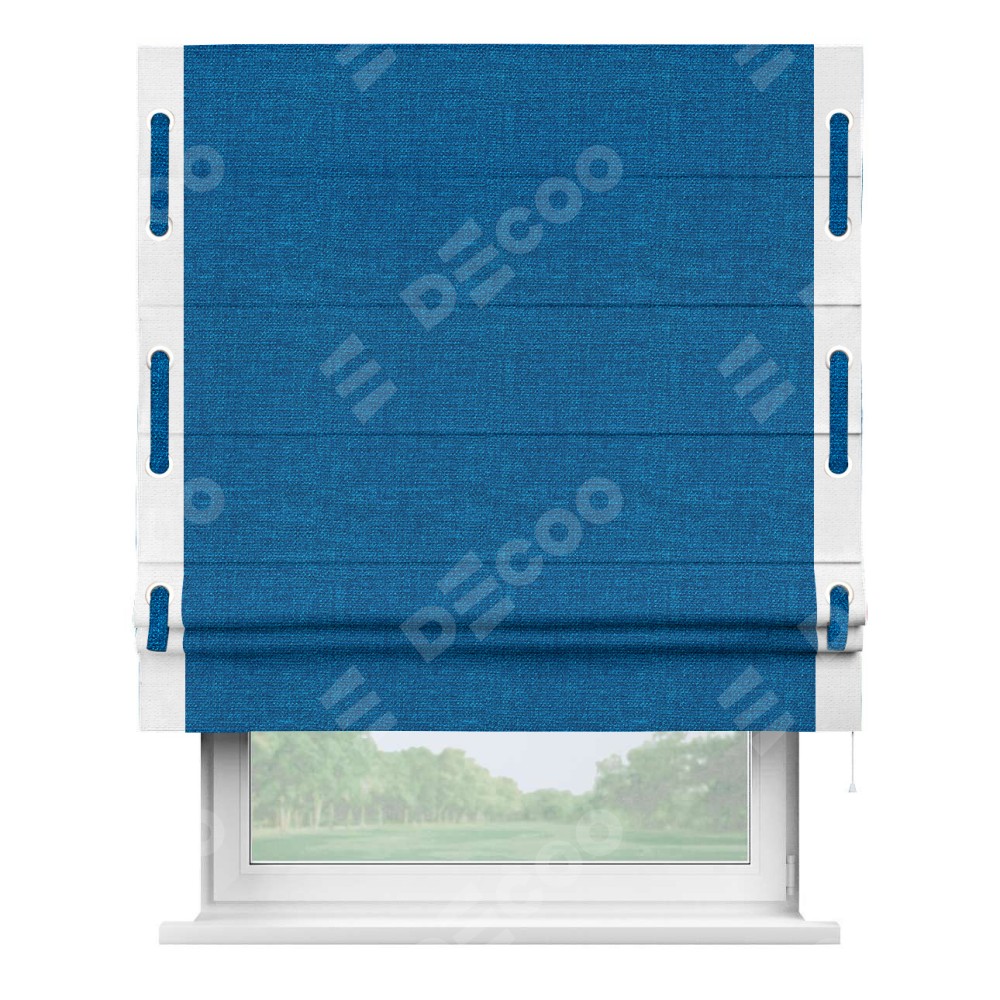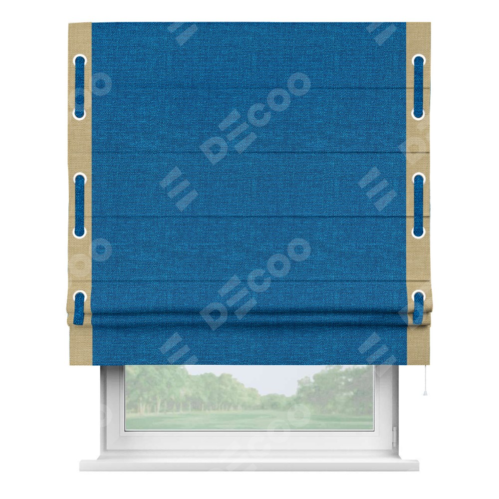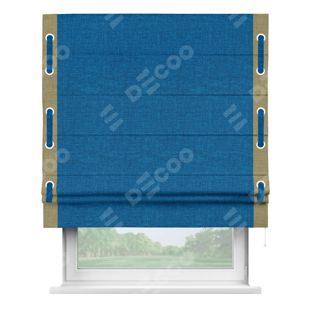 Римская штора «Кортин» с кантом Стрим Дуо (люверсы с пояском), для проема, ткань лён синий