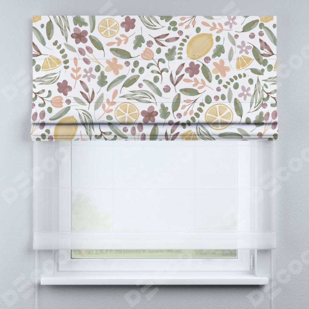 Римская штора «Кортин» день-ночь «Лимоны и цветы»
