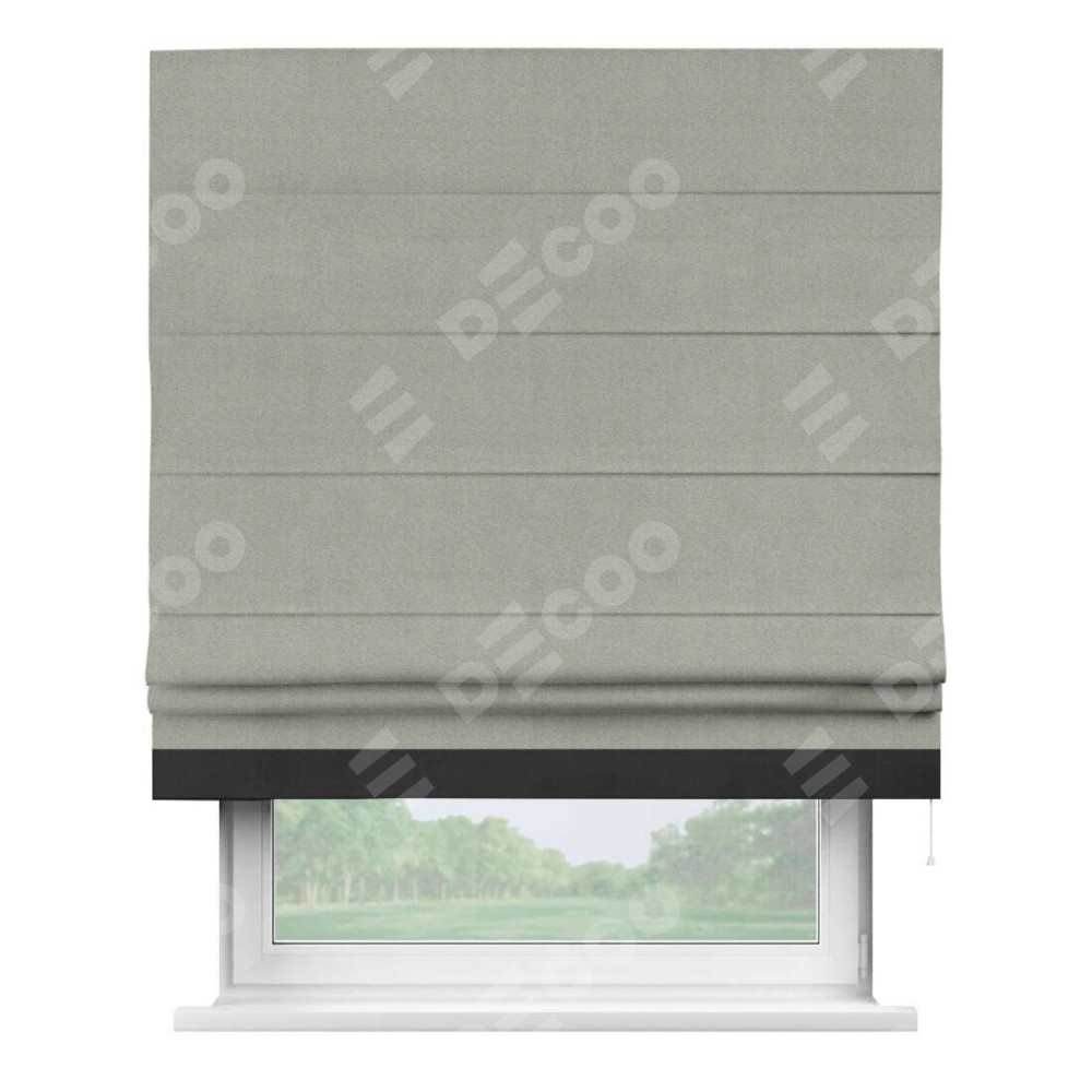 Римская штора производителя «Cortin», используется для проёма, пошита из ткани блэкаут однотонный серый, артикул ткани 88292. Отделка шторы кантом «Джестер», ткань для канта используется из блэкаута однотонного разной расцветки на выбор. Имеет универсальный механизм и подходит для монтажа: на потолок, на стену и в нишу.