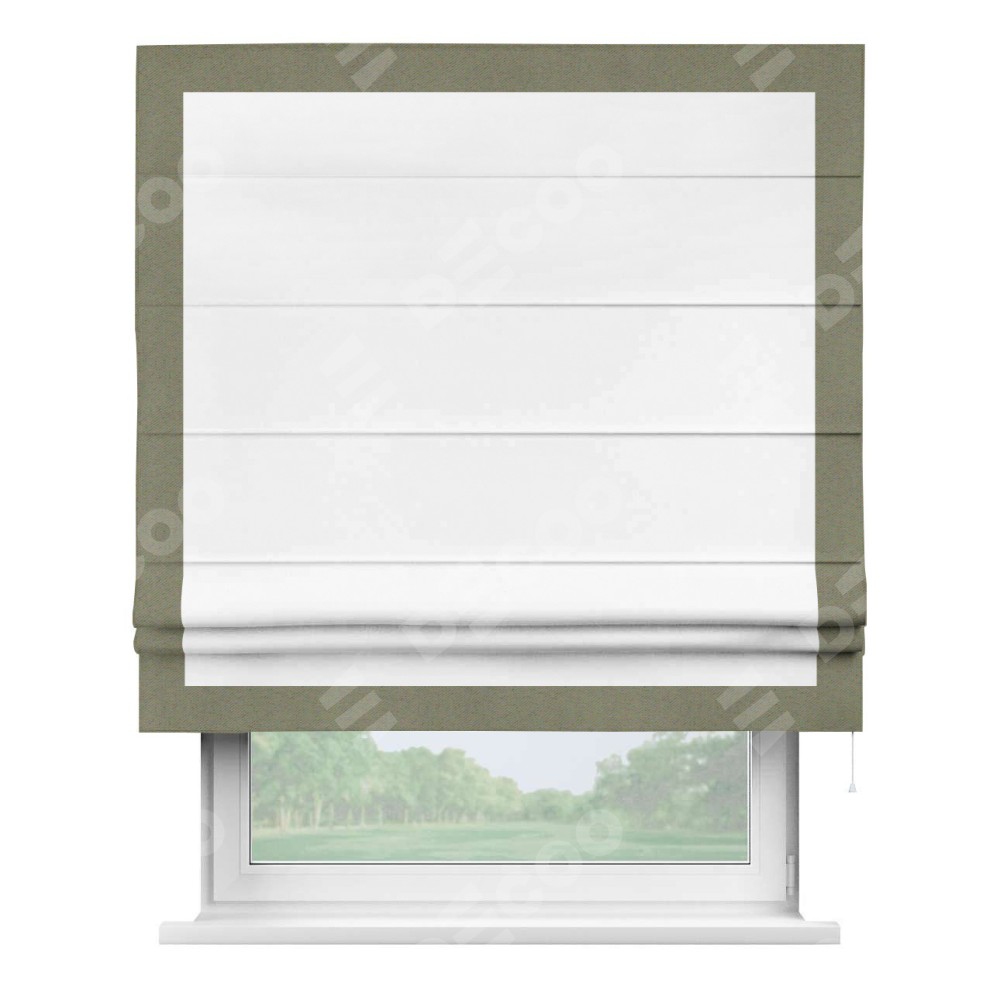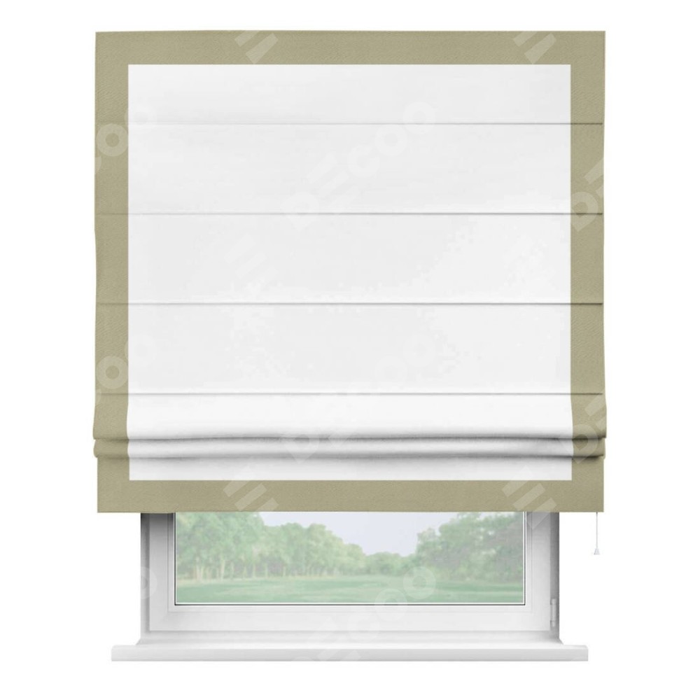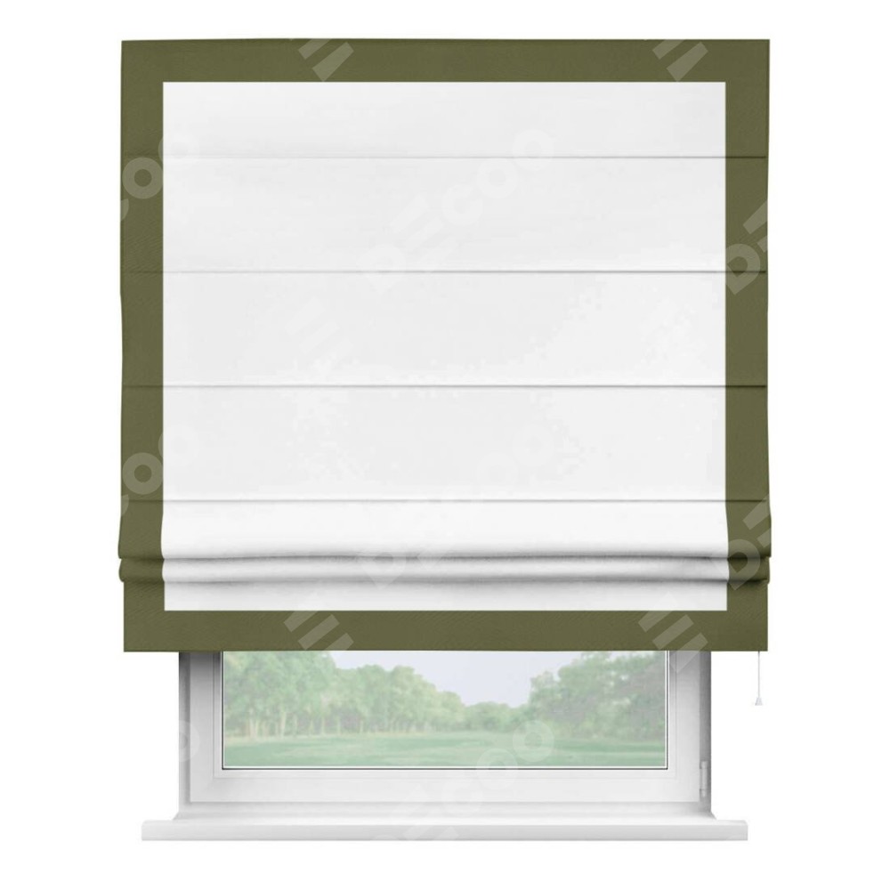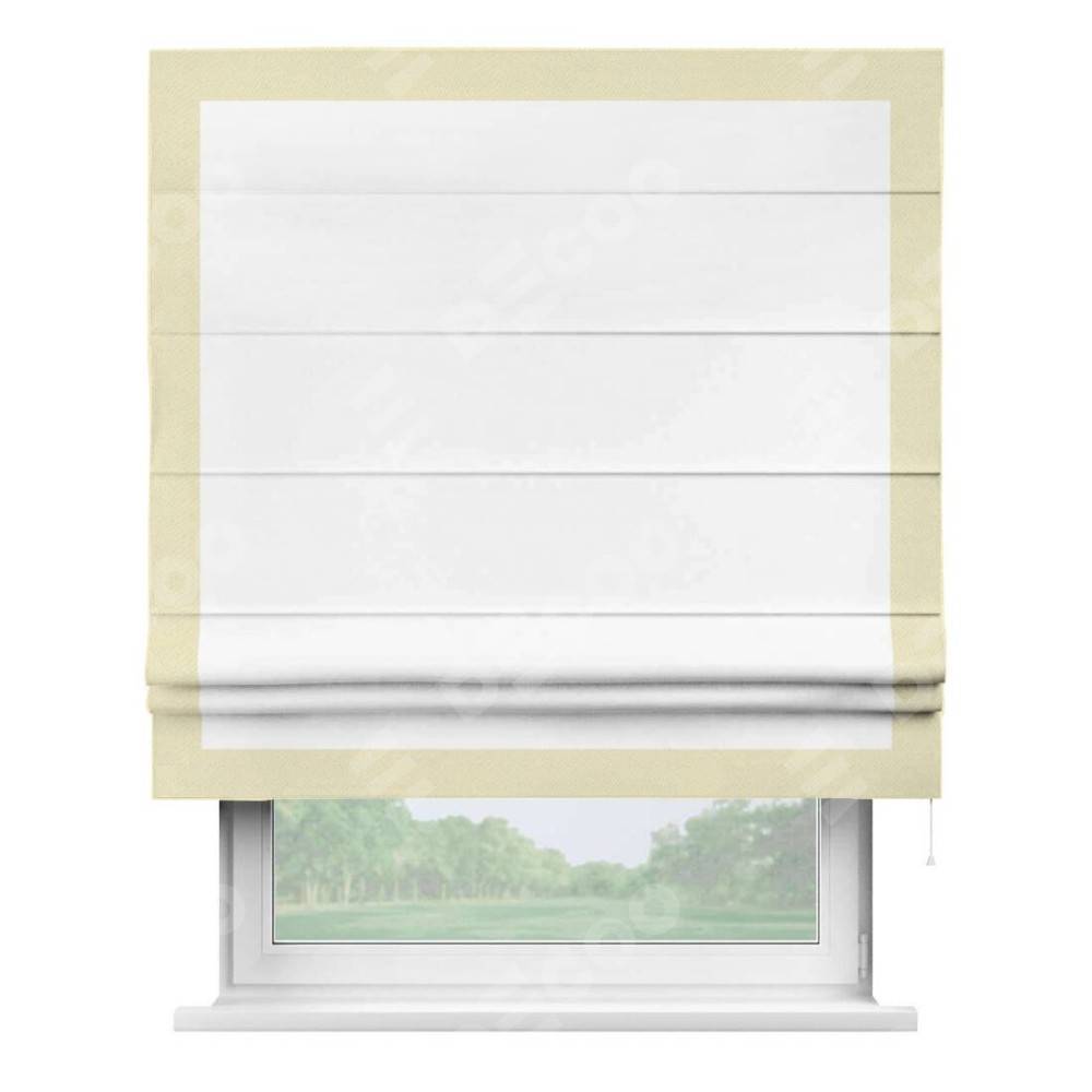 Римская штора «Кортин» с кантом Чесс, для проема, ткань однотонная белоснежная