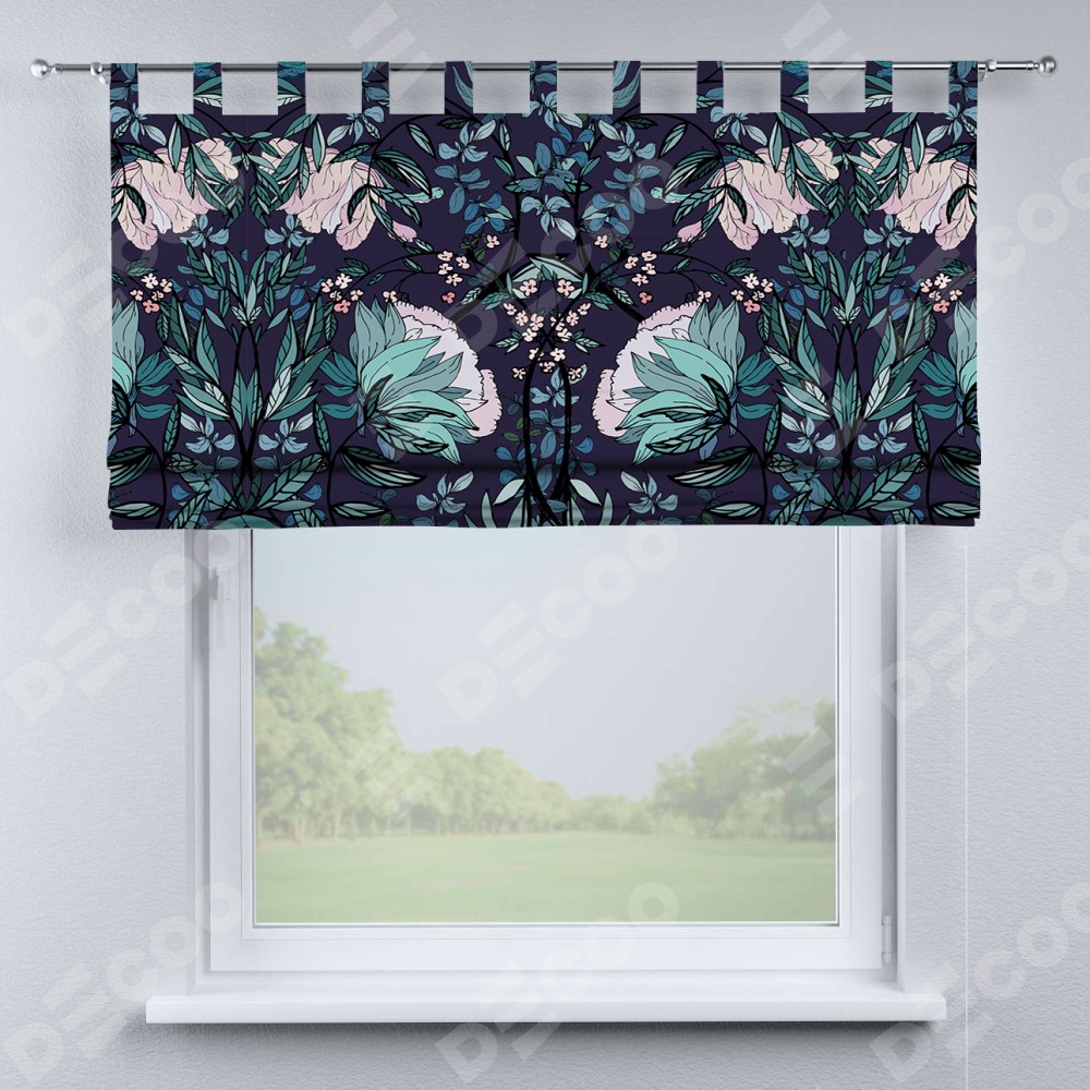 Римская штора «Кортин» на петлях «Цветочный индиго»