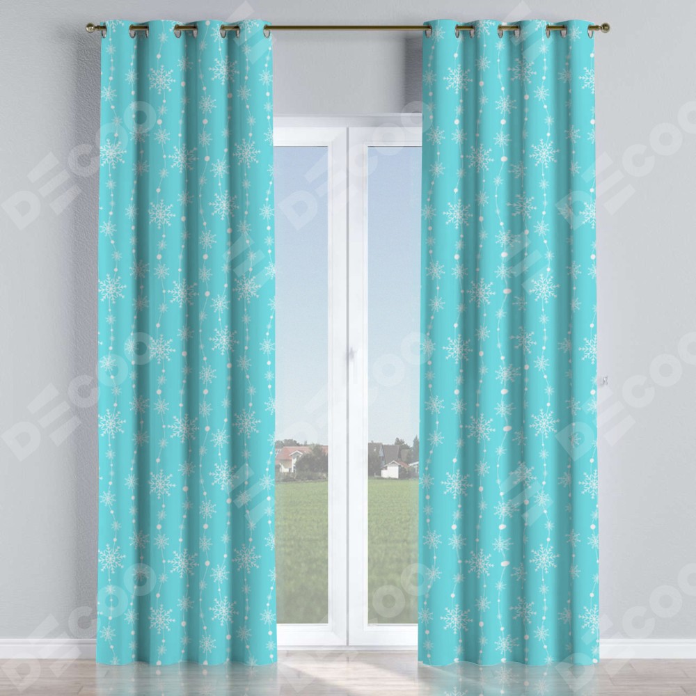 Комплект прямых штор, от производителя «Cortin», пошиты из ткани блэкаут с нанесением сублимационной печати «Гирлянда из снежинок». Данная модель пошита на люверсах, комплектуется на выбор круглым карнизом и подходит для монтажа на стену или потолок. Прямые шторы на люверсах шьются по стандарту с коэффициентом 1/2 (на 100 см. ширины проёма 200 см. ширины ткани), отличительным преимуществом данной модели является простой способ монтажа. Достаточно повесить ее на трубу и штора готова!