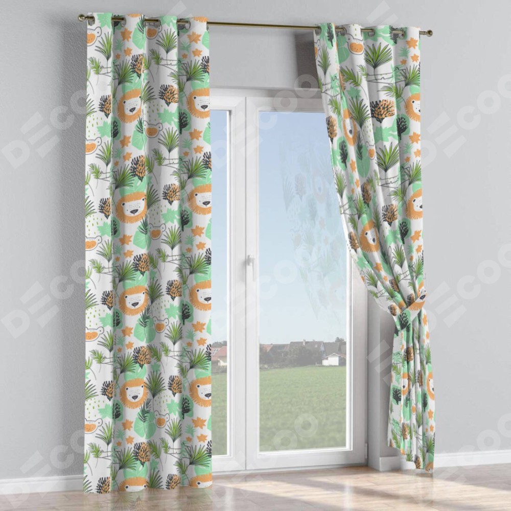 Комплект прямых штор, от производителя «Cortin», пошиты из ткани блэкаут с нанесением сублимационной печати «Животные из джунглей». Данная модель пошита на люверсах, комплектуется на выбор круглым карнизом и подходит для монтажа на стену или потолок. Прямые шторы на люверсах шьются по стандарту с коэффициентом 1/2 (на 100 см. ширины проёма 200 см. ширины ткани), отличительным преимуществом данной модели является простой способ монтажа. Достаточно повесить ее на трубу и штора готова!