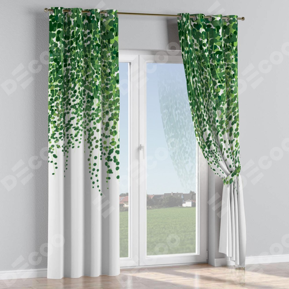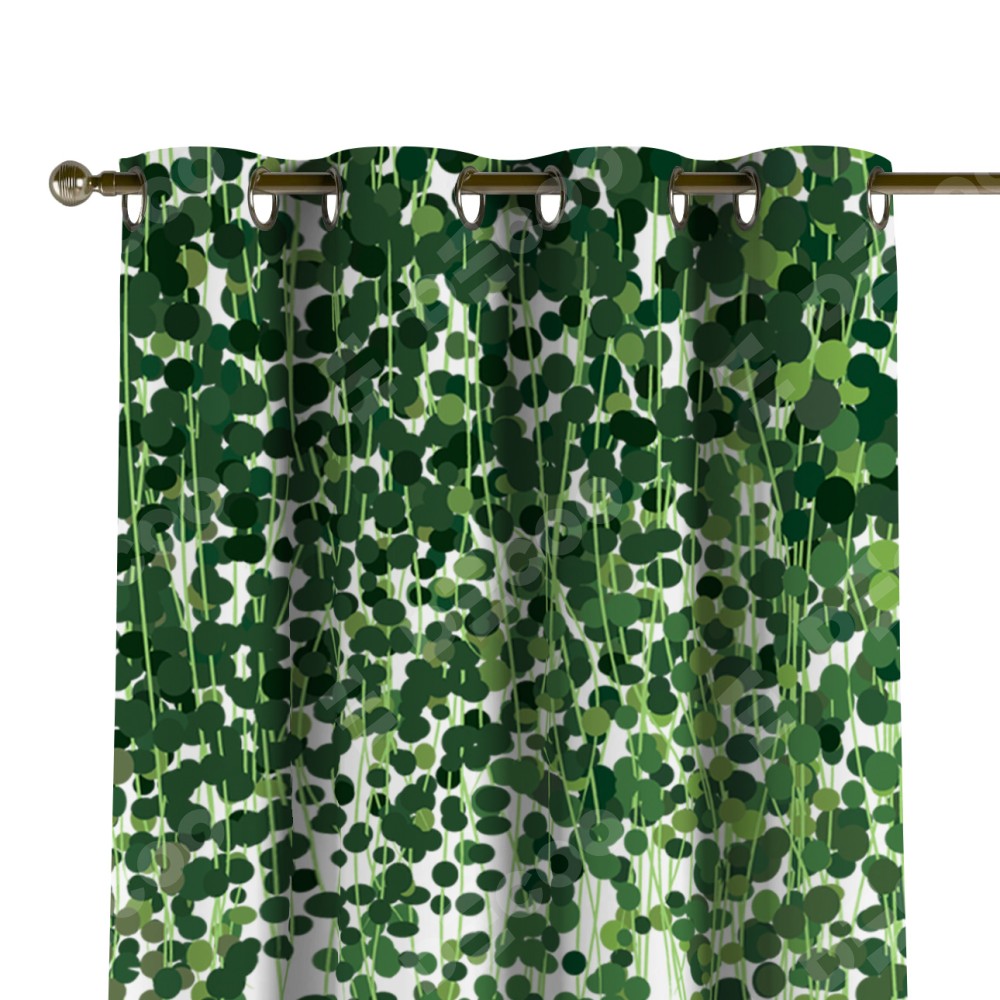 Комплект прямых штор, от производителя «Cortin», пошиты из ткани блэкаут с нанесением сублимационной печати «Зелёный занавес». Данная модель пошита на люверсах, комплектуется на выбор круглым карнизом и подходит для монтажа на стену или потолок. Прямые шторы на люверсах шьются по стандарту с коэффициентом 1/2 (на 100 см. ширины проёма 200 см. ширины ткани), отличительным преимуществом данной модели является простой способ монтажа. Достаточно повесить ее на трубу и штора готова!